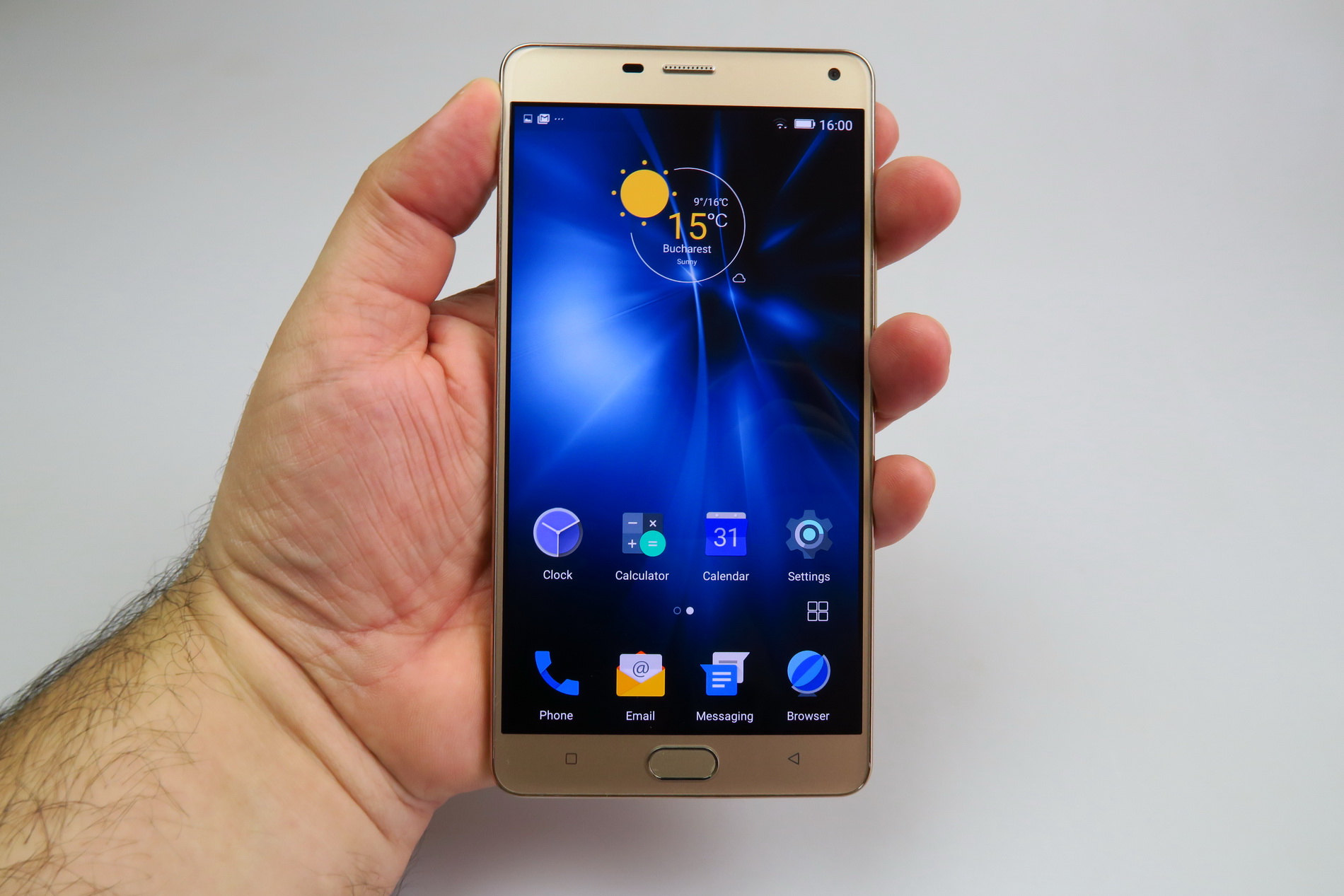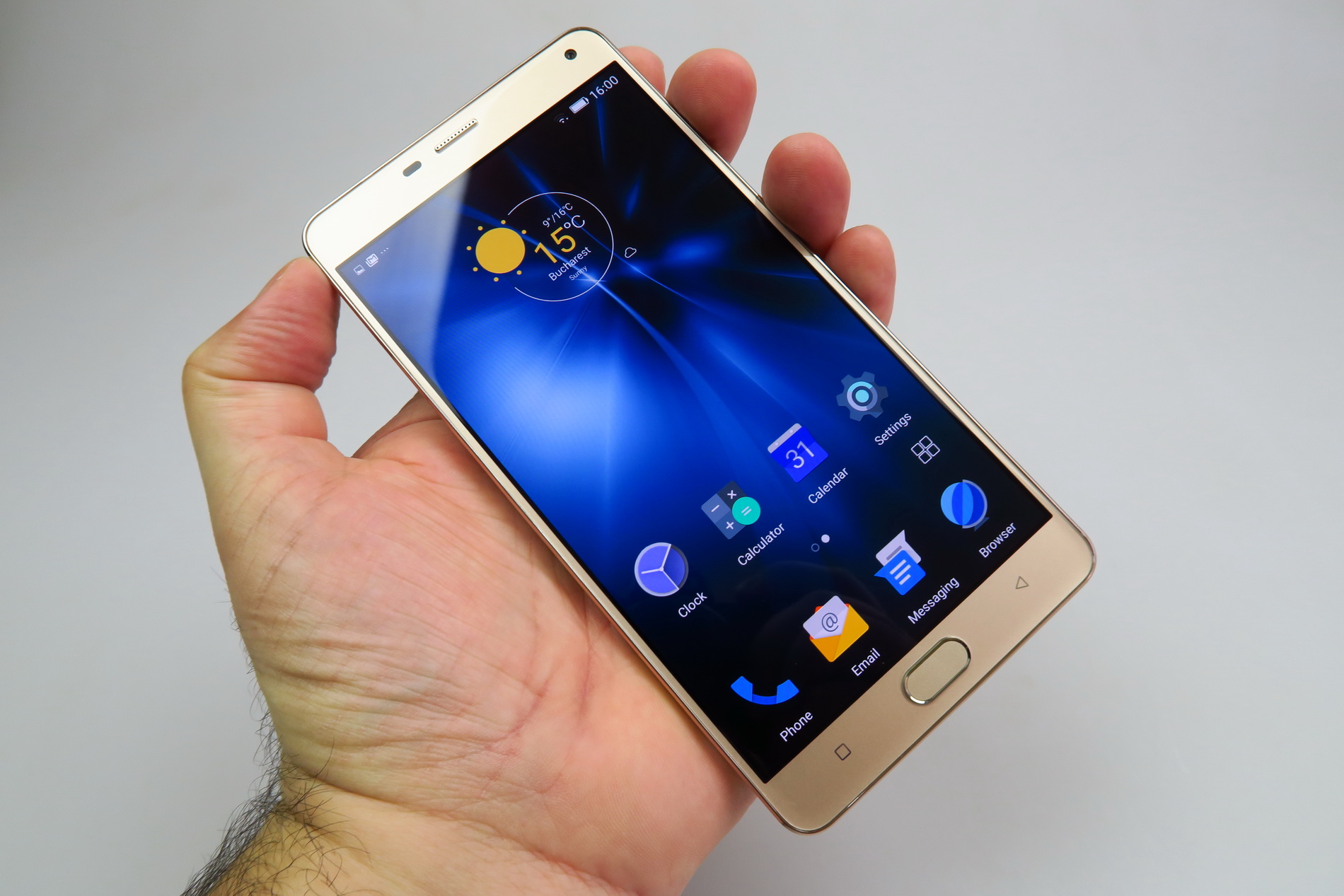The Allview version of the phone was showcased at MWC 2016 and in Romania it’s offered with a local VR headset known as Visual VR. The design involves a metal frame, plastic back, 2.5D glass panel upfront with a 6 inch diagonal. Available in gold or silver, the smartphone measures 8.4 mm in thickness, which is not bad for a 6 incher, especially for such a big battery inside.