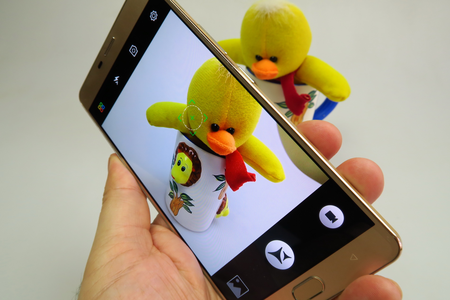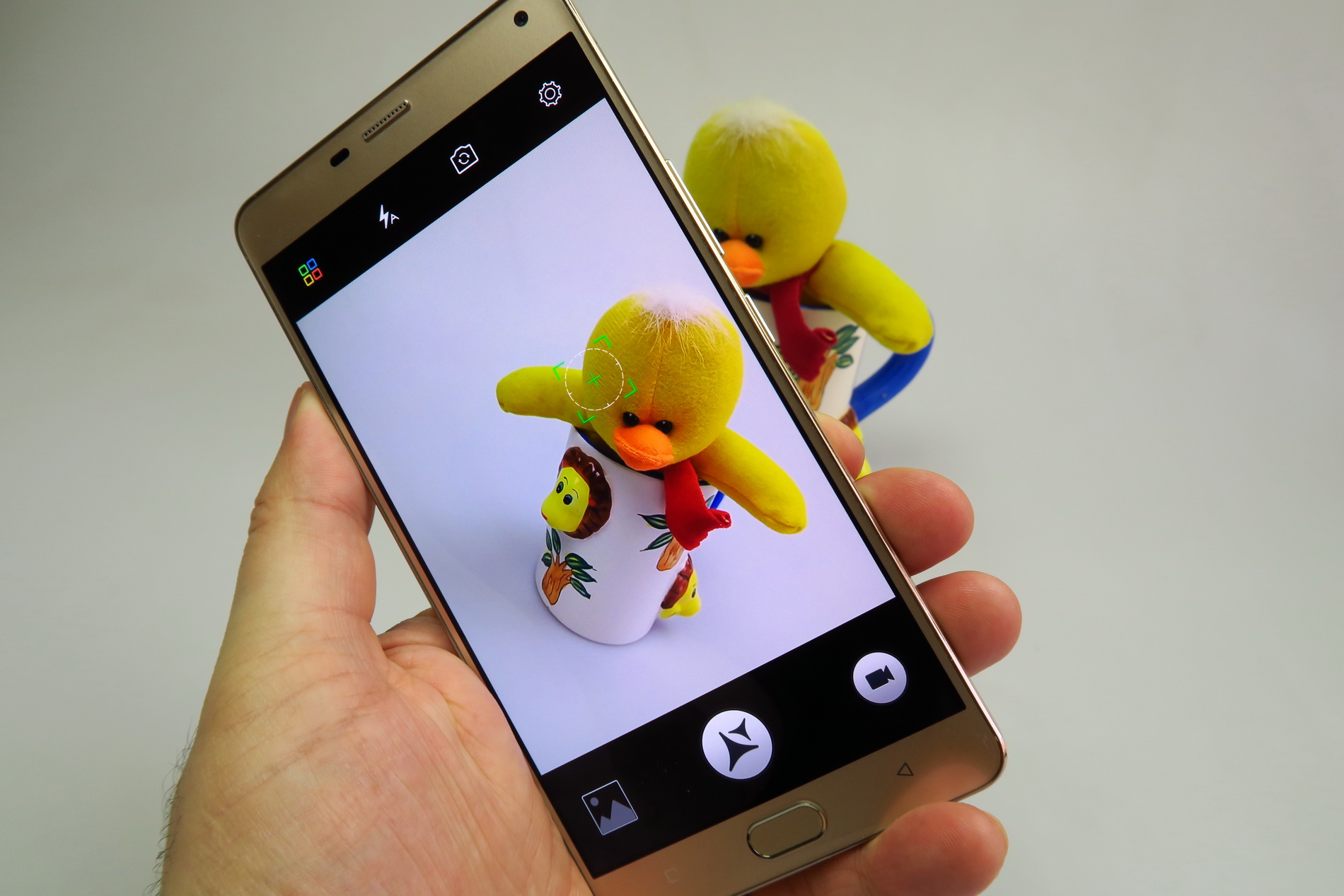 We’re dealing with a 13 megapixel main cam, with big LED flash, F/2.0 aperture, PDAF, 5 lenses and sapphire protection. The front camera has a 5 MP resolution. The camera app starts up fast, but the focus is slow, while the exposure change felt extreme most of the time. Picture taking speed was so-so and you have to wait a bit till the shot is ready. The 4X zoom is fast.