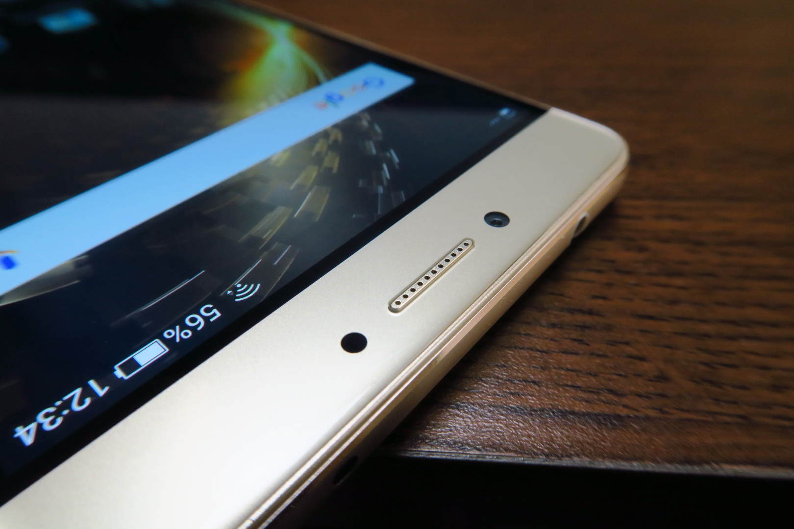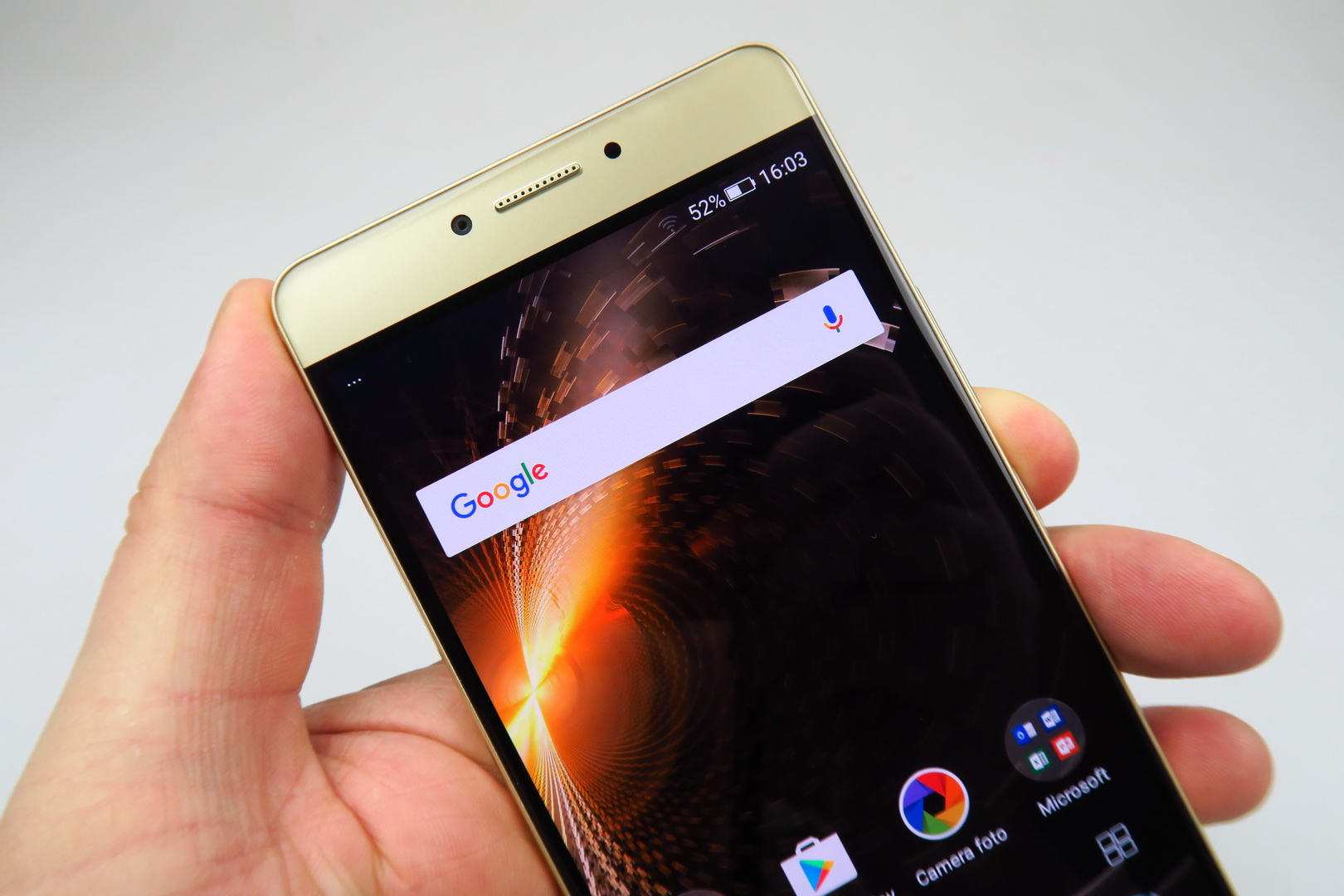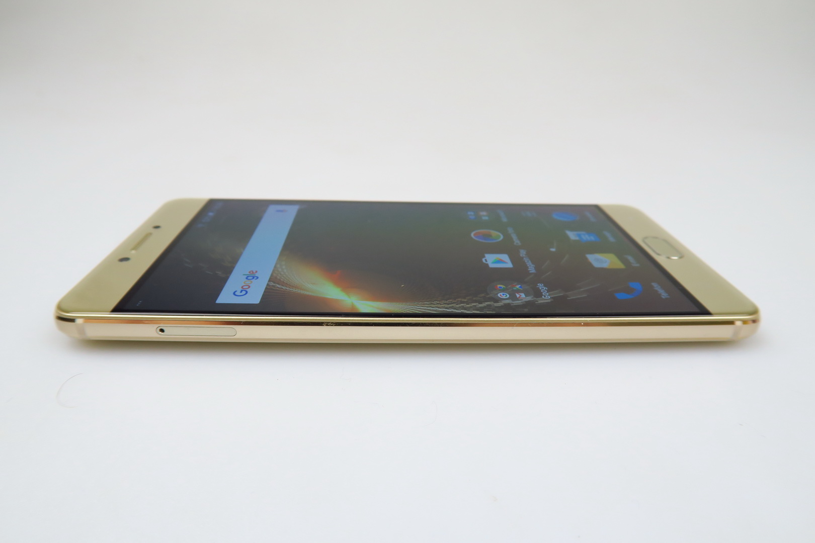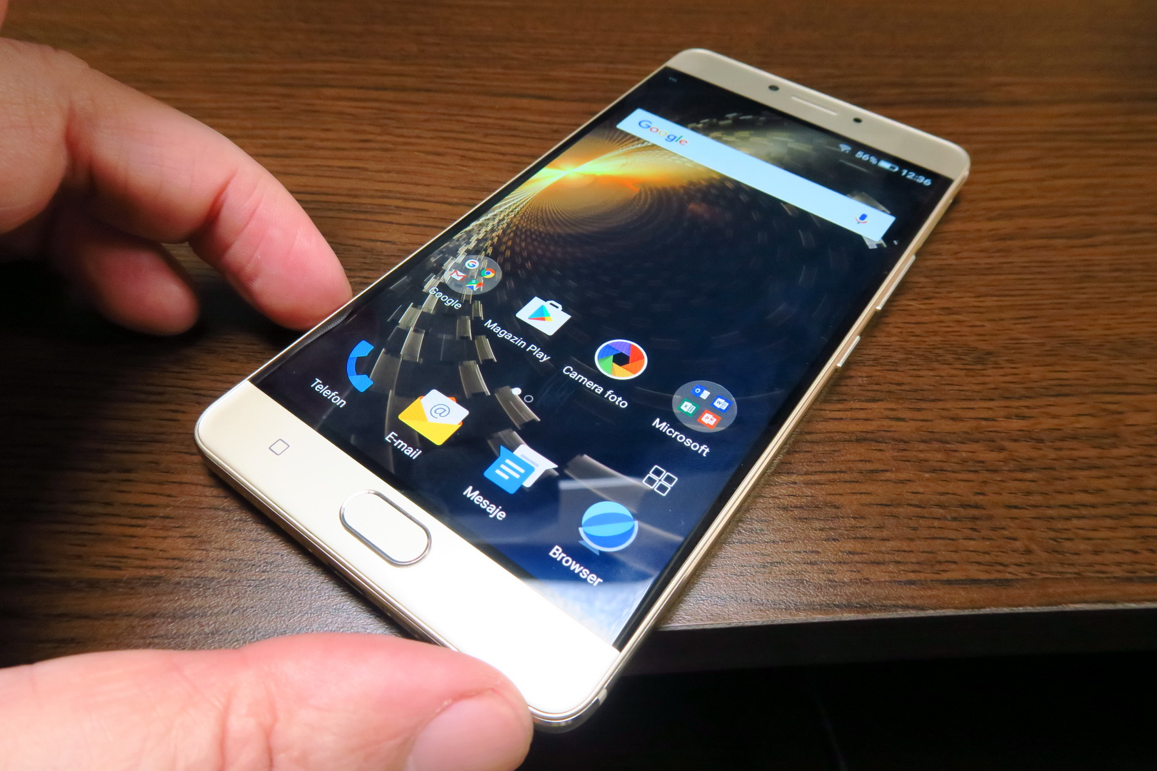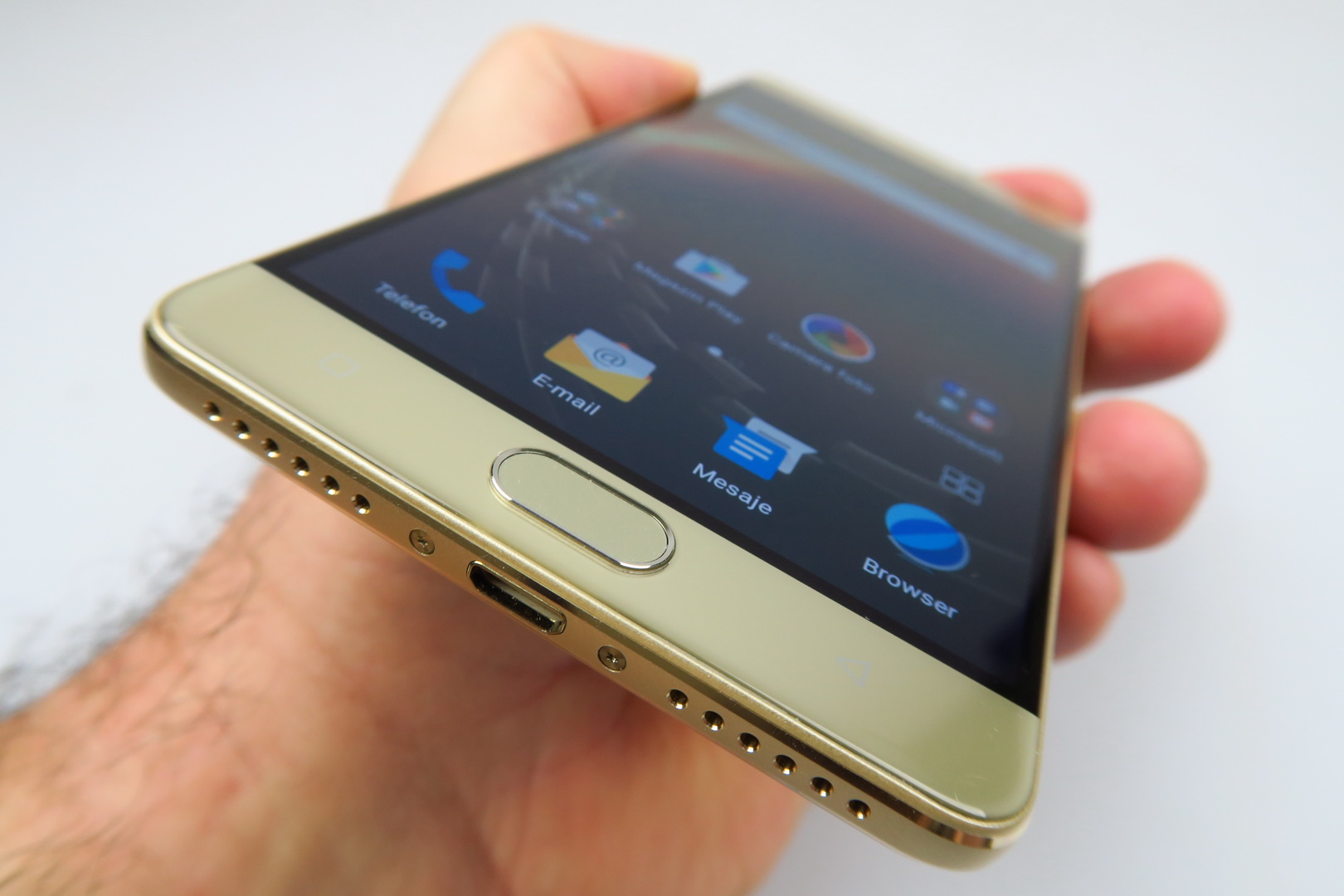 One hand use doesn’t pose a problem, the grip is good and this is quite an elegant machine, with cute metal bands on the side. The back reminds me of the Huawei Mate S a bit and for a battery phone to have such class, it’s a rare occurence, so props for that. Now let’s see if that 5.5 inch AMOLED screen delivers. First of all, it has a Full HD resolution and uses On Cell touch technology. It also makes use of full lamination and has a scratch resistant panel upfront.
