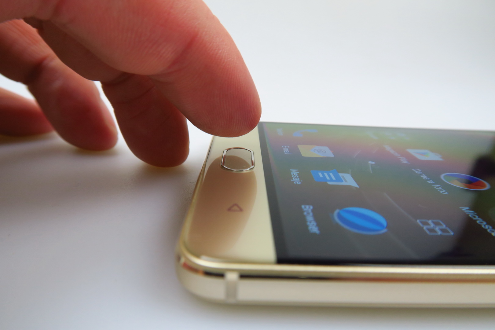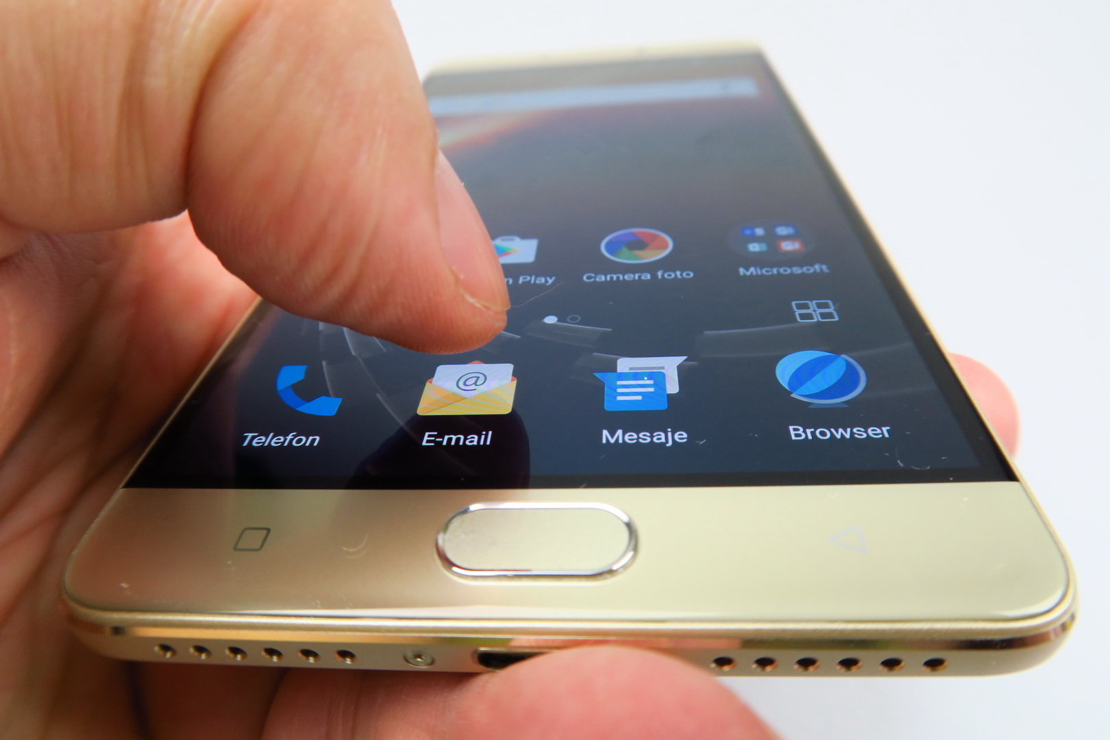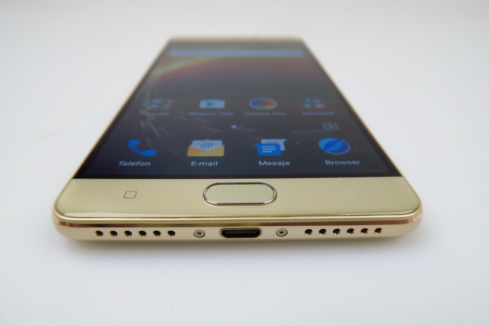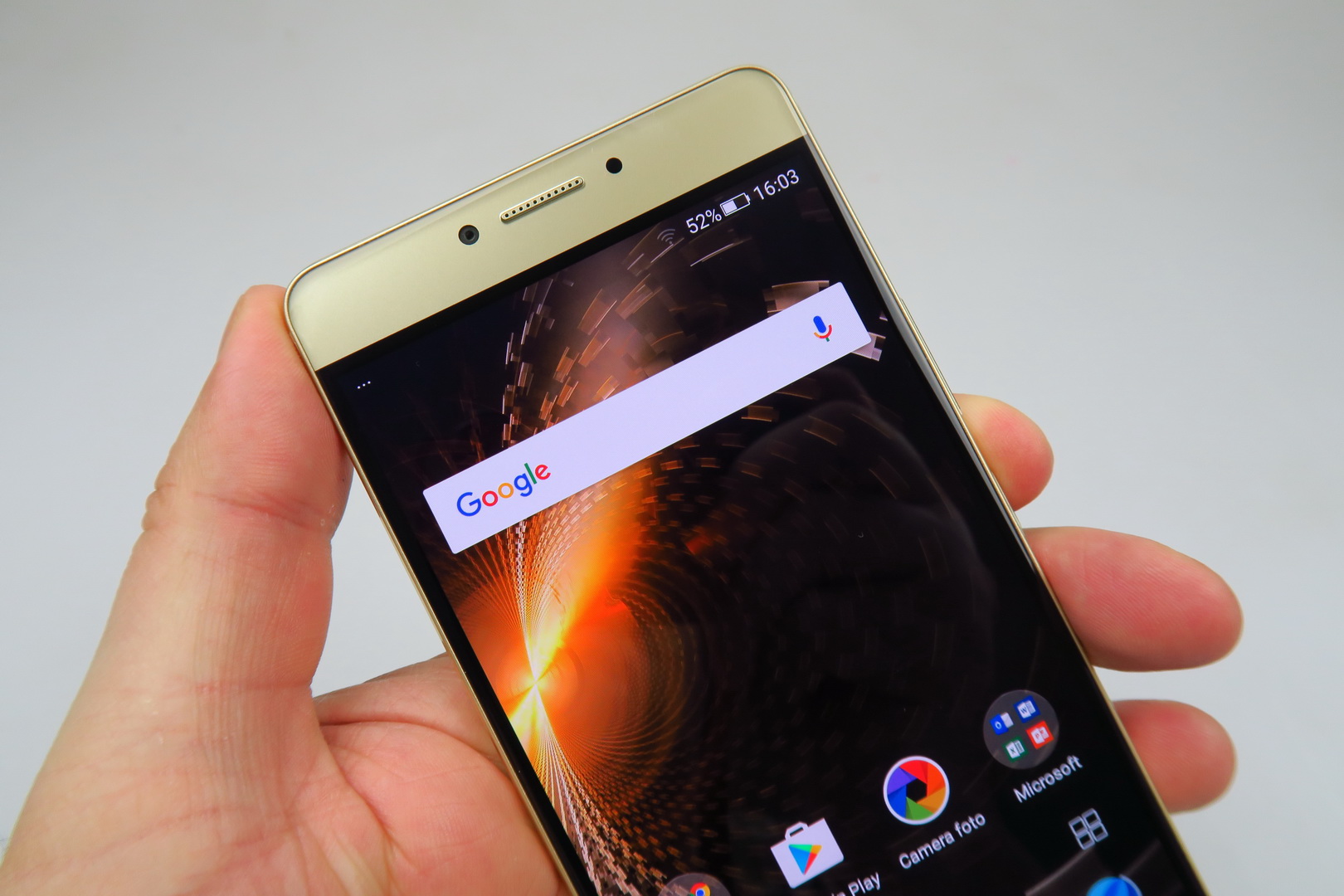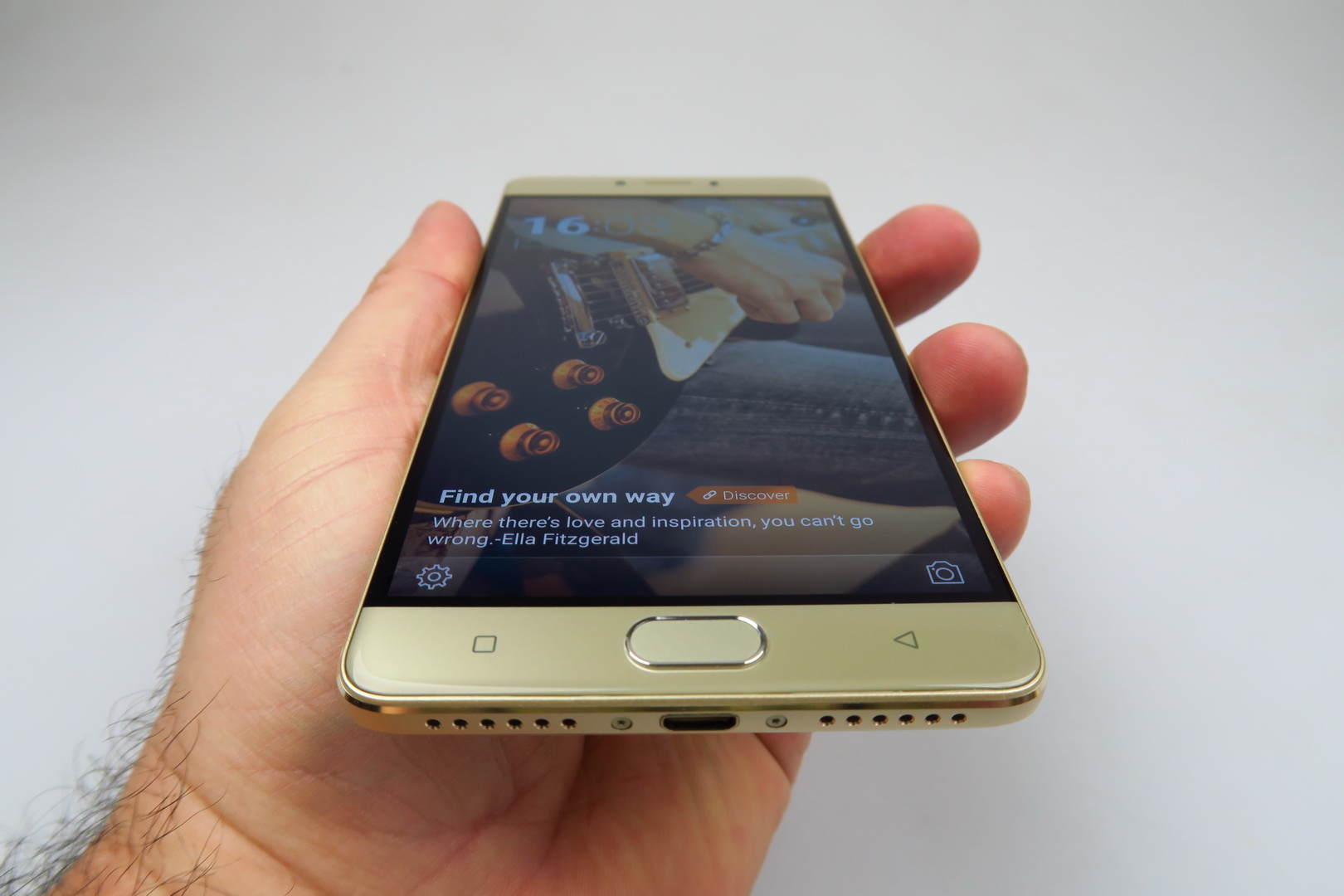 One hand use doesn’t pose a problem, the grip is good and this is quite an elegant machine, with cute metal bands on the side. The back reminds me of the Huawei Mate S a bit and for a battery phone to have such class, it’s a rare occurence, so props for that. Now let’s see if that 5.5 inch AMOLED screen delivers. First of all, it has a Full HD resolution and uses On Cell touch technology. It also makes use of full lamination and has a scratch resistant panel upfront.