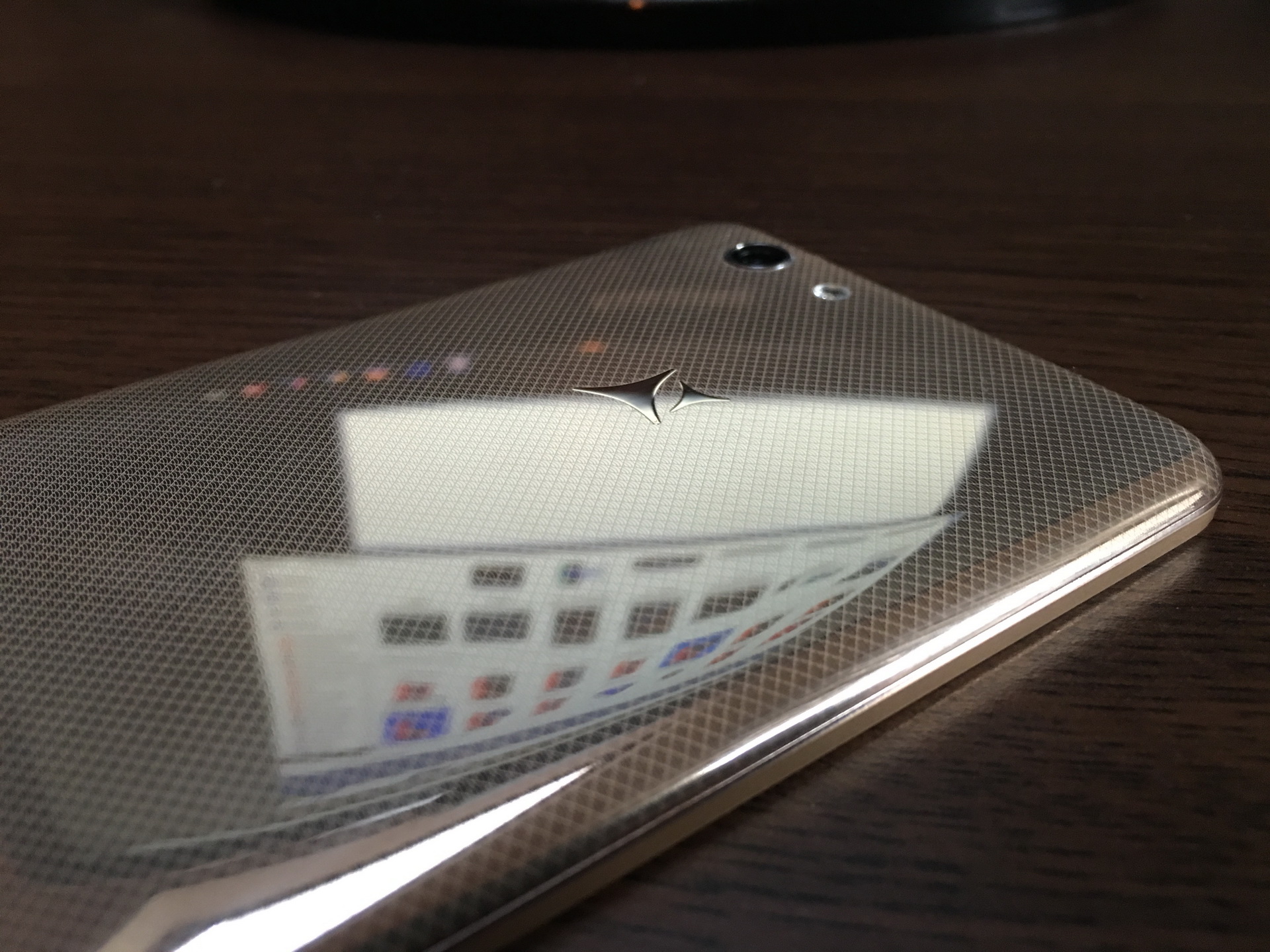 The smartphone weighs 155.3 grams, meaning it’s about the same weight as the HTC Desire 820. It relies on an aluminum – magnesium alloy for the internal chassis and outside there’s a glossy and slippery polycarbonate shell. The back is a bit of a fingerprint magnet and we’ve got a solid frame in the mix, by the way.