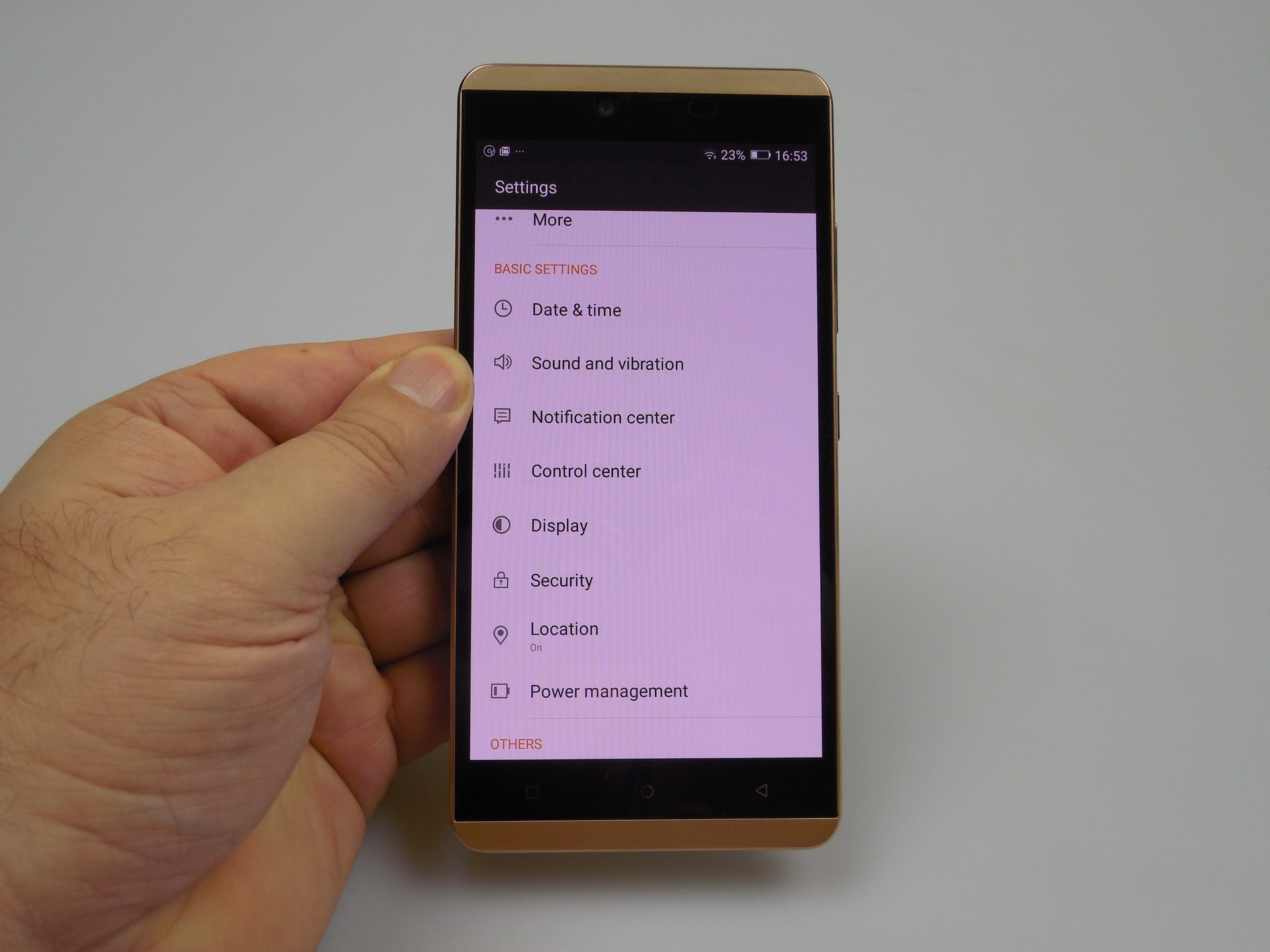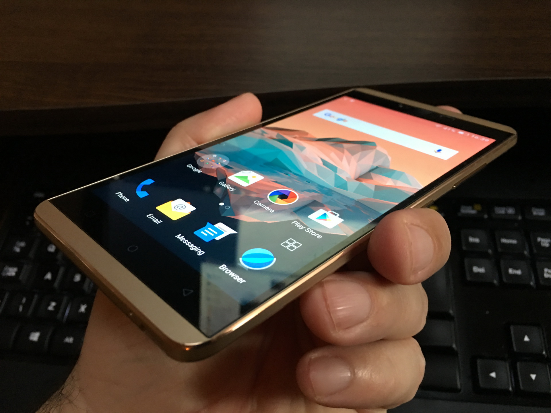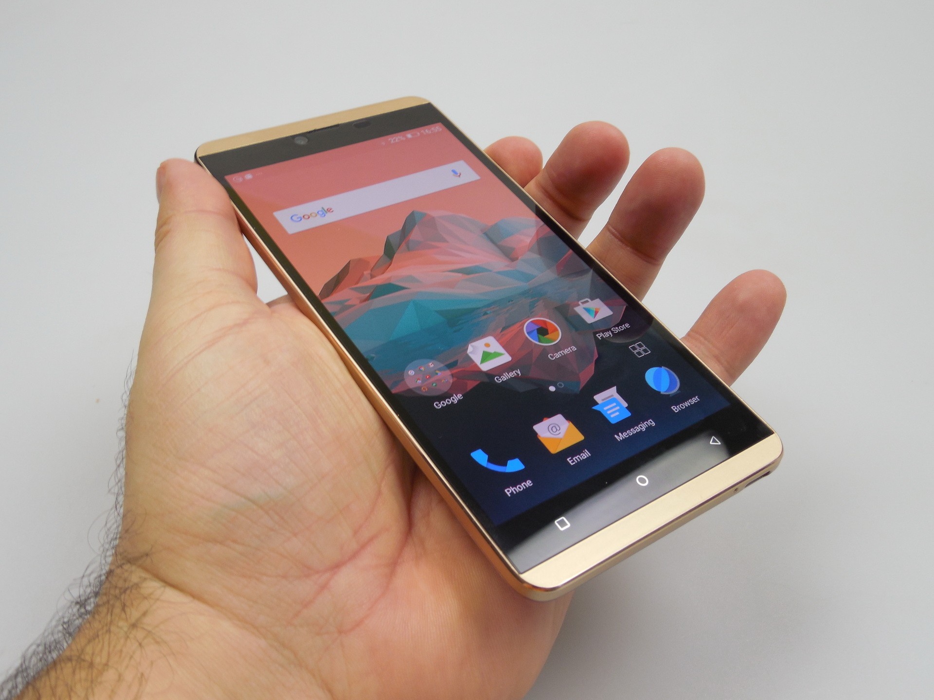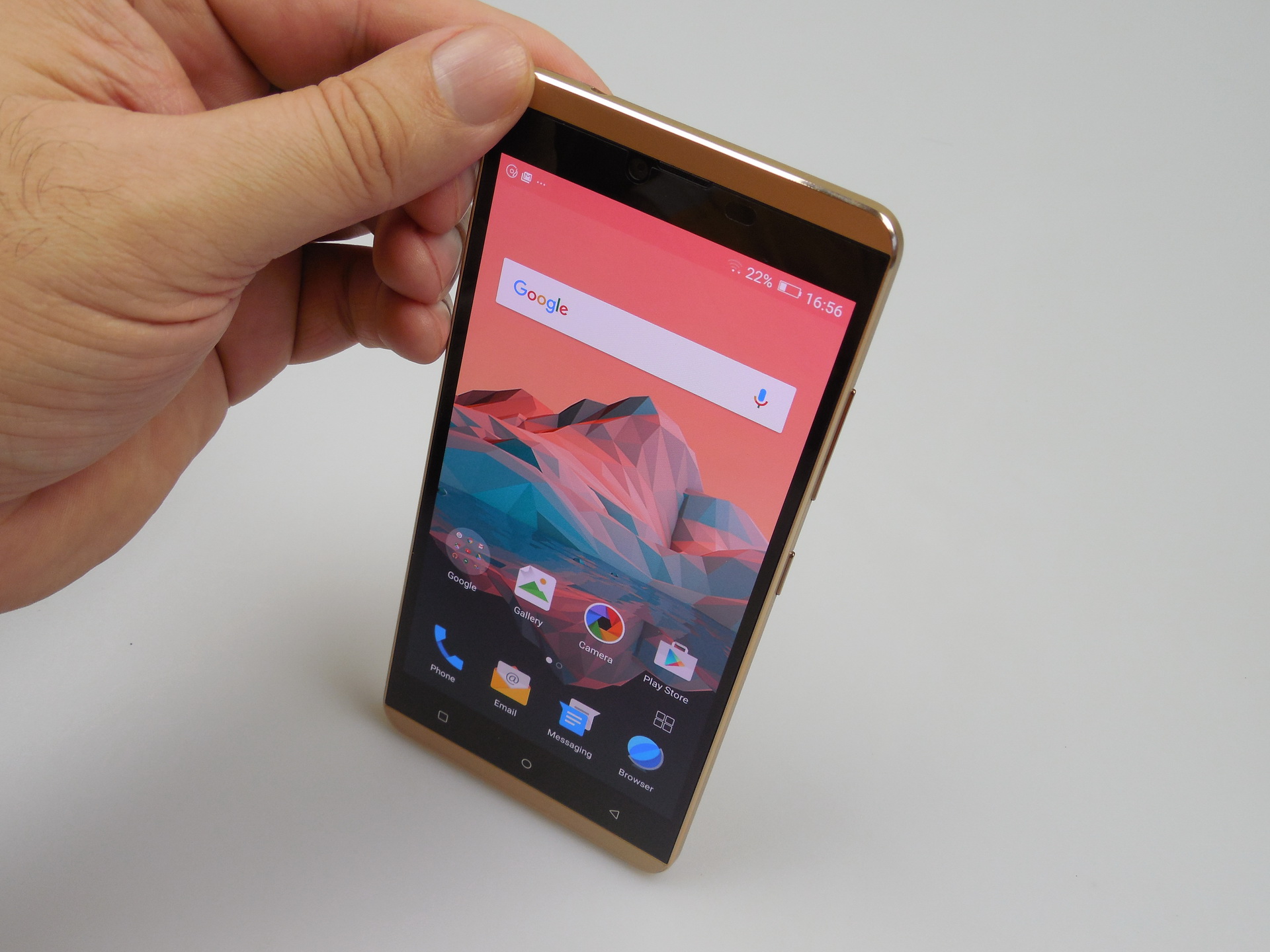 Priced at $252, the Elife S Plus is a midrange youthful phone and its Romanian version came to us in a prism shaped box. It’s the first USB Type C handset for Allview and I’m willing to be that the same applies to Gionee. Available in white, dark blue and gold, this model was tested by us in the gold hue. It’s a 5.5 inch phablet with a 7.2 mm waistline and it’s thus 0.1 mm thicker than the iPhone 6S, which is not bad.