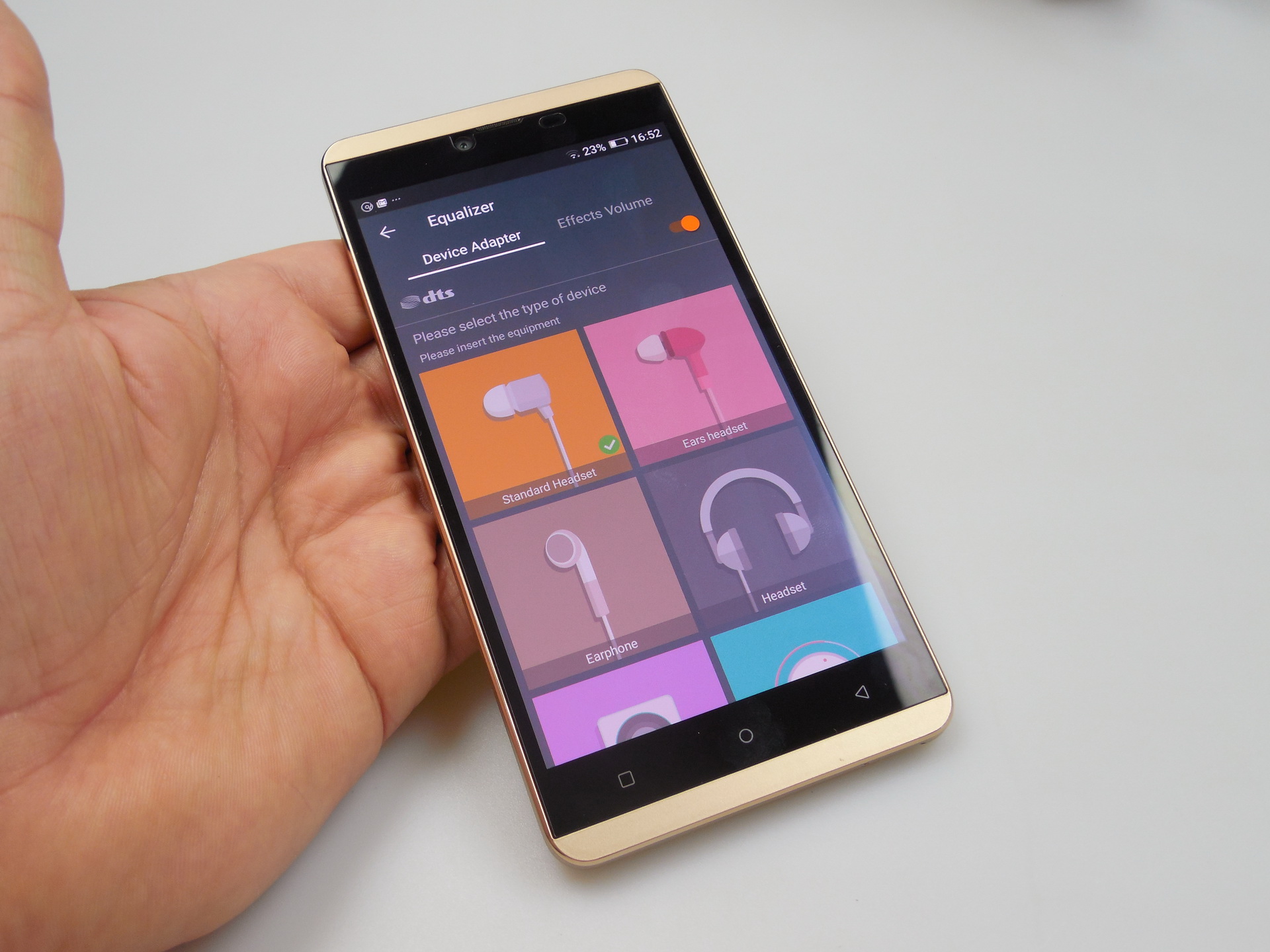 There’s a tangling wire and big remote in the mix too. The same headset offers an OK bass, clear sound, good isolation, but it could be louder. Once the headphones are attached, you are given extra EQ options, like Standard Headset, Ears, Earphone, Headset, Soundbox and Custom with sub options like: DTS Focus, DTS Trubass, DTS Space, DTS Definition and DTS Center.