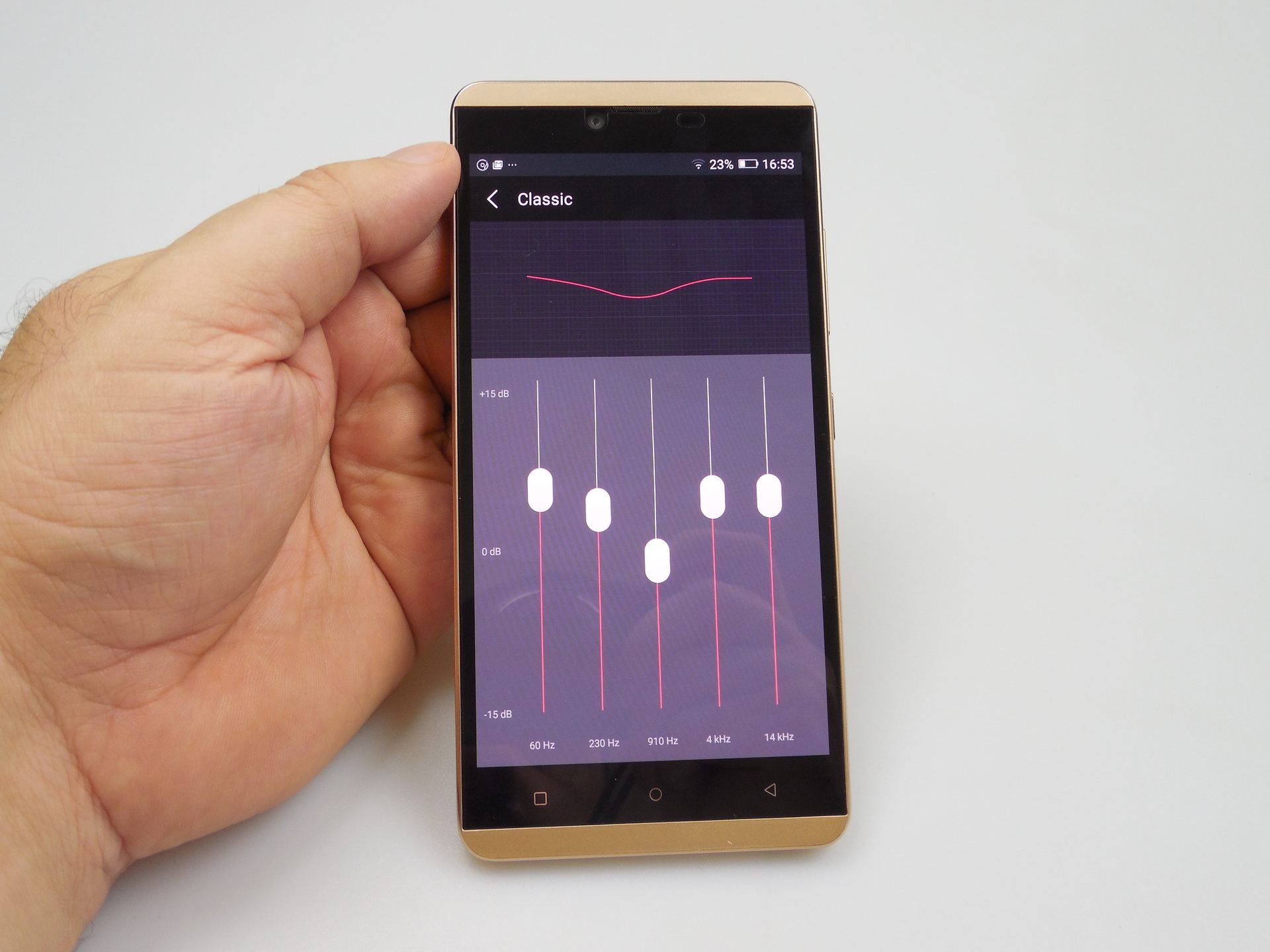 This model stands out through the fact it’s a shiny golden thingie, that may tempt people who are vaguely superficial or try to be that. Under that shiny shell there’s a good midrange phone, that does have its small quirks. However, the battery is very good for the price you pay and even if you’re not getting 3 GB of RAM or a new gen CPU, performance is flawless.