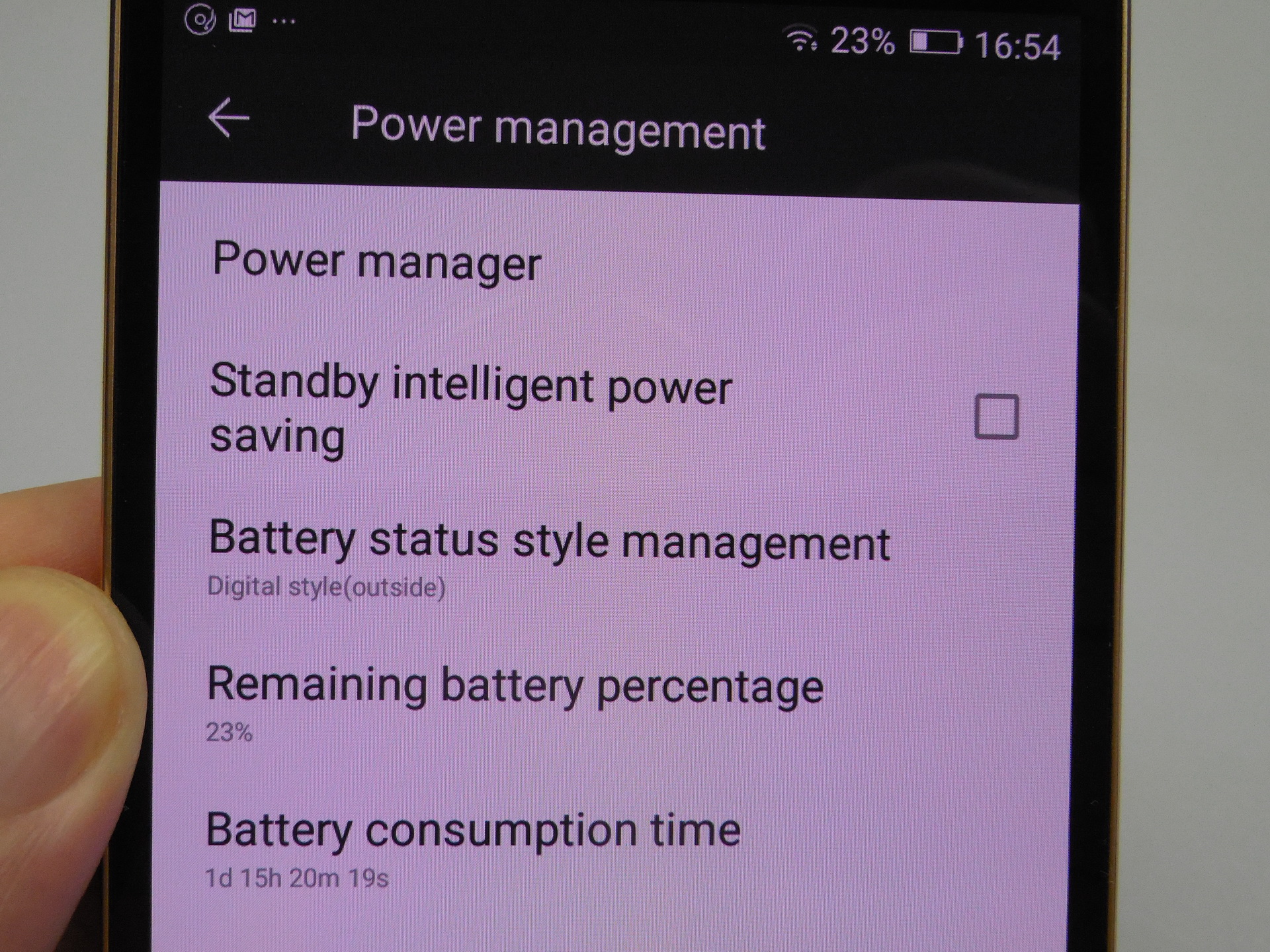 Obviously, there are quite a few handsets that juice up faster: ASUS ZenFone 2 (1 hour and 50 minutes), Samsung Galaxy A5 (1 hour and 45 minutes) and OnePlus 2 (2 hours and 13 minutes). In the Settings area you can find the Power Management options, that include the Modes (None, Normal and Extreme). Normal uses a dark theme, deactivates Bluetooth, GPS, syncing and reduces the CPU frequency, while Extreme Mode uses a black and white theme and only lets you access core phone features, like contacts, messaging, clock and calling.