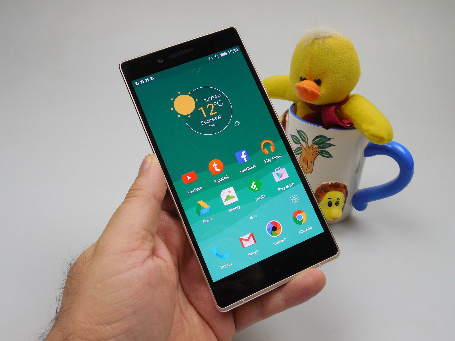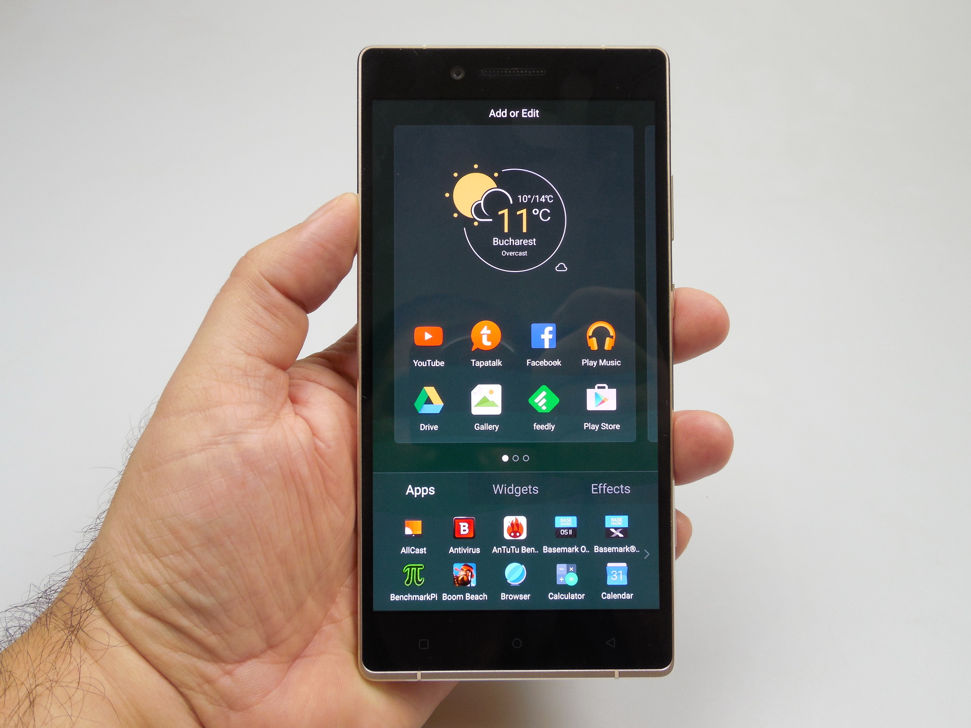 We’re running Android 5.1 on this smartphone, with some customizations, but the most part is stock OS and icons. If you keep the screen pressed, you’ll trigger the area with widgets (3D clocks and such) and effects. If you swipe down you’ll see the notifications area, while a swipe up brings the Quick Settings, like on iOS. In that area you also find the Fake Call, Torch and Camera features.
