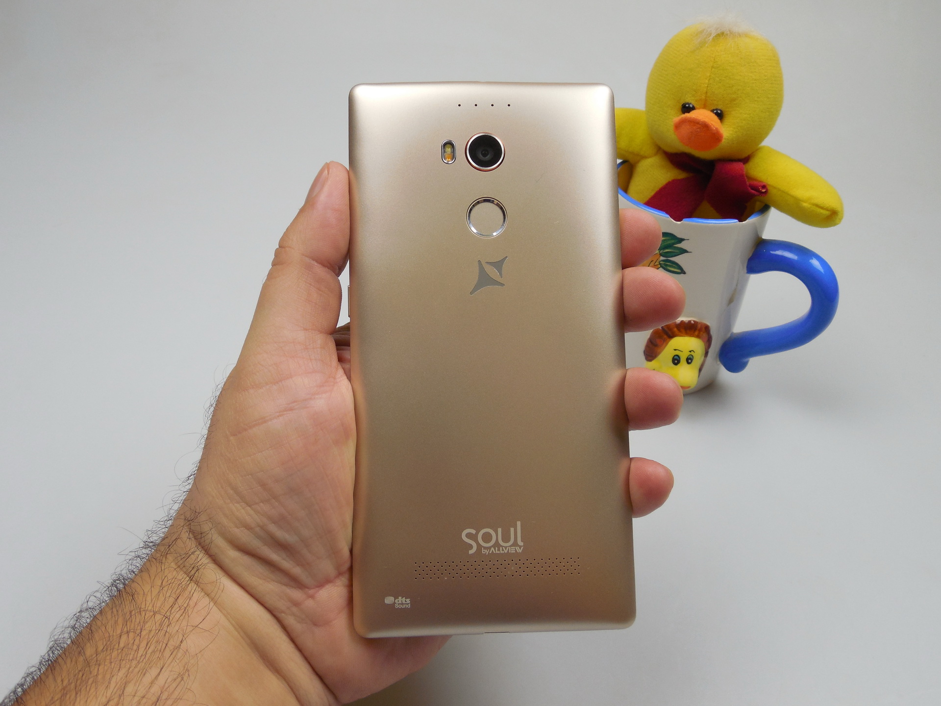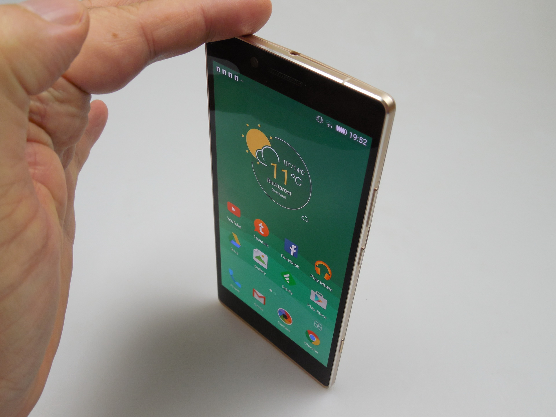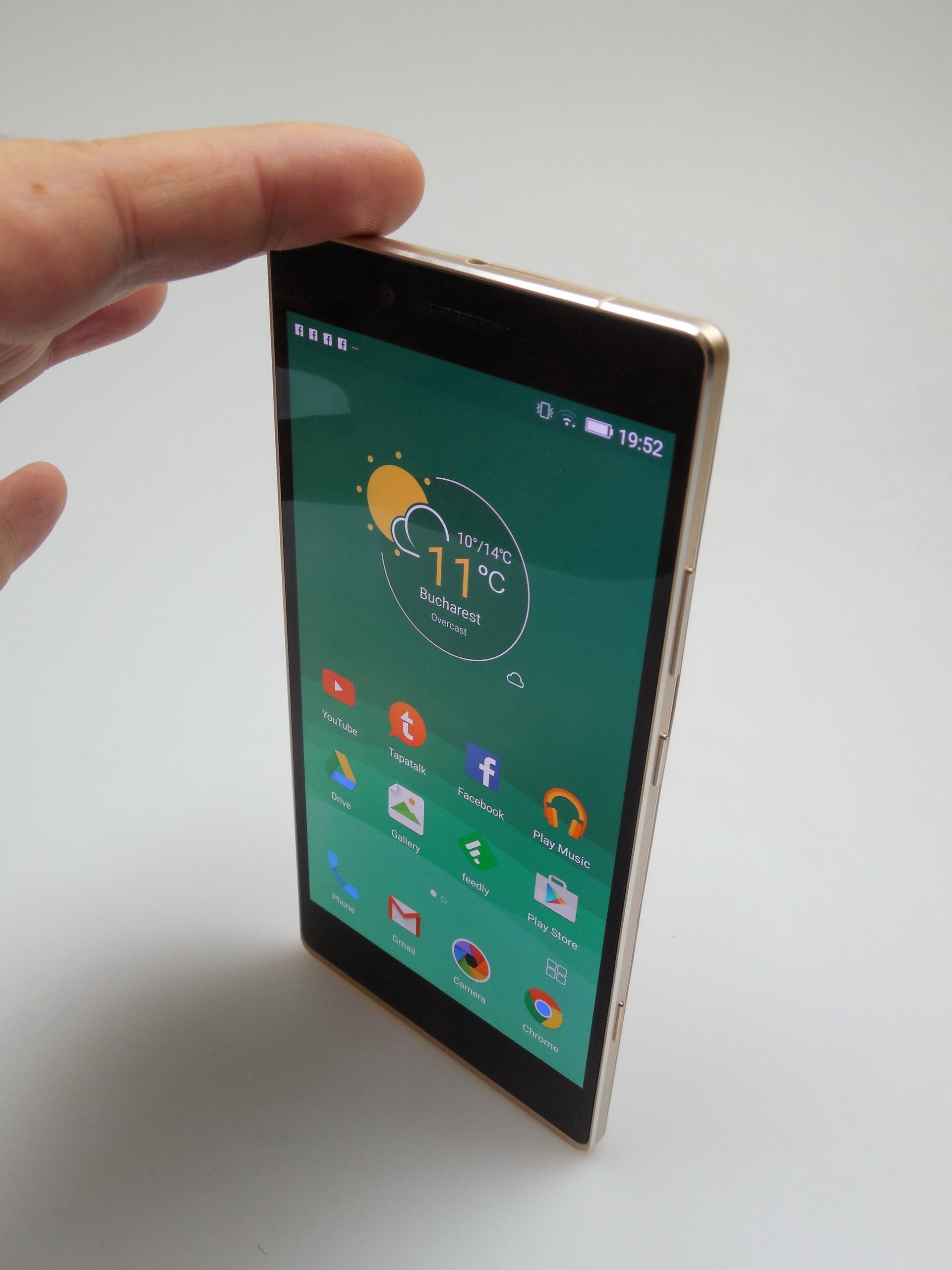 Allview X2 Xtreme is also 30 grams heavier than the ZenFone 2 handsets and lighter than the Huawei P8 Max, that has a 6.8 inch screen and weighs 228 grams. This model comes with a rounded back, good grip and a polycarbonate back. It has a big and strong frame and the color option we tested was gold/beige. Upfront we find the earpiece, sensors, notification LED, front camera and capacitive buttons, without lighting for some reason.