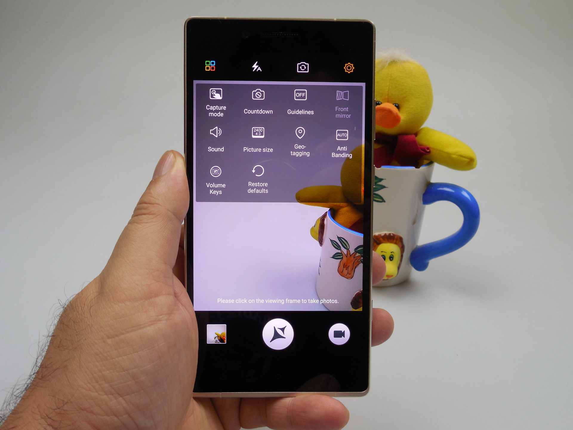 The resulting picture is so detailed, it can be printed as a 106 x 80 cm poster. Video options include a Scene Mode (night or auto), exposure, white balance, anti shake, 4K 30 FPS capture, Full HD or HD resolution. The camera has fluid zoom and tapping the screen allows you to move around two crosshair frames, associated to metering and exposure.