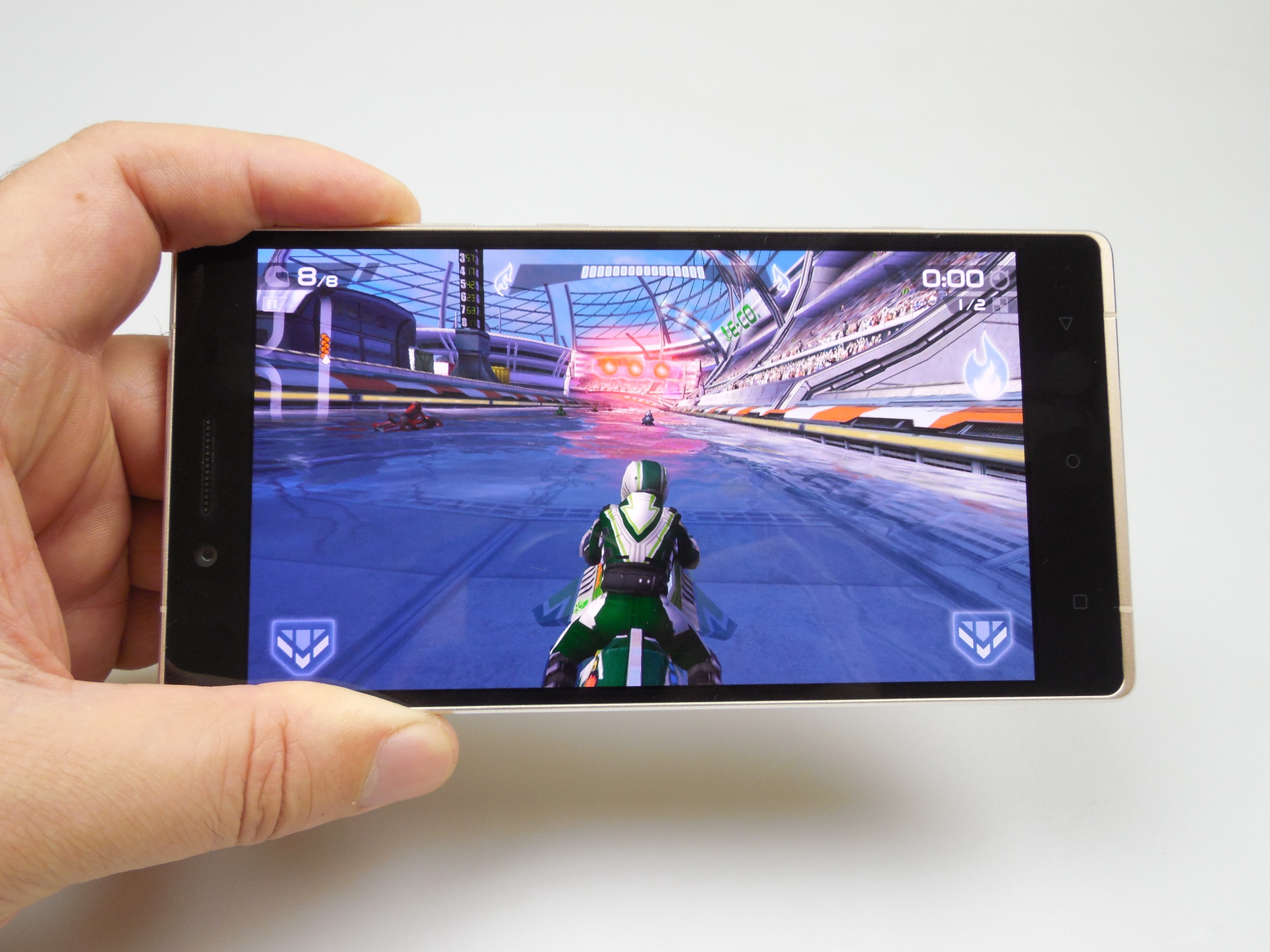 Nobody expects easy one hand use here and this is a pretty comfy 6 incher when playing games or watching videos. I’d even say it’s pretty classy, design-wise. On the hardware side of things, there’s a 6 inch AMOLED screen here, with a 2560 x 1440 pixel resolution, Gorilla Glass 3 protection and an octa core MediaTek MT6795 processor inside. This is the MediaTek Helio X10 in fact, with 64 bit Cortex A53 cores, clocked at up to 2 GHz.