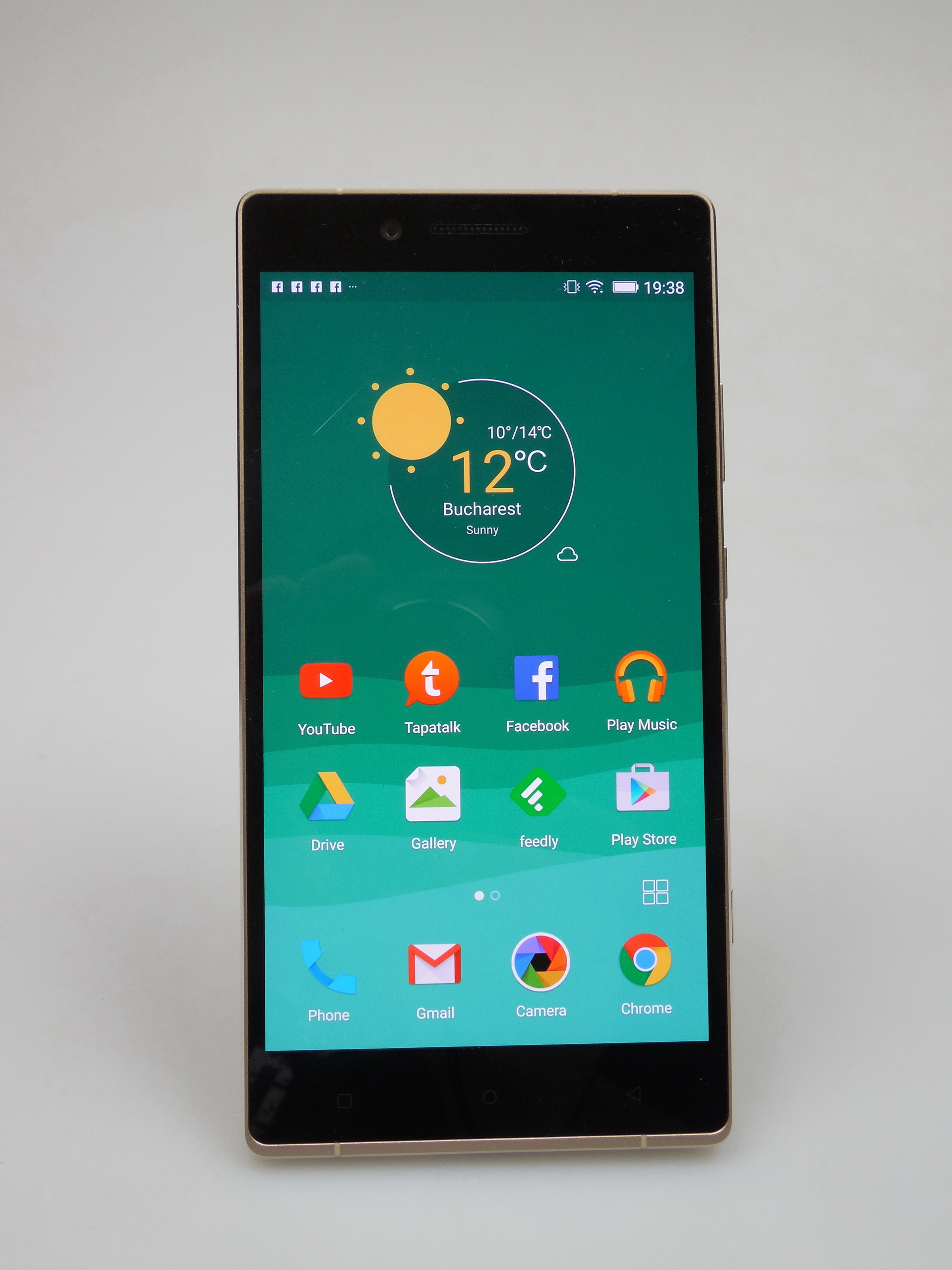 Finally, we’ve got a Suspend button and LED light option, plus we also demoed the NFC tag interaction, with the few tags included in the box with the phone. The preinstalled apps don’t include bloatware luckily. The list goes like this: Bitdefender Mobile Security, Calculator, Calendar, Chrome, Compass, Drive, Facebook, Email, File Explorer, Gmail, Google+, Hangouts, Maps, Music, Notes, Photos, Play Books, Play Games, Play Music, Play Newsstand, Play Store, Sound Recorder, System Manager (Cache Cleaner, Power, Traffic, Eco Mode), System Update, Theme, Torch, Voice Search, Weather, YouTube.