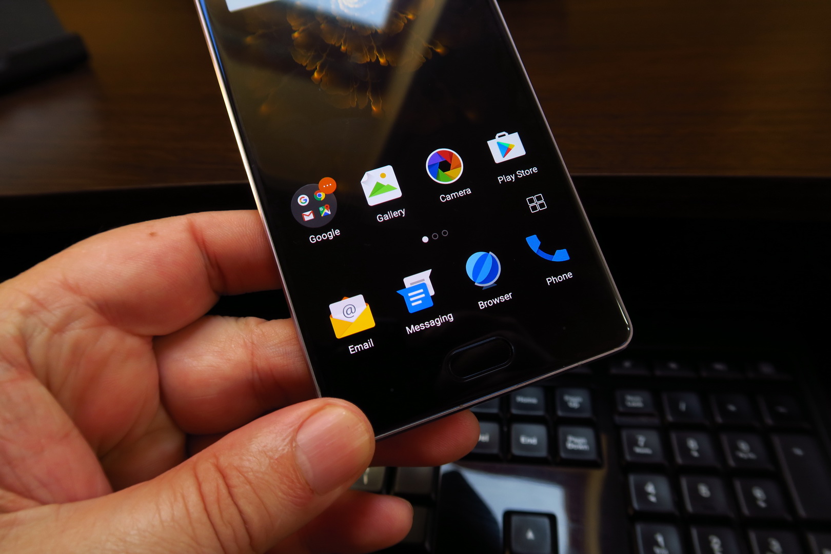 There you can access the Torch, Mail and more apps, that you can add or remove to the list. You can also use the special touch for dynamic wallpapers and in the gallery to highlight a picture and pull it forward with extra options. This is the first Android phone we tested with such a functionality, before the P9 Plus from Huawei.