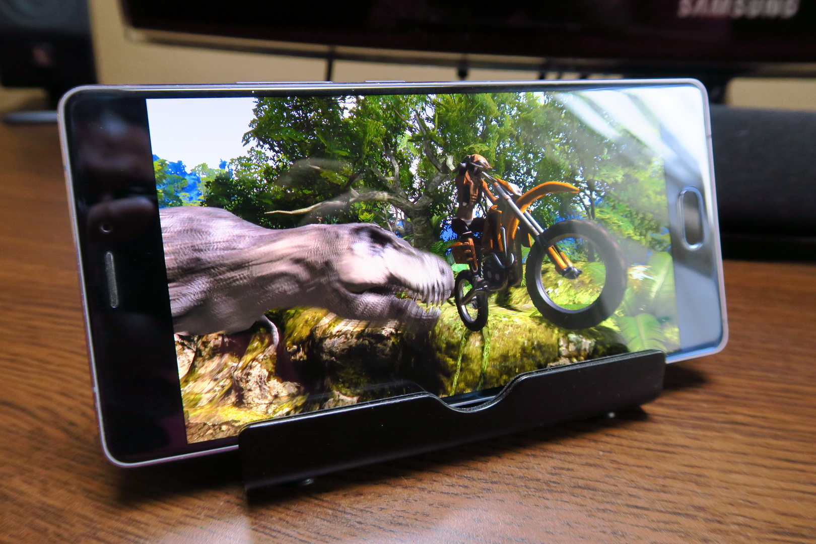 The display here is a 5.5 inch AMOLED with Full HD resolution and 2.5D panel. We’ve got on cell touch technology and Gorilla Glass 3 protection. The screen’s bezels are narrow and the video app used to play vids offers DTS functionality and Pop Up Play, too. The viewing experience brought us a bright and vivid image, very crisp as well and deep blacks.