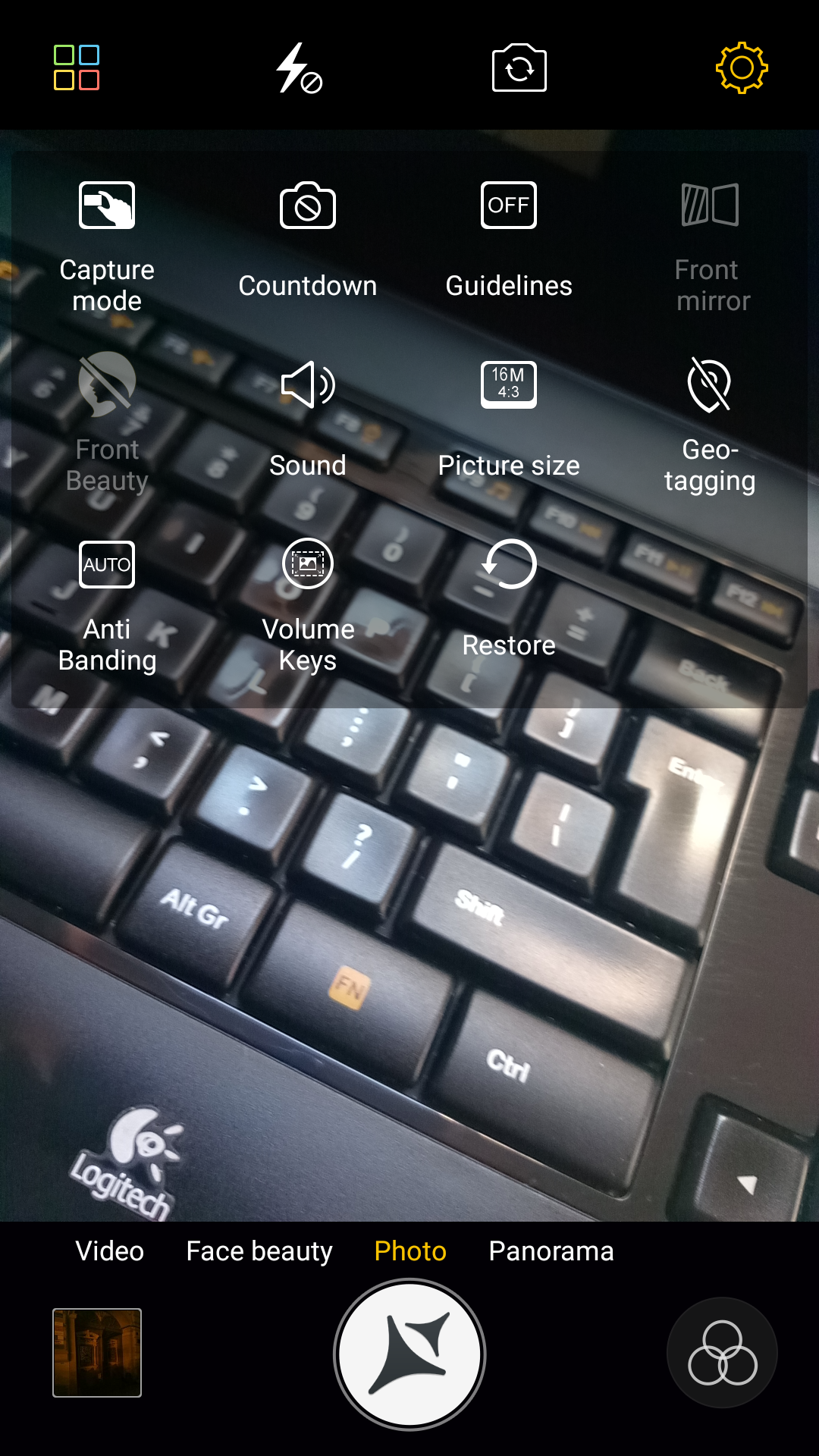 The front camera is an 8 MP unit with a flash selfie feature, using a lit up screen. The camera app starts up fast and the cam offers fast focus, fluid zoom and fast picture taking. The left side of the UI includes options like the resolution (16 MP in 4:3 or 12 MP in 16:9). Capture Modes are Super Photo (5x regular picture), PicNote, Mood Photo (Polaroid style), GIF, Smart Scan, Panorama, Slow Mo, Macro, Night, Time Lapse and Text Recognition.