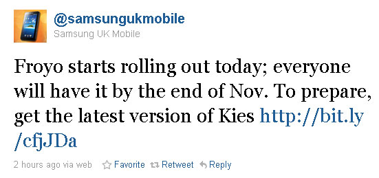 Samsung Mobile UK has just announced that it has started offering Froyo updates for Samsung handsets. All users will get their share of the update by the end of the month, it seems and this timeline reminds us of the Motorola Android 2.1 launch on the Backflip model. We’re not yet sure if the Froyo release is limited to the UK or the whole world, but we hope it’s the latter.