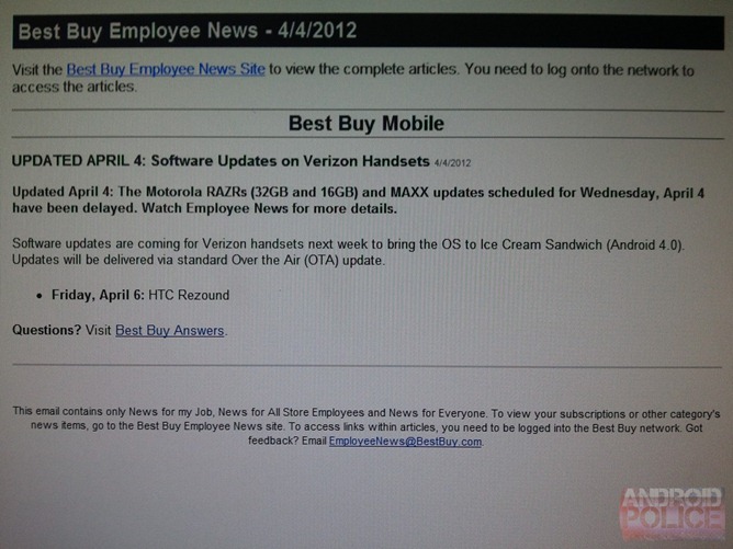 Meanwhile, Android Police scored a new leak from a retailer, indicating that the update has been delayed. April 6th is still on the list for the OTA software update of the Rezound and I guess we’ll find out in the following hours how real was that. Sadly, for people who own RAZR devices no new date was provided… Soak tests already surfaced this week, but not the final ICS update. I have to mention one thing that’s been bothering me: I don’t care what Google and Motorola are doing in the background while they’re merging into one, but since Moto Mobility has been part of Google, Motorola hasn’t been performing well.