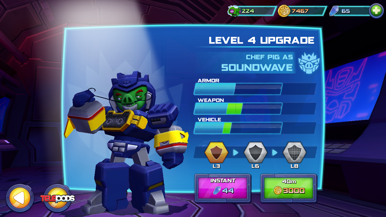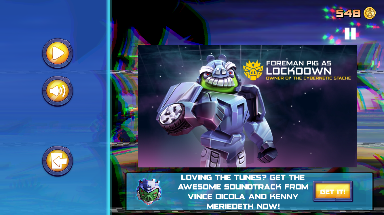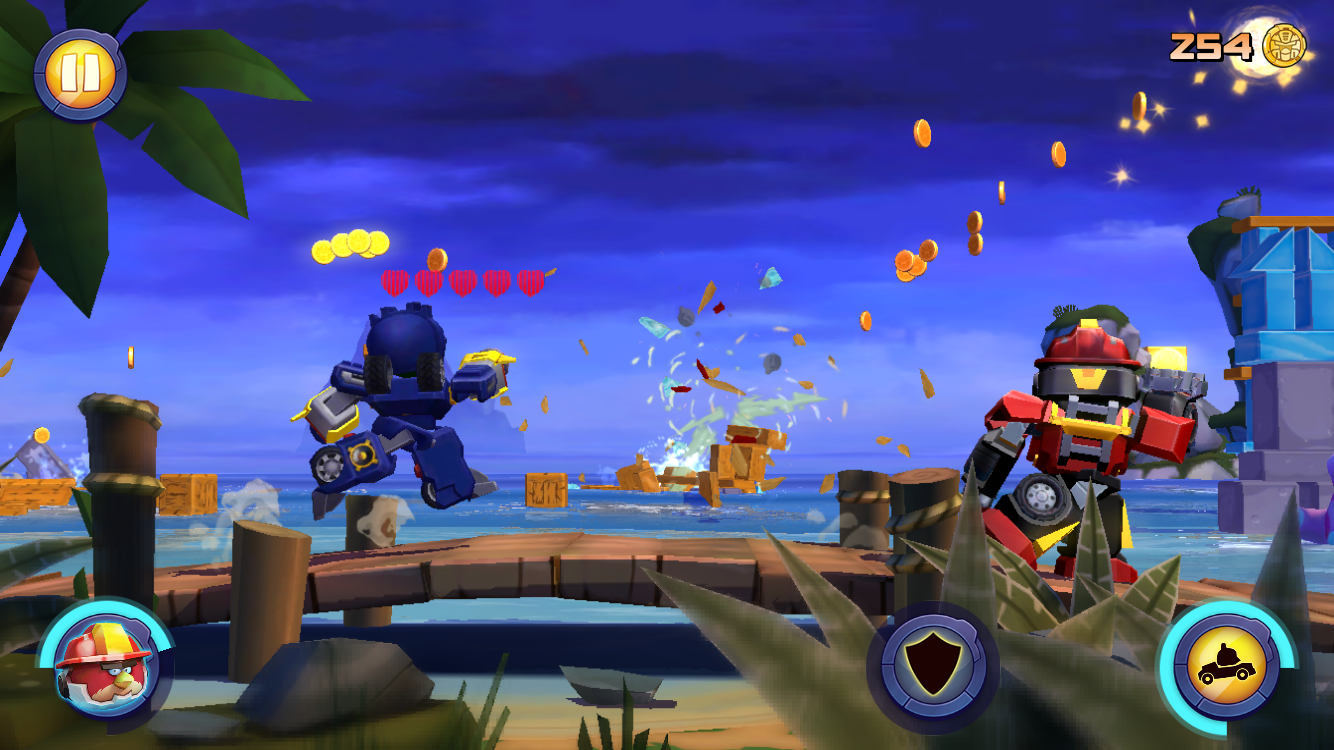 We’ve got a VHS style pause menu and the graphics go fuzzy in the 90s and 80s way when you take too much damage. The intro takes us back to the Transformers series from many years ago and this title feels like it’s made by people who actually love Transformers. You can also unlock a special Jenga mini game, that costs 9 euros, but that’s up to you. Angry Birds Transformers features 6 Autobirds, 5 Deceptihogs and it includes famous characters like Optimus Prime, Bumblebee, Heatwave, Grimlock, Megatron, Galvatron or Lockdown. All of them are perfectly rendered and filled with humor, particularly in the high fiving sections after cooperating.