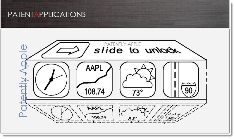 The interesting bit is that the new UI offers an animated feature that will roll the Unlock slider and reveal a bunch of rows of apps. The other interesting part is that this patent application also shows a new virtual Home button, that will increase the UI screen estate. Could this mean that the future iPhone and iPad will give up the physical Home button?
