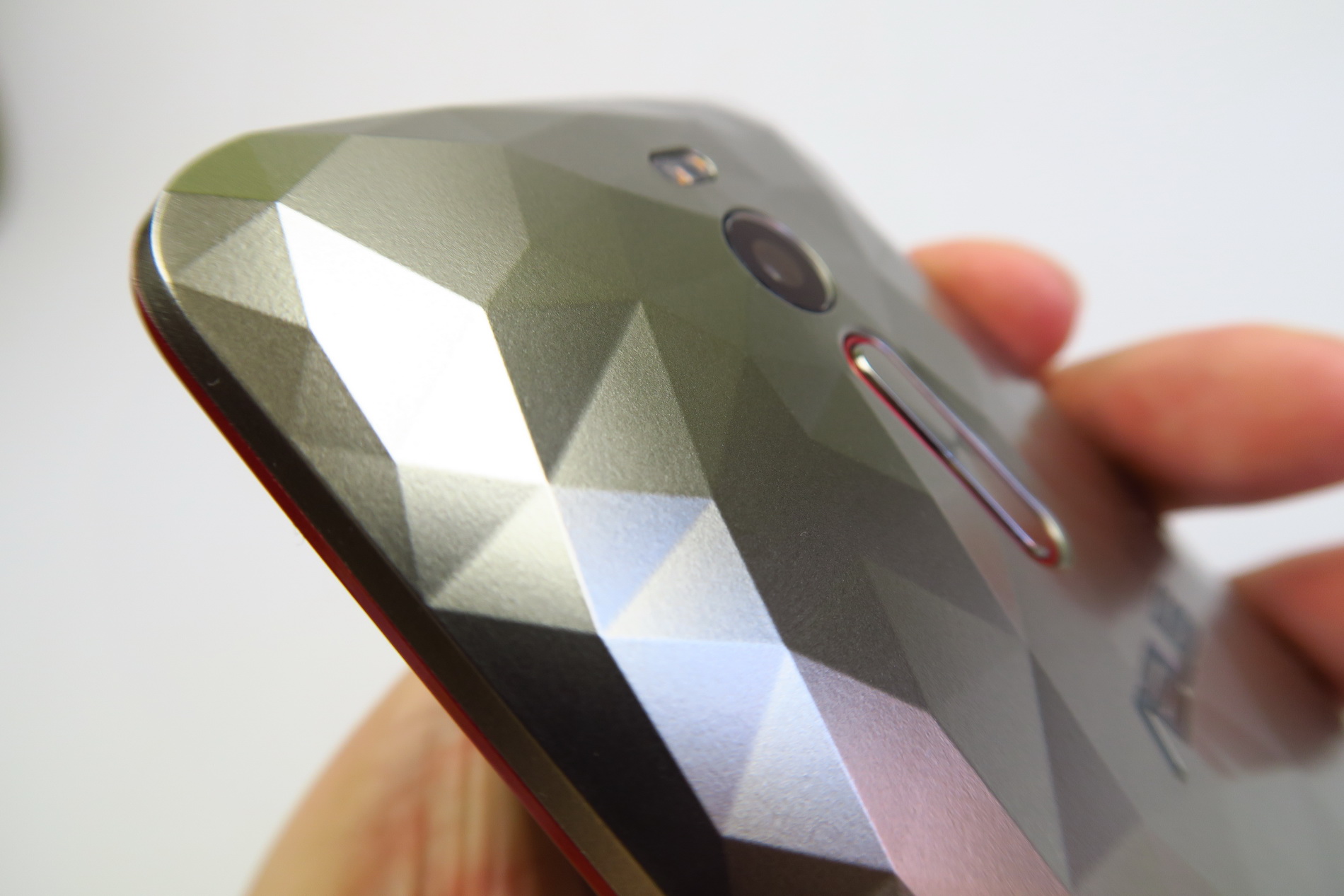 We’re testing the ZE551ML model, that comes with 128 GB of storage, but there’s also one with 256 GB. The design involves either the main cover, dubbed Drift Silver and inspired by crystals or the Carbon Night back, bundled with the phone. That one is inspired by supercars and carbon fiber. Back to the main one, it has a very nice 3D effect and diamond-like back shapes.