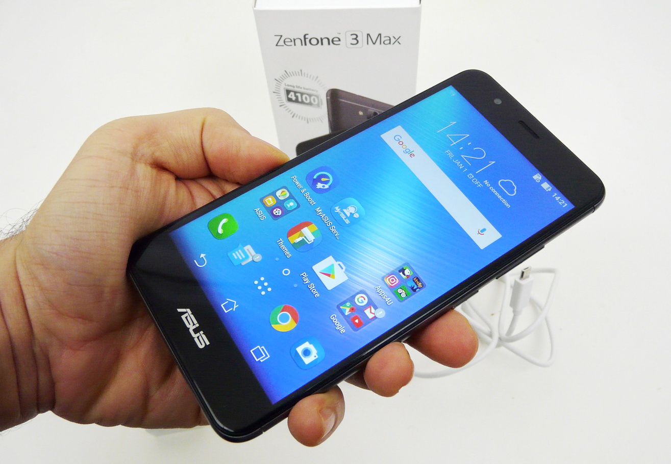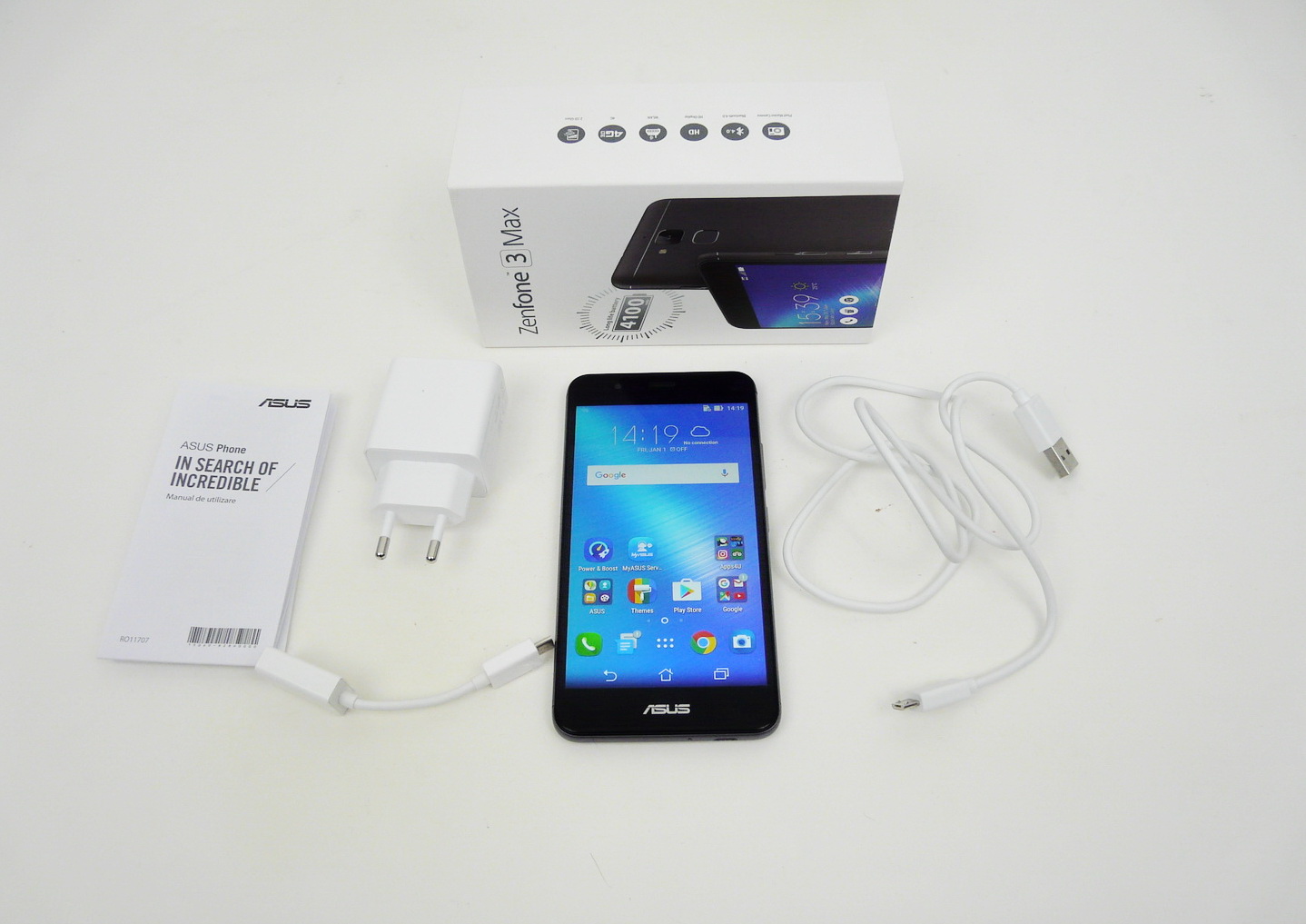 This handset debuted last summer and we’re playing with the ZC520TL version, which is the 5.2 inch variant of the smartphone, not the 5.5 inch one. Inside the box we find the manual, USB cable, USB OTG cable and charger. There are no headphones, at least not in the version we tested. The core selling point is the 4100 mAh battery and this model can also be used as a power bank to juice up other devices.