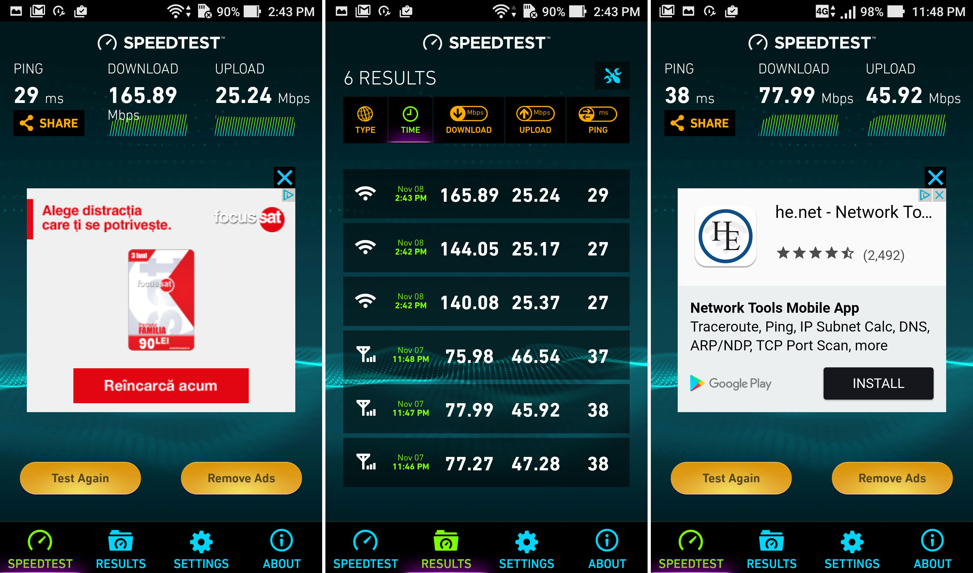 Calls are loud and clear, they sound great and the signal is also good. We also did a SpeedTest, achieving 165 Mbps in download on WiFi and 25 Mbps in upload. On 4G we reached 77 Mbps in download and 47 Mbps in upload, which frankly speaking could be higher, for both 4G values. The WiFi is inferior compared to the ZenFone ZE520KL, but the 4G is above it, so all’s good in the end.