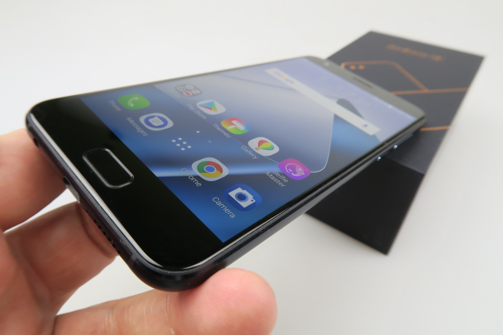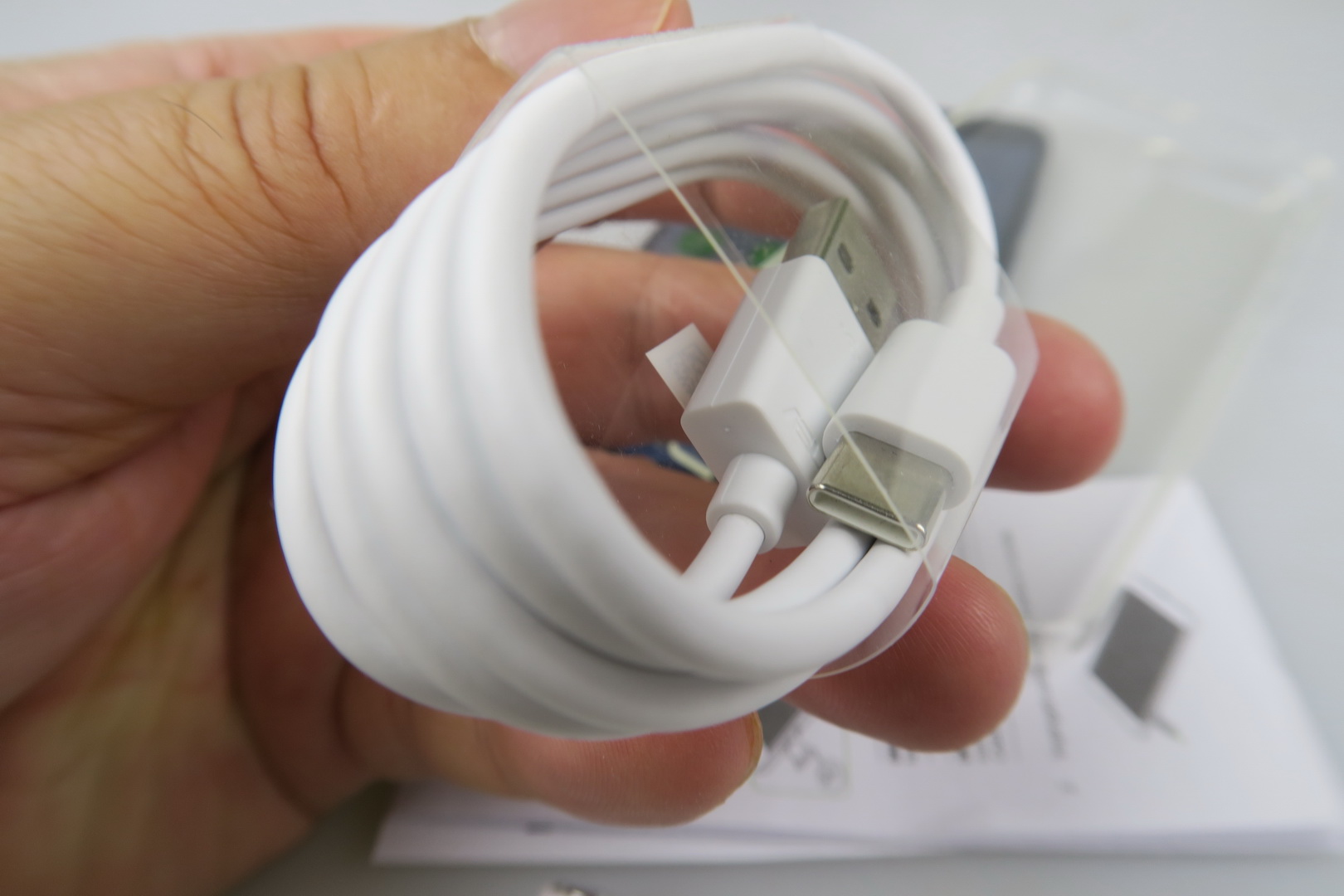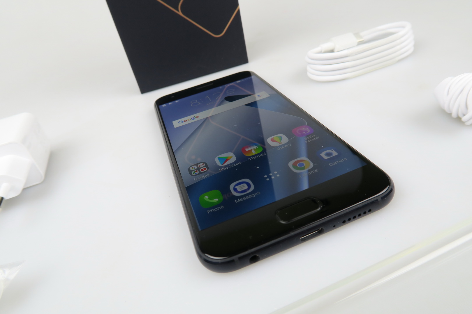 It’s an evolution from the successful ZenFone 3 and it moves on towards a dual camera. Inside its box we find a transparent and flexible case, a manual, a small metal key used to access the slots and headphones. They have an inclined design, much like the ZenFone 3 headphones did. There are also headphone plugs here, an USB Type-C cable and a charger that juices up the phone to 50% battery in 36 minutes.