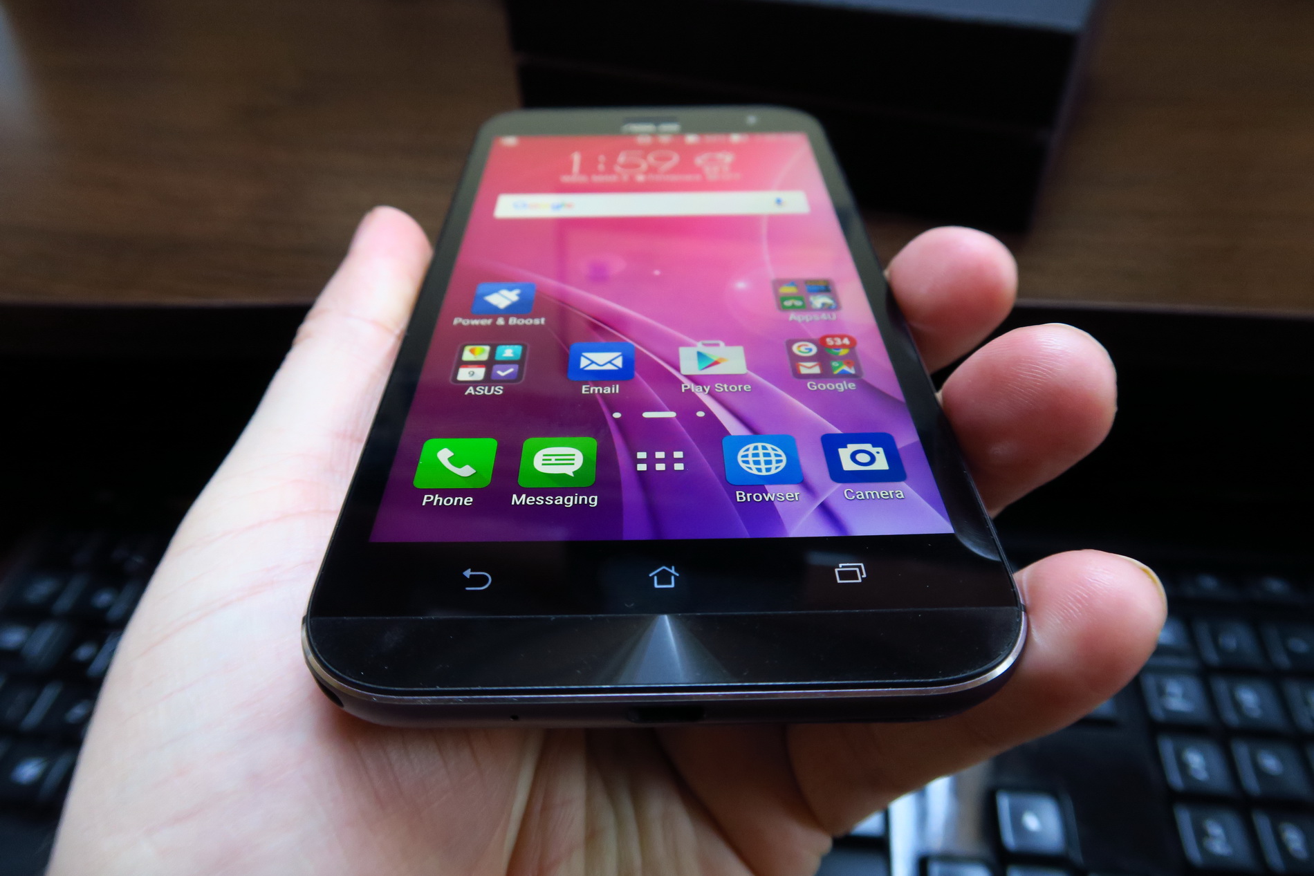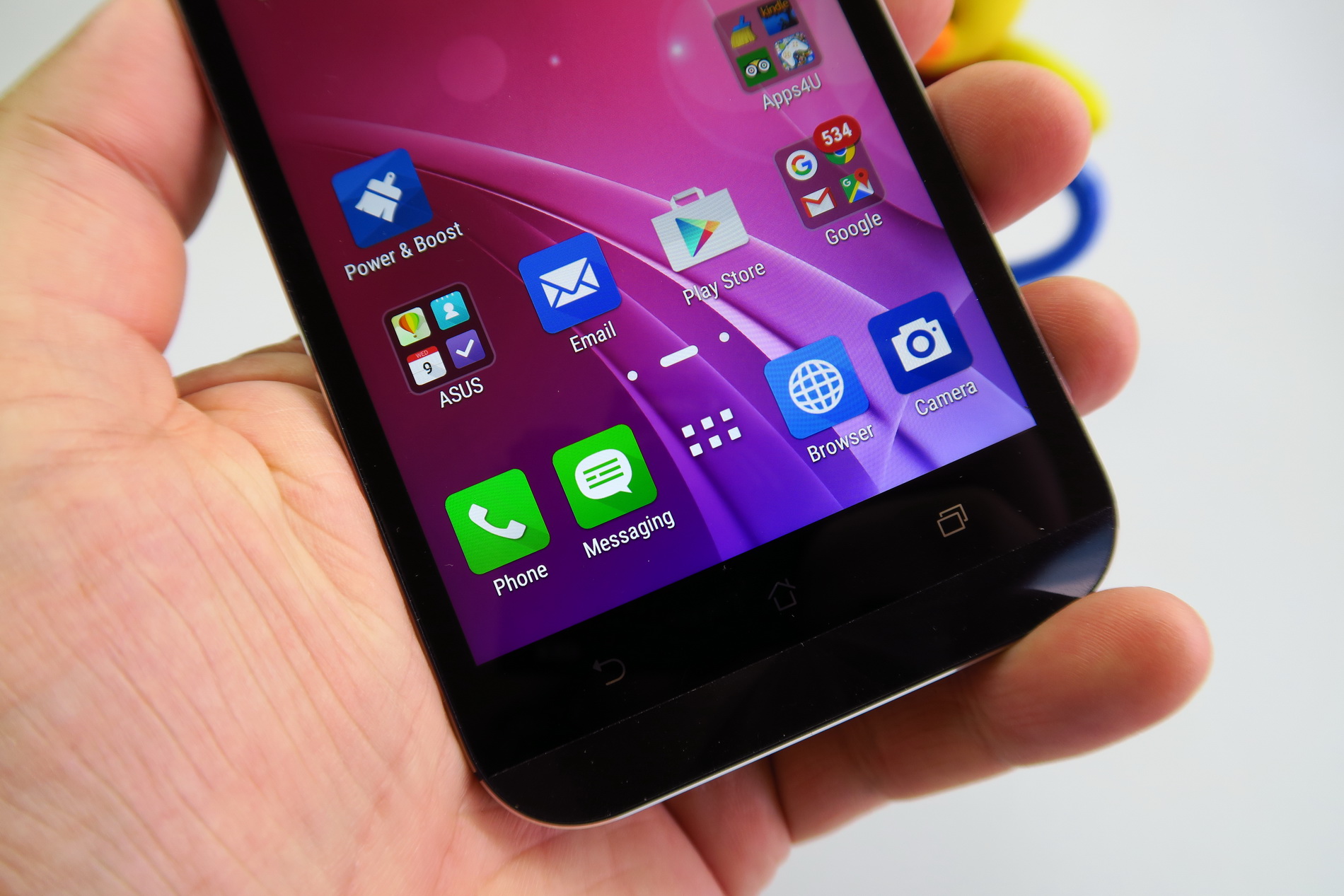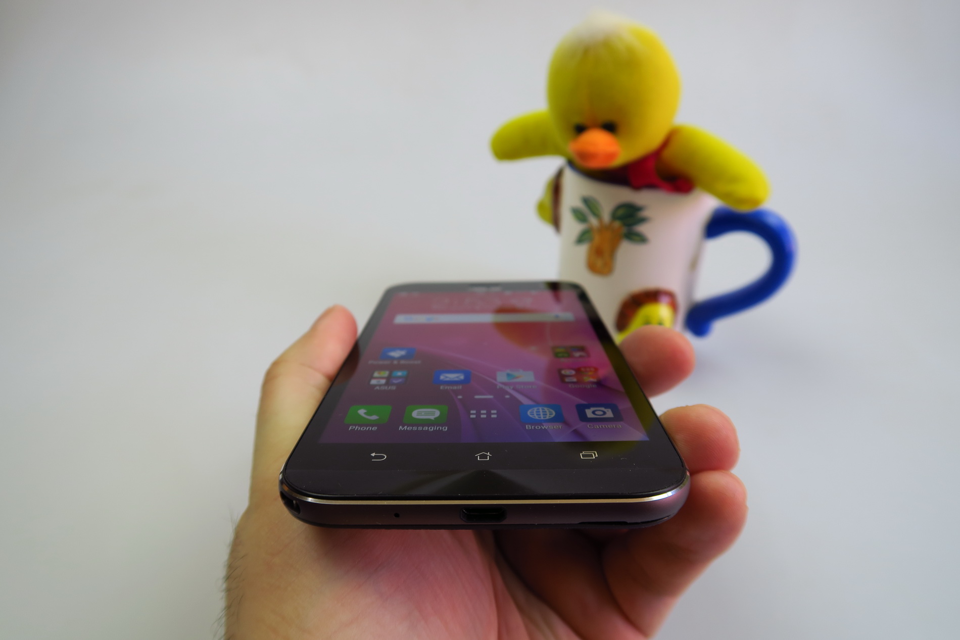 It weighs 185 grams, which makes it 15 grams heavier than the ASUS ZenFone 2 and ASUS ZenFone 2 Laser. In spite of the cheap feeling back, we get a solid build and a metal frame that reminds me of the HTC One M9. The back cover is hard to remove and the phone is very wide, certainly not comfy to use with a single hand. ASUS claims it’s made using 201 production processes and this device offers good grip and a lanyard hole, plus there’s a lanyard bundled with the device.
