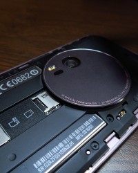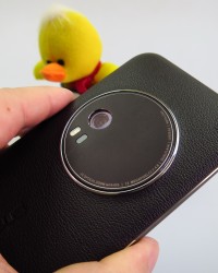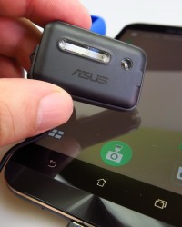 The camera relies on a Panasonic sensor and this handset offers a dedicated button for photo capture and one for video capture. The front camera is a 5 MP shooter, with wide angle lens. We also showed you in the video review the bundled ASUS ZenFlash, an external flash that attaches to the phone magnetically and connects to it via microUSB.