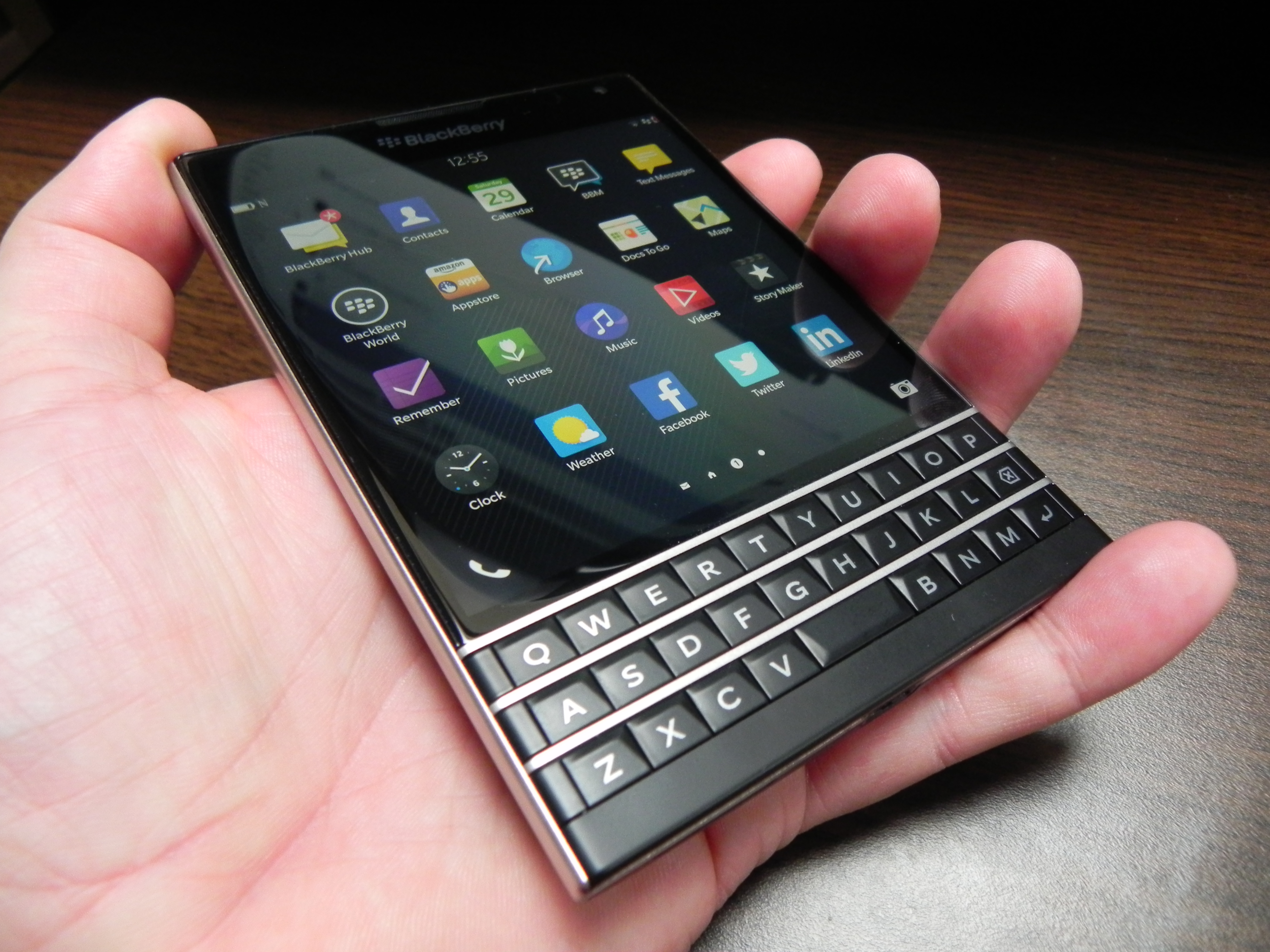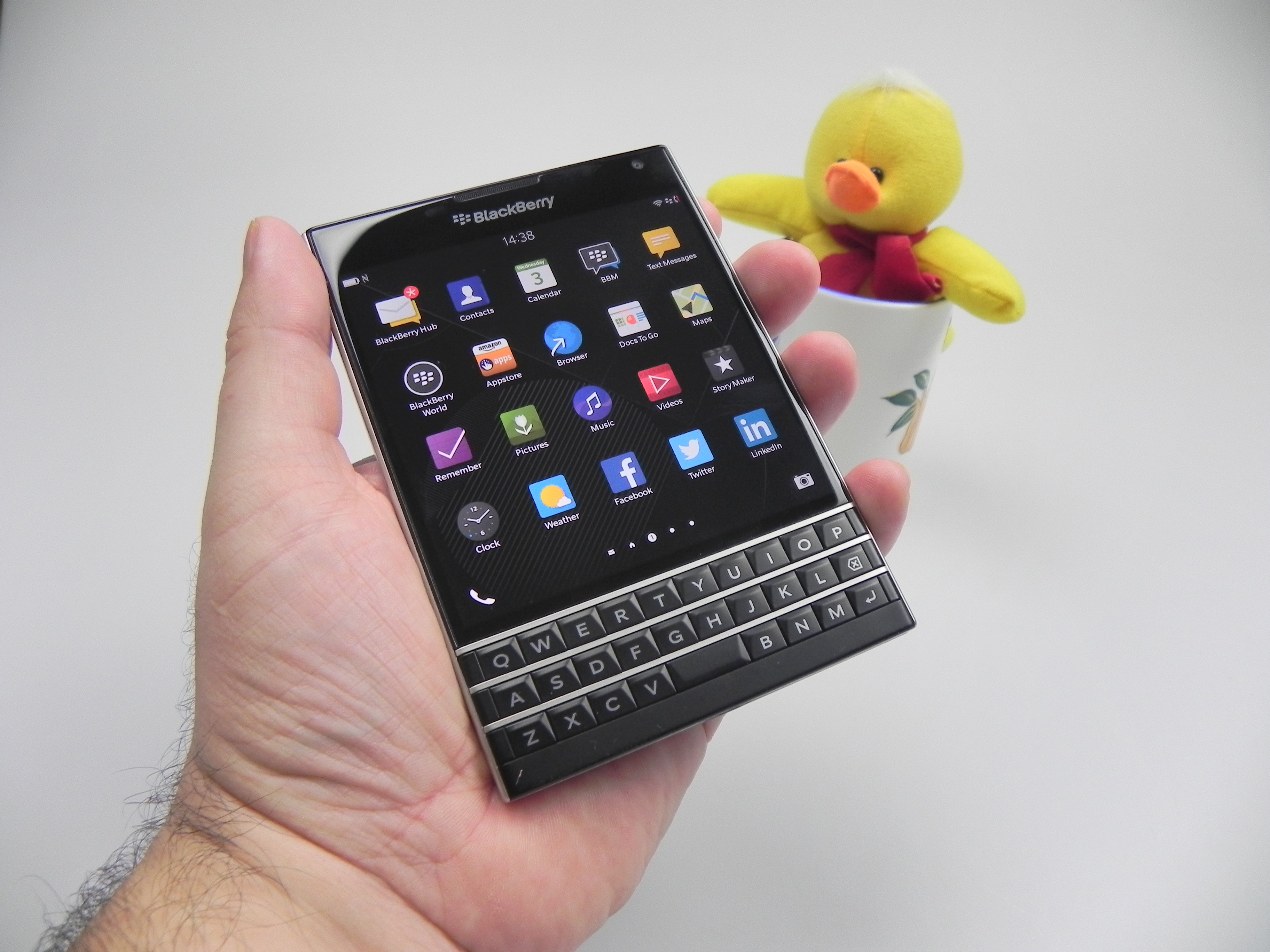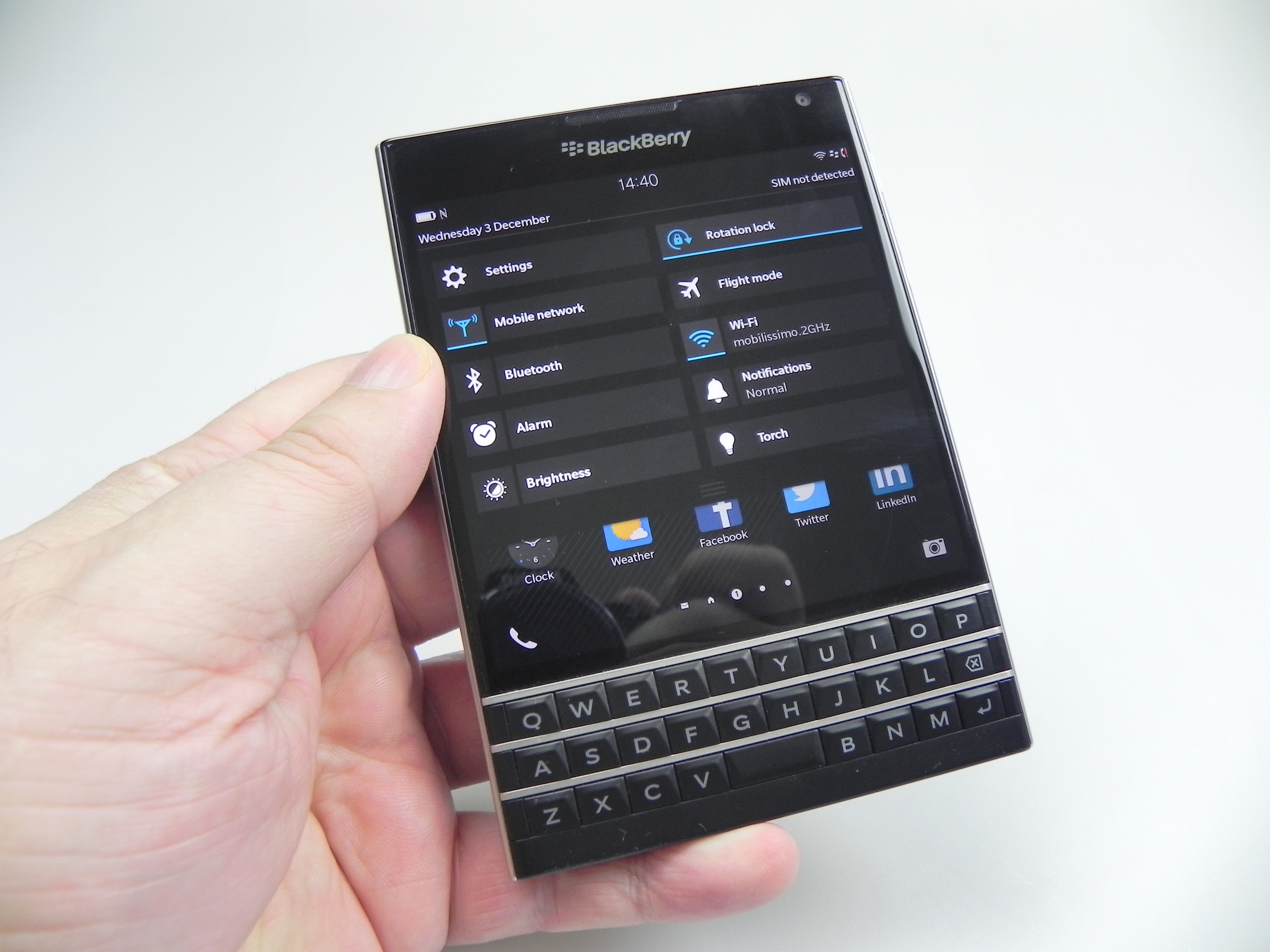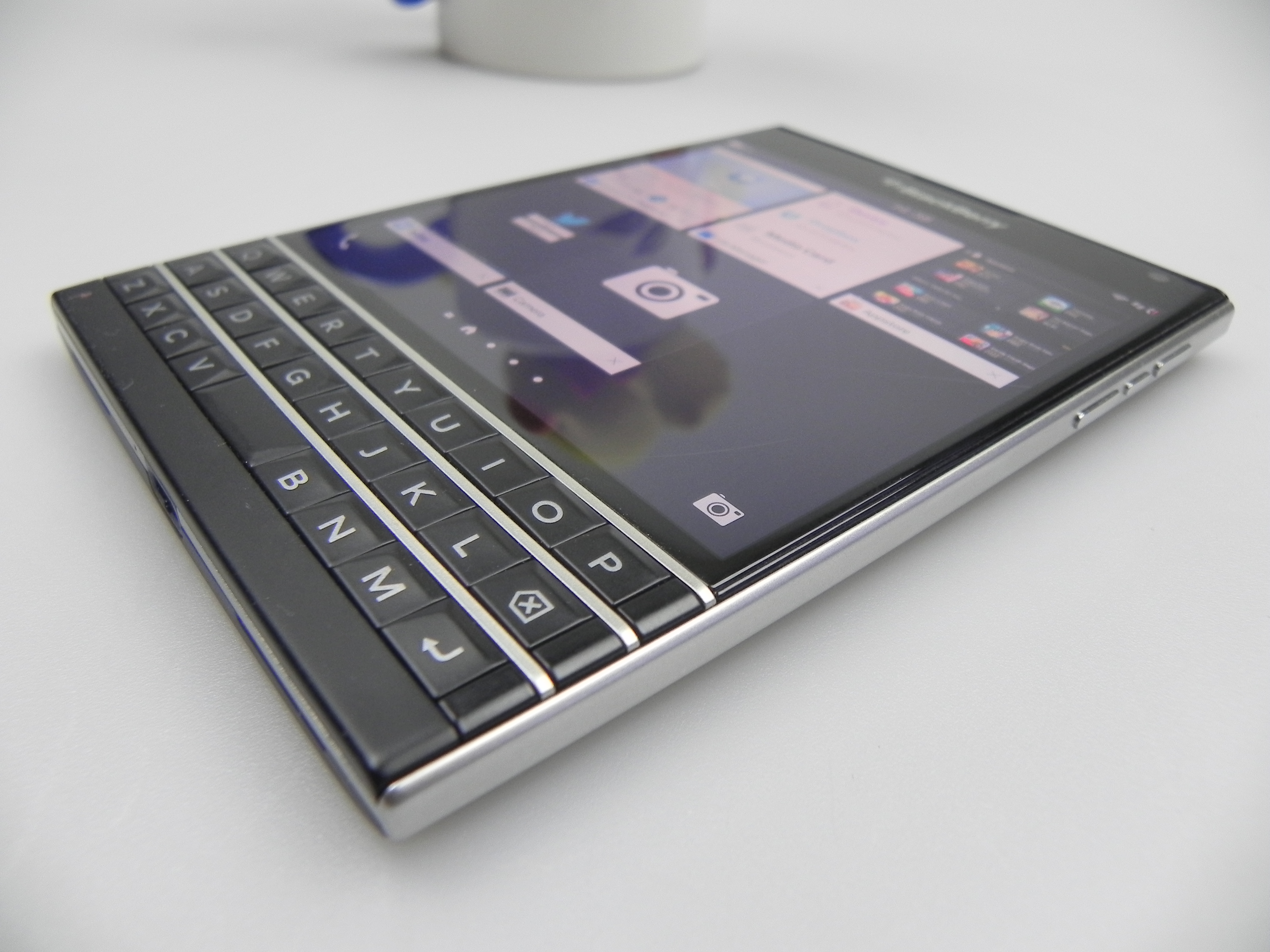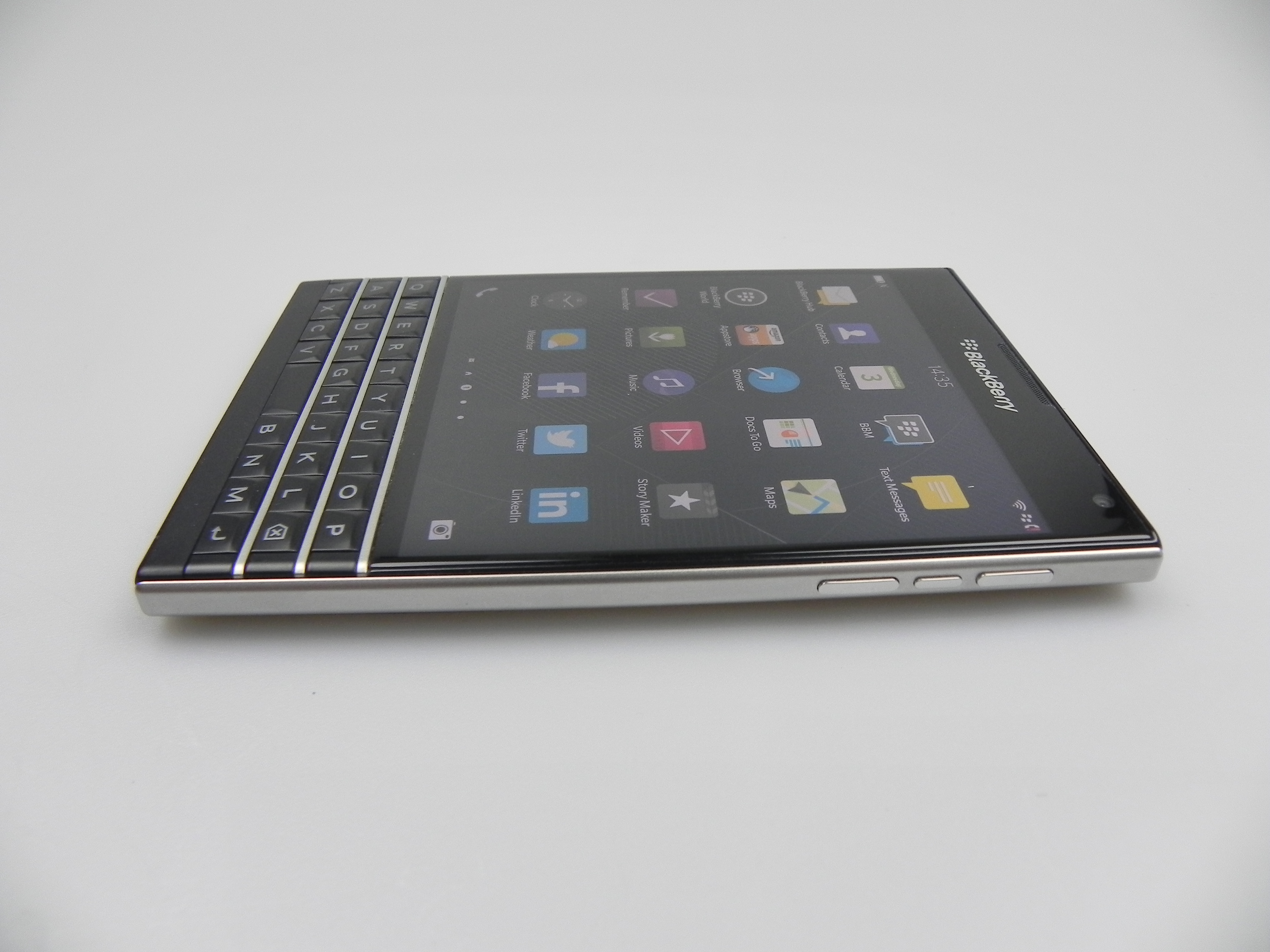 Then there’s BlackBerry Hub, Contacts, Calendar, Docs to Go, Maps, Story Maker, Weather, Facebook, Twittter, Linkedin, Foursquare and BlackBerry Blend. The latter allows you to move files back and forth between your Passport and your PC, Android or iOS device, using a dedicated app. All you need to do is download the Blend app on iOS or Android and you’ll have access to your messages, pictures and content if you input your BlackBerry ID. Finally, the app list also includes Evernote, a File Manager, Adobe Reader, YouTube Box, Smart Tags and Compass.