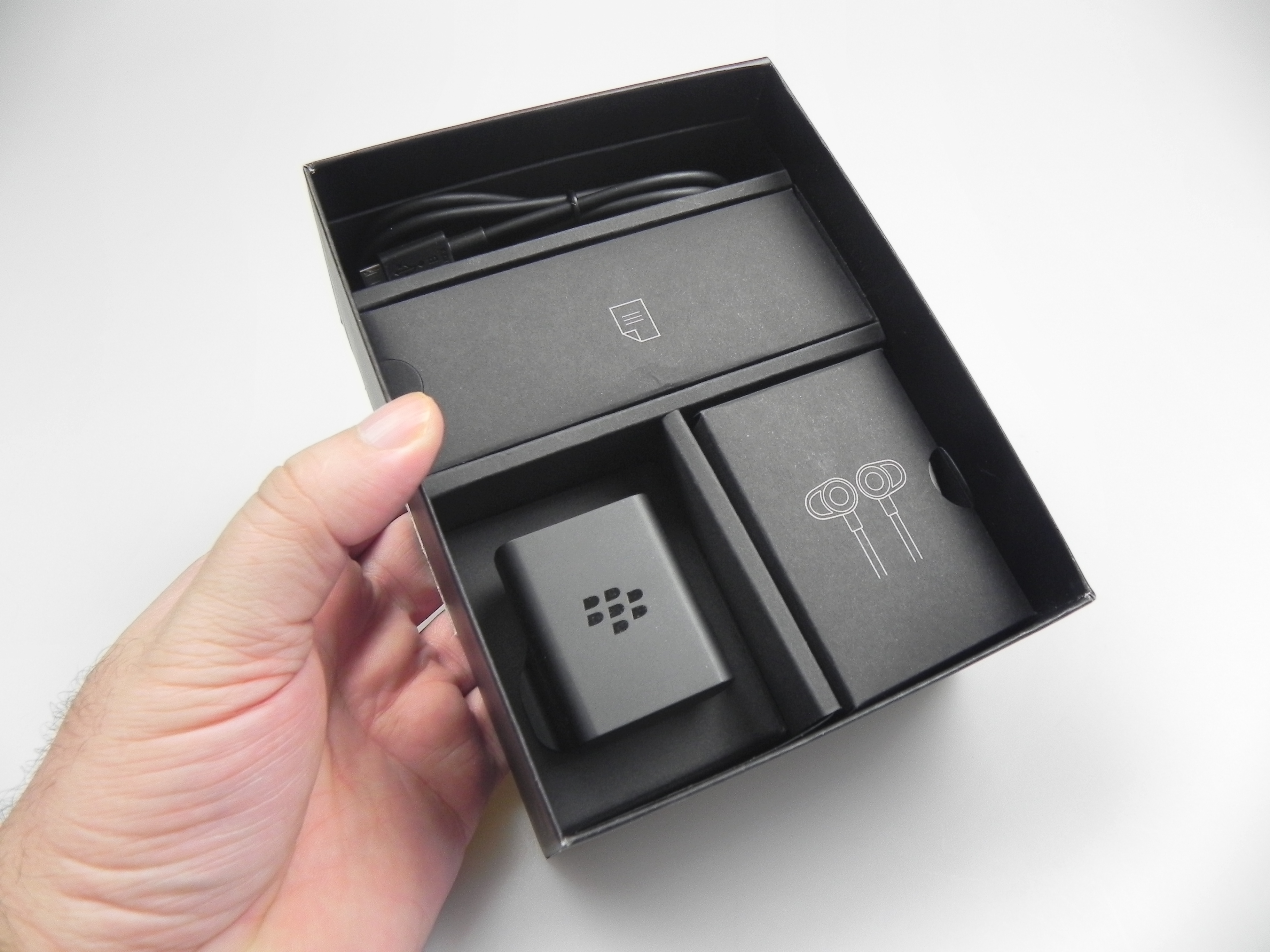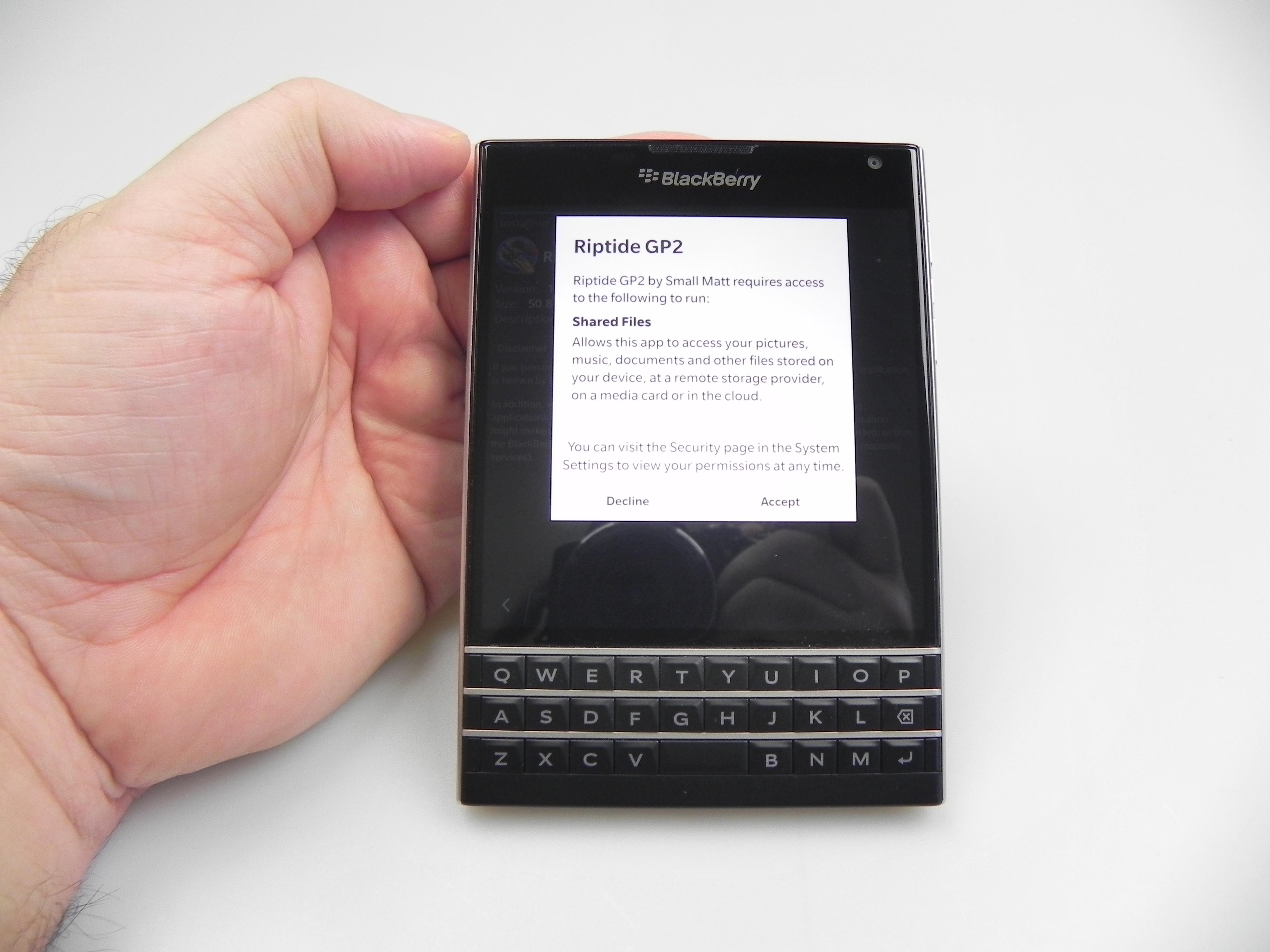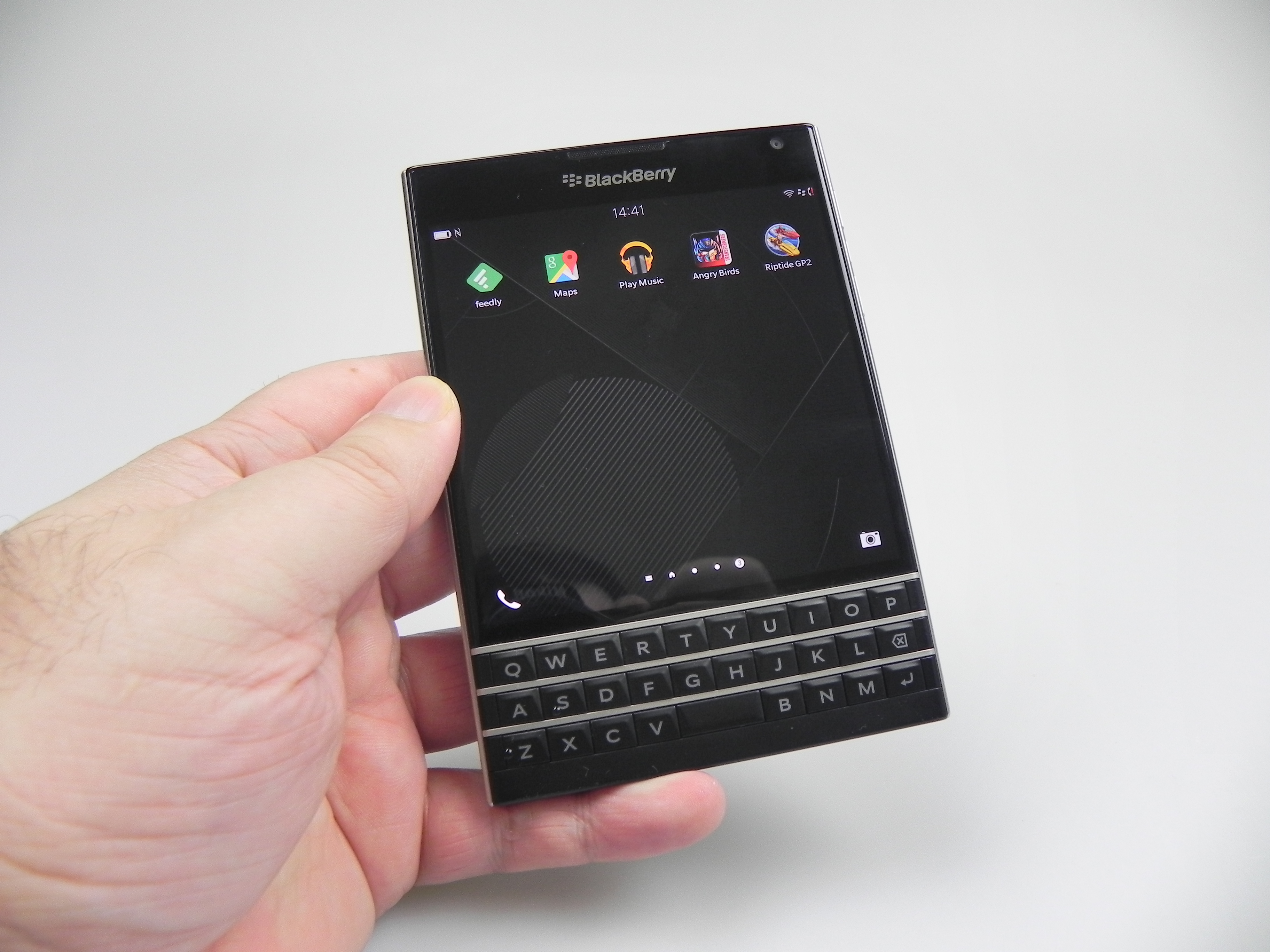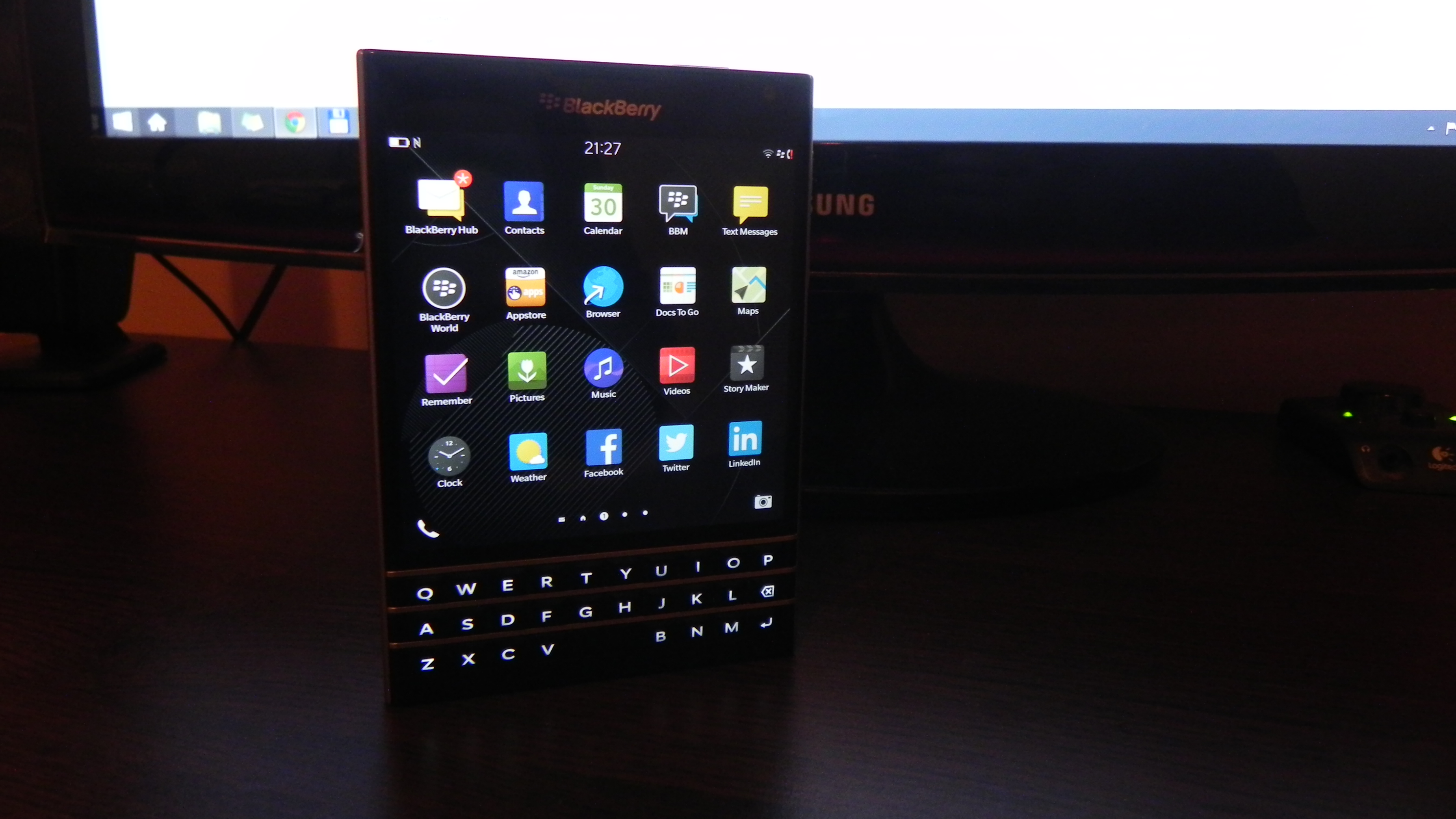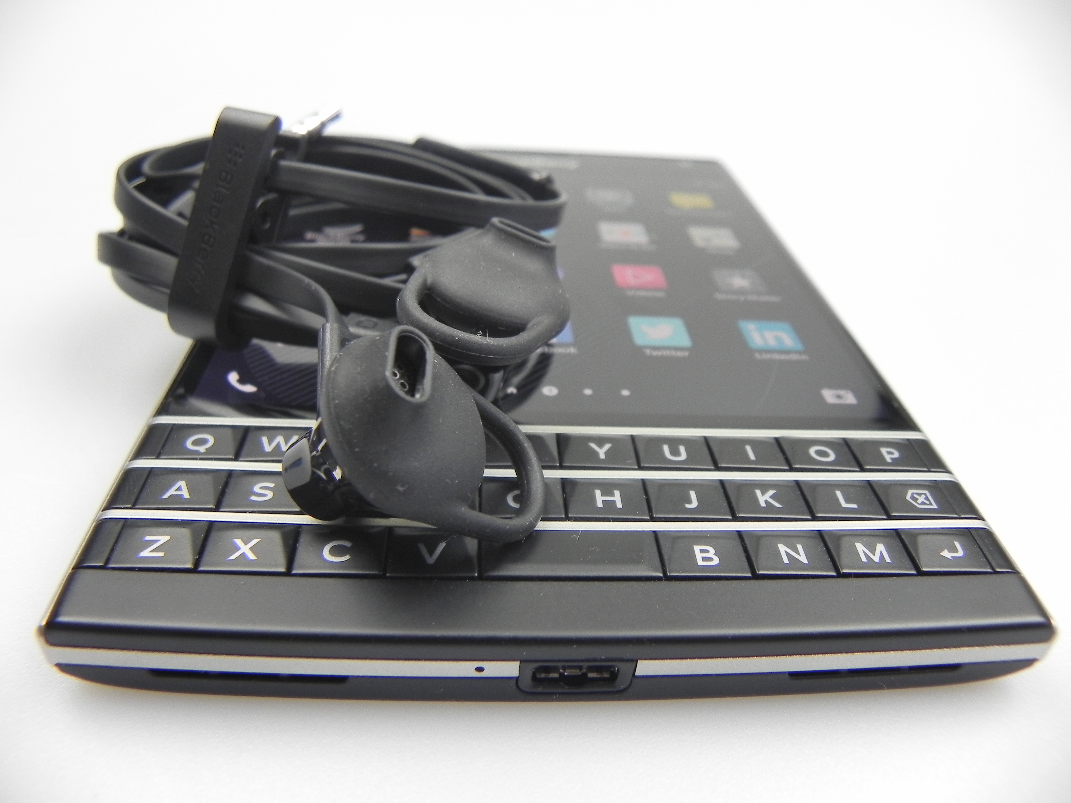 Then there’s BlackBerry Hub, Contacts, Calendar, Docs to Go, Maps, Story Maker, Weather, Facebook, Twittter, Linkedin, Foursquare and BlackBerry Blend. The latter allows you to move files back and forth between your Passport and your PC, Android or iOS device, using a dedicated app. All you need to do is download the Blend app on iOS or Android and you’ll have access to your messages, pictures and content if you input your BlackBerry ID. Finally, the app list also includes Evernote, a File Manager, Adobe Reader, YouTube Box, Smart Tags and Compass.