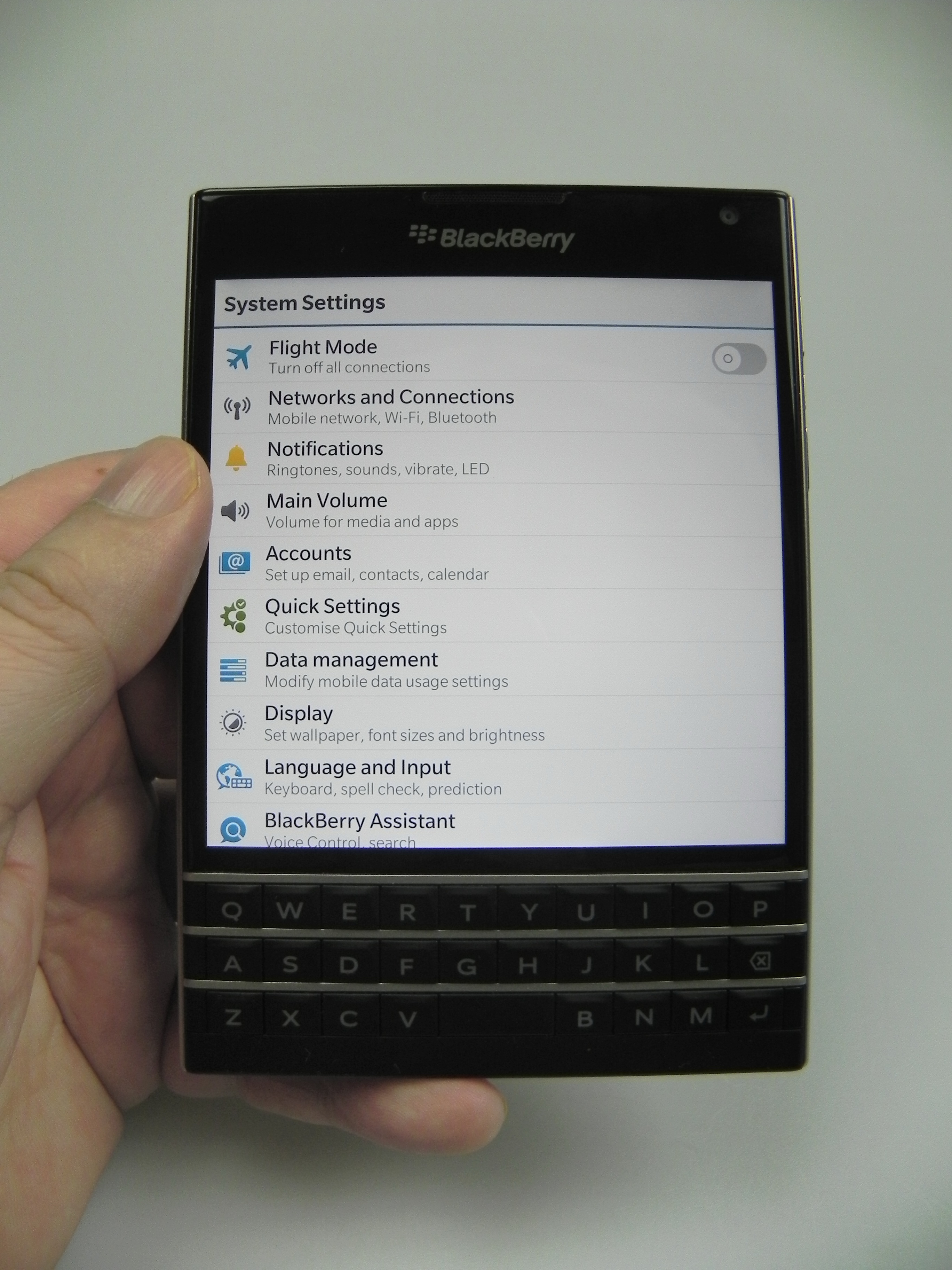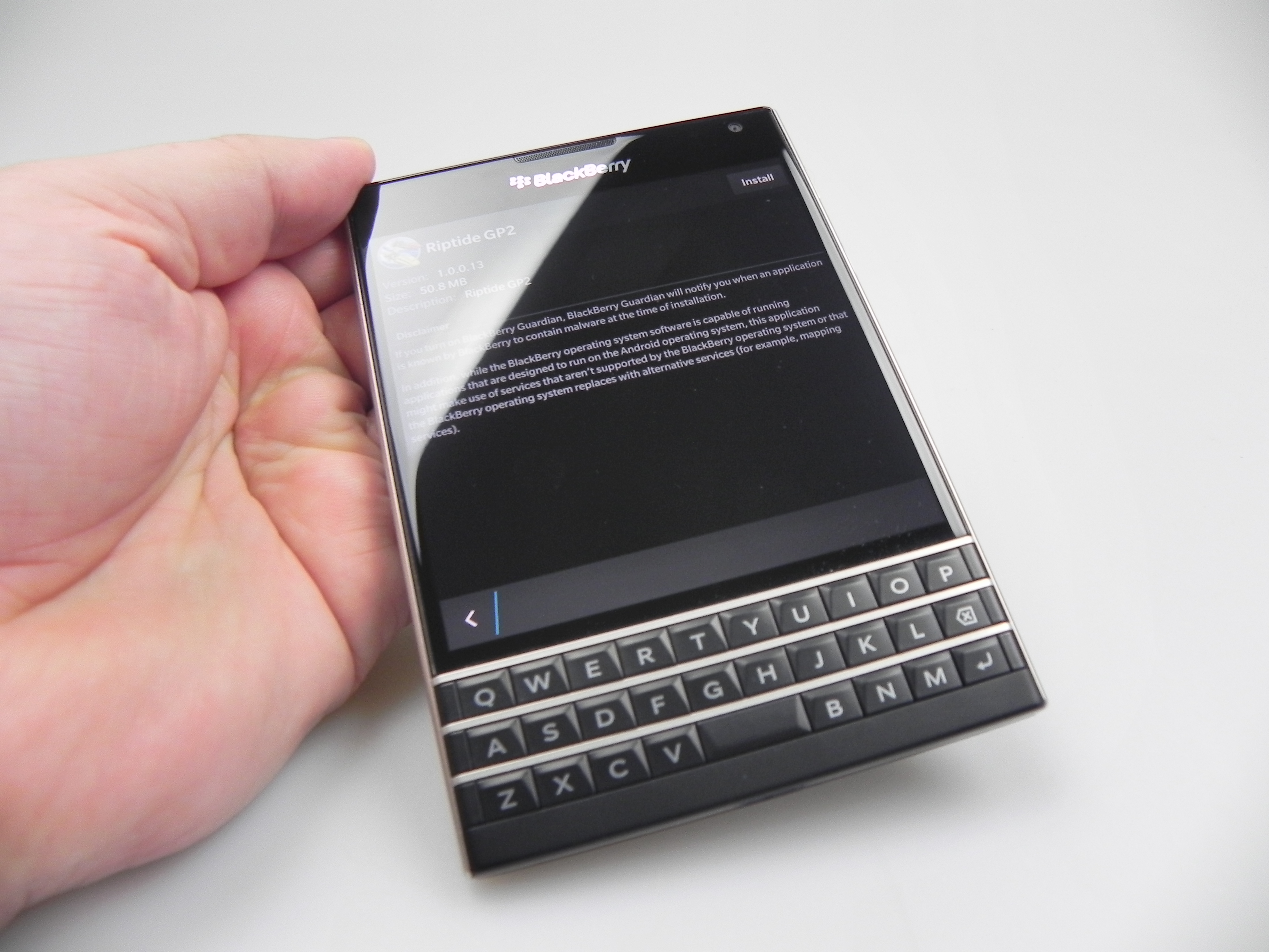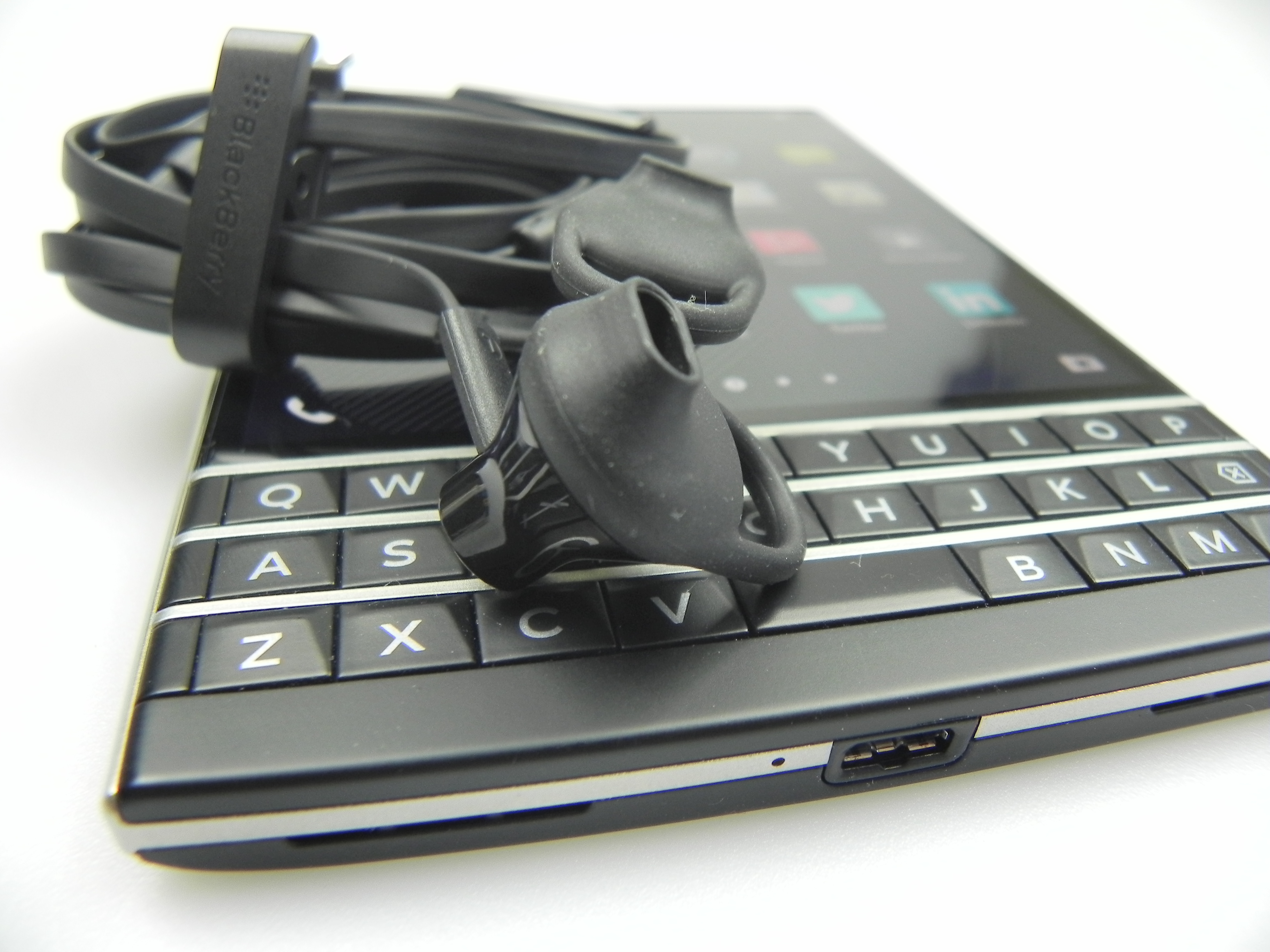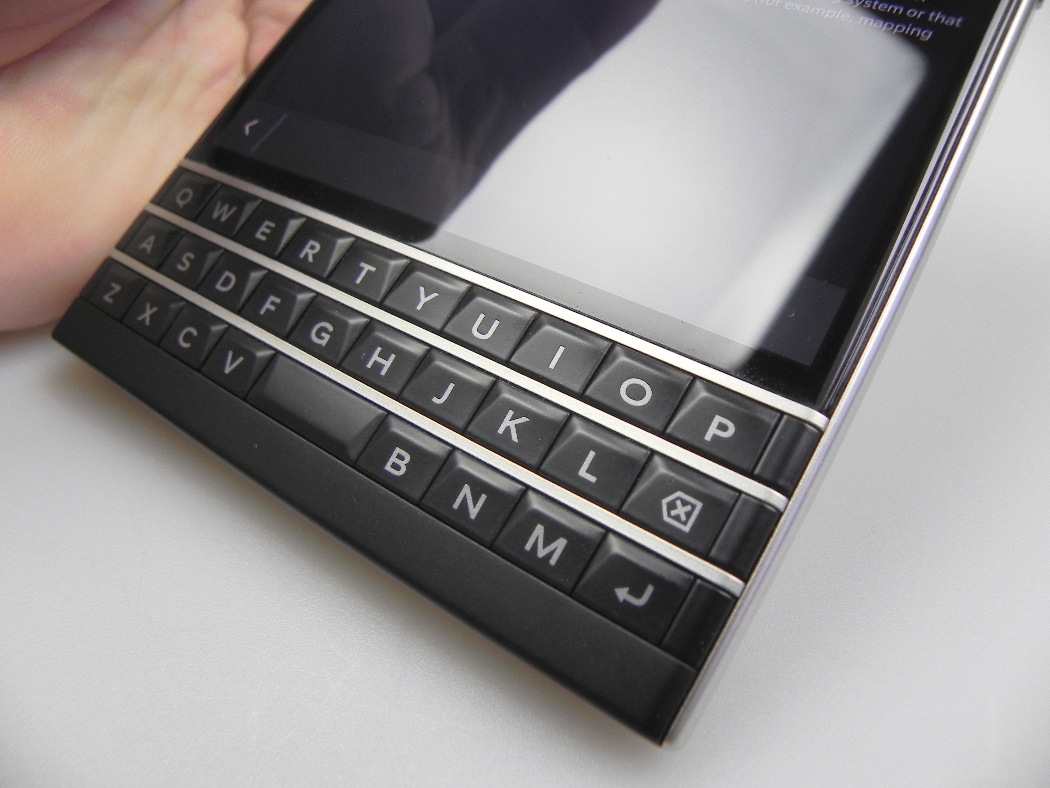 The physical QWERTY keyboard on the Passport has touch support for scrolling in lists and such gestures, but you can also used to swipe to the left in order to delete a word you’ve just written. Also, a swipe up inputs the suggestion offered by the prediction engine of the keyboard on the screen. Completing the functionality of the keyboard is a row or two of symbols and figures on the lower part of the touchscreen.