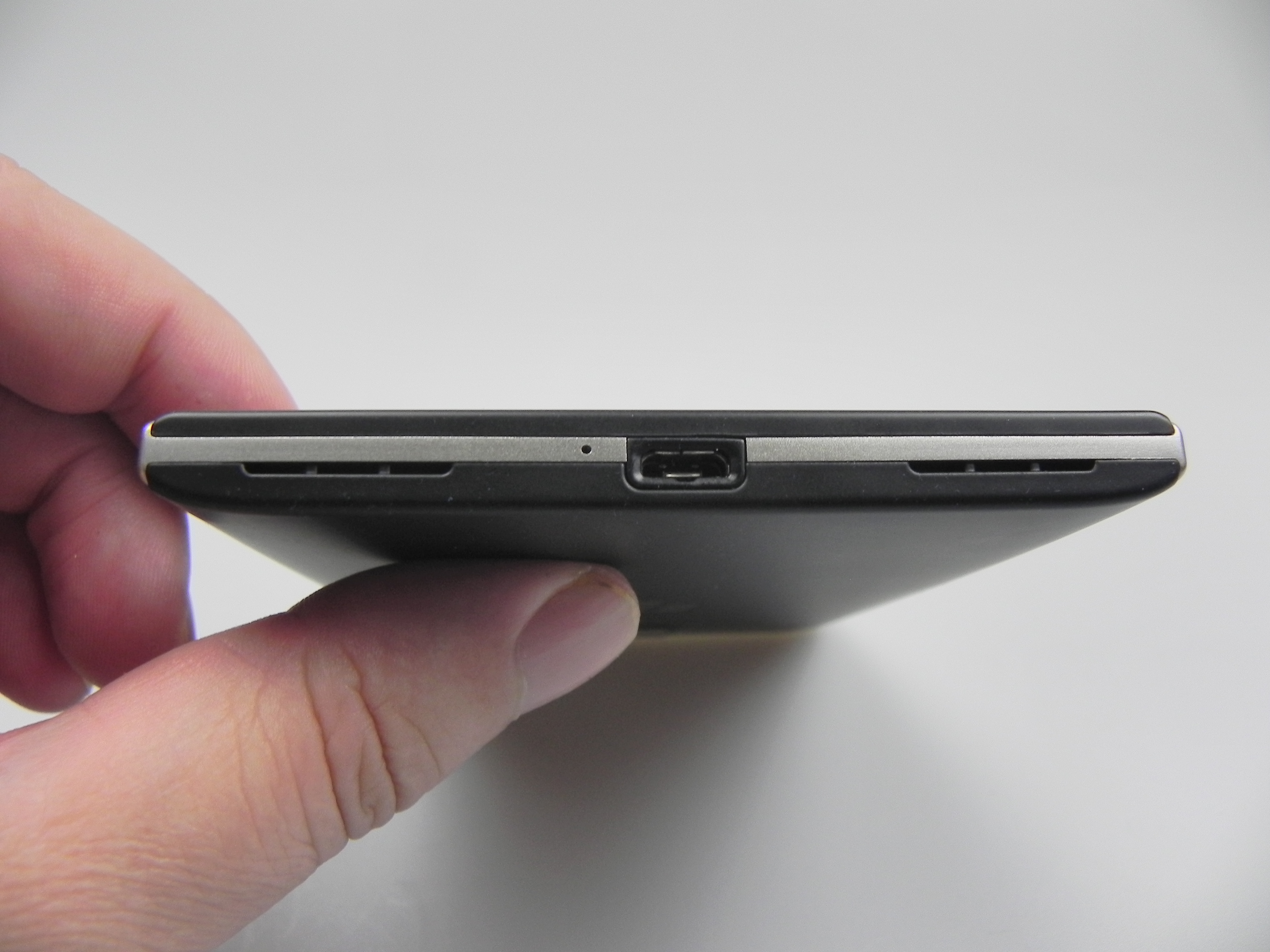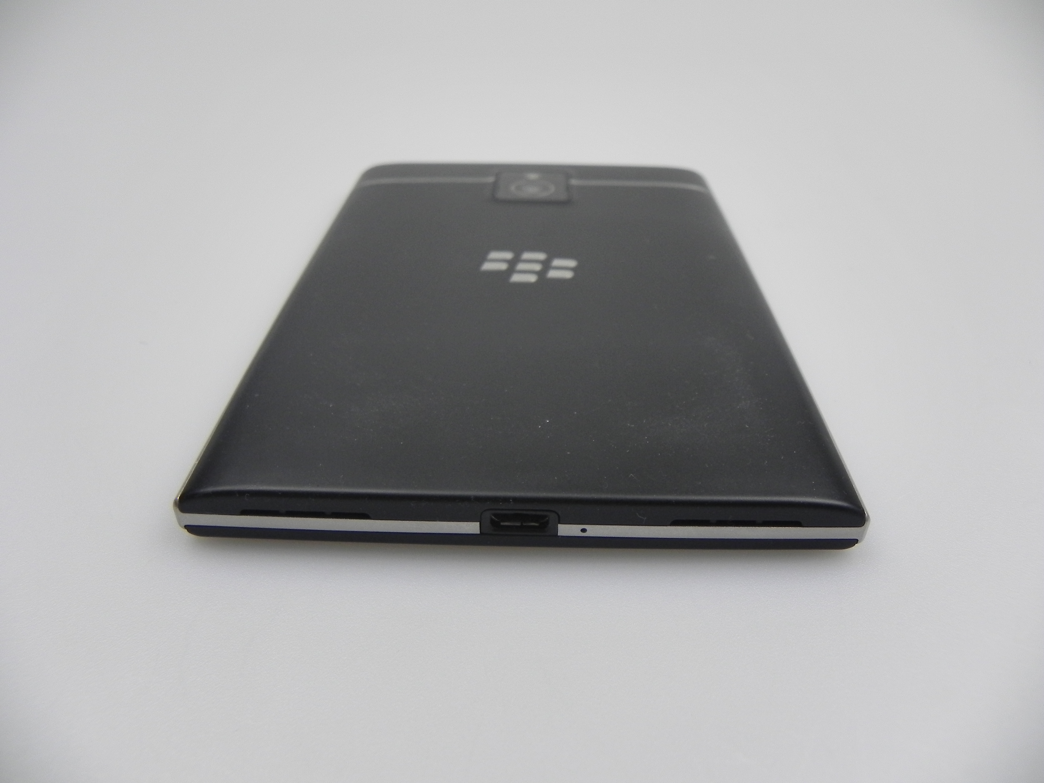 At the bottom we find the microphone, microUSB port and two speakers. Overall, this model is solid, elegant, comfier than expected and a premium one, as far as design is concerned. Moving on to the hardware, the BlackBerry passport uses a 4.5 inch IPS LCD display, with 453 ppi density, a 1440 x 1440 pixel resolution, 24 bit color depth and inside there’s a quad core Snapdragon 801 2.2 GHz processor, with an Adreno 330 GPU also in the mix, clocked at 450 MHz.