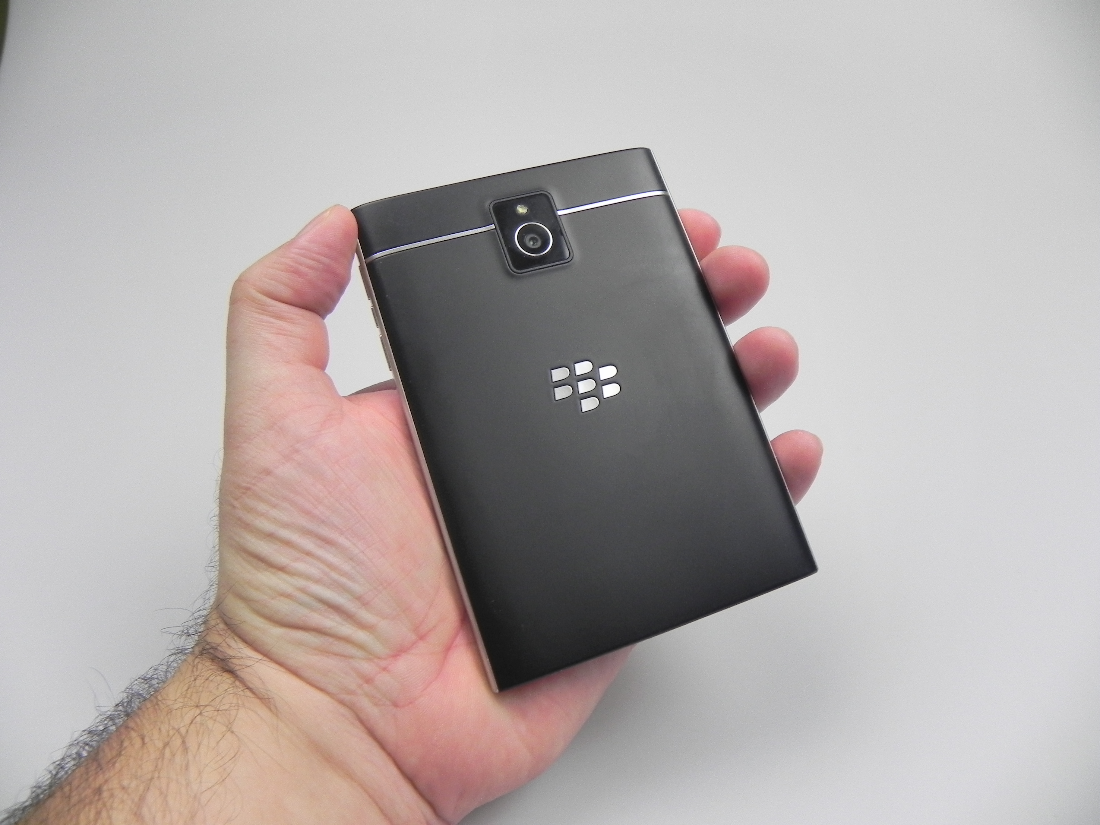 The design is atypical, squared, but it’s also pretty elegant and comfier than expected. This model measures 9.3 mm in thickness, weighs 196 grams and measures 90.3 mm in width. Meanwhile, for the sake of comparison the Galaxy Note 4 measures 78.6 mm in width. This means that the Passport is 12 mm wider and also 20 grams heavier than the Note 4. We also get a 4.5 inch square screen on board and this model can’t be used with one hand, that’s for sure, since it’s made for 2 hand usage.