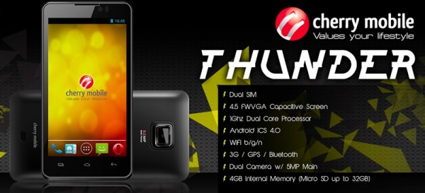 The Cherry Mobile Thunder, as it’s known is a 4.5 inch smartphone with Android 4.0.4, a 1GHz dual core MediaTek processor and 4 GB of storage. It also has 512 MB of RAM, a microSD card slot, WiFi, Bluetooth, GPS, a 5 MP main camera and a VGA front cam. It supports a 480 x 854 pixel resolution, which gives out 218 PPI, better than the iPhone 3GS 163 ppi.