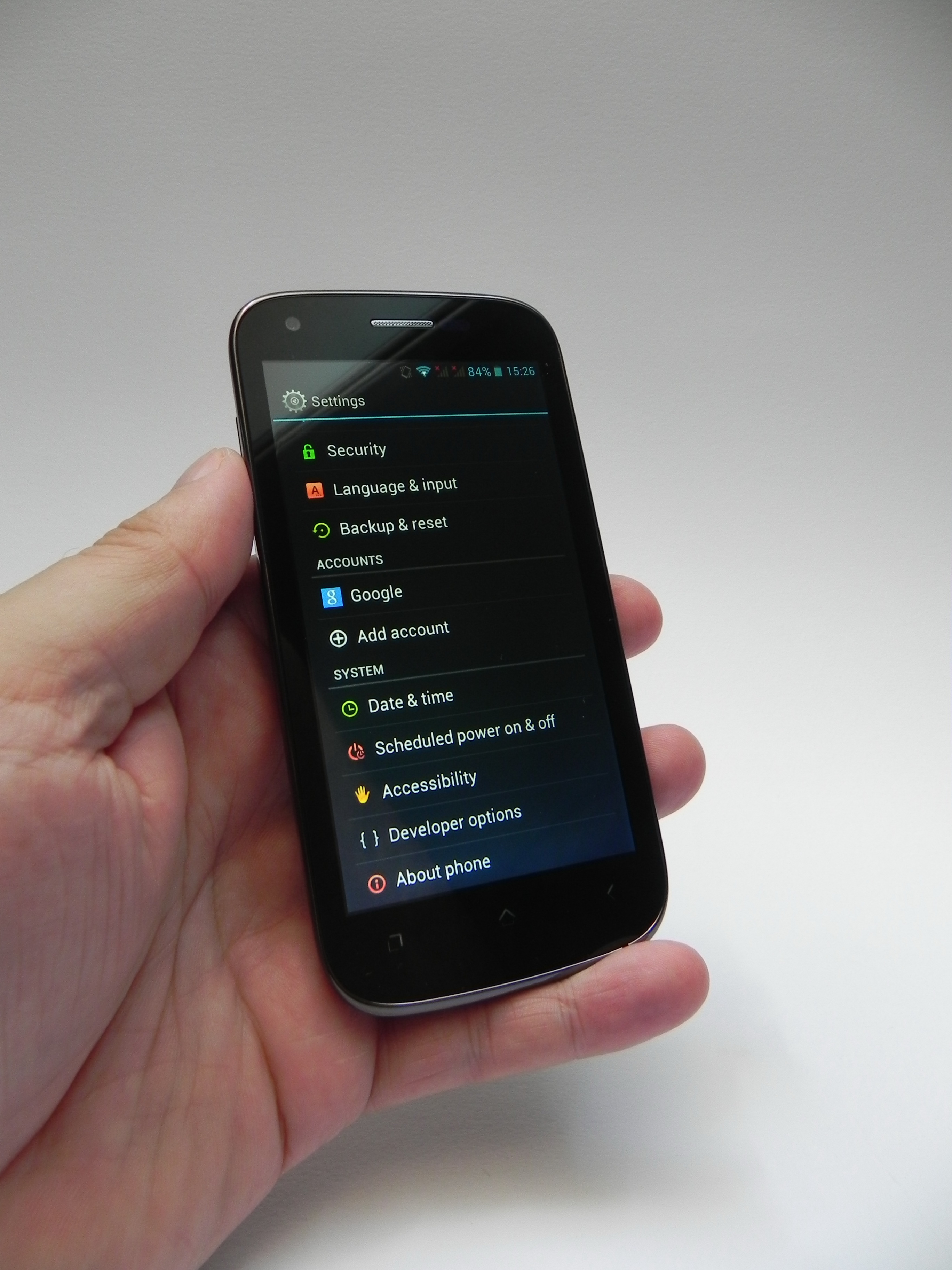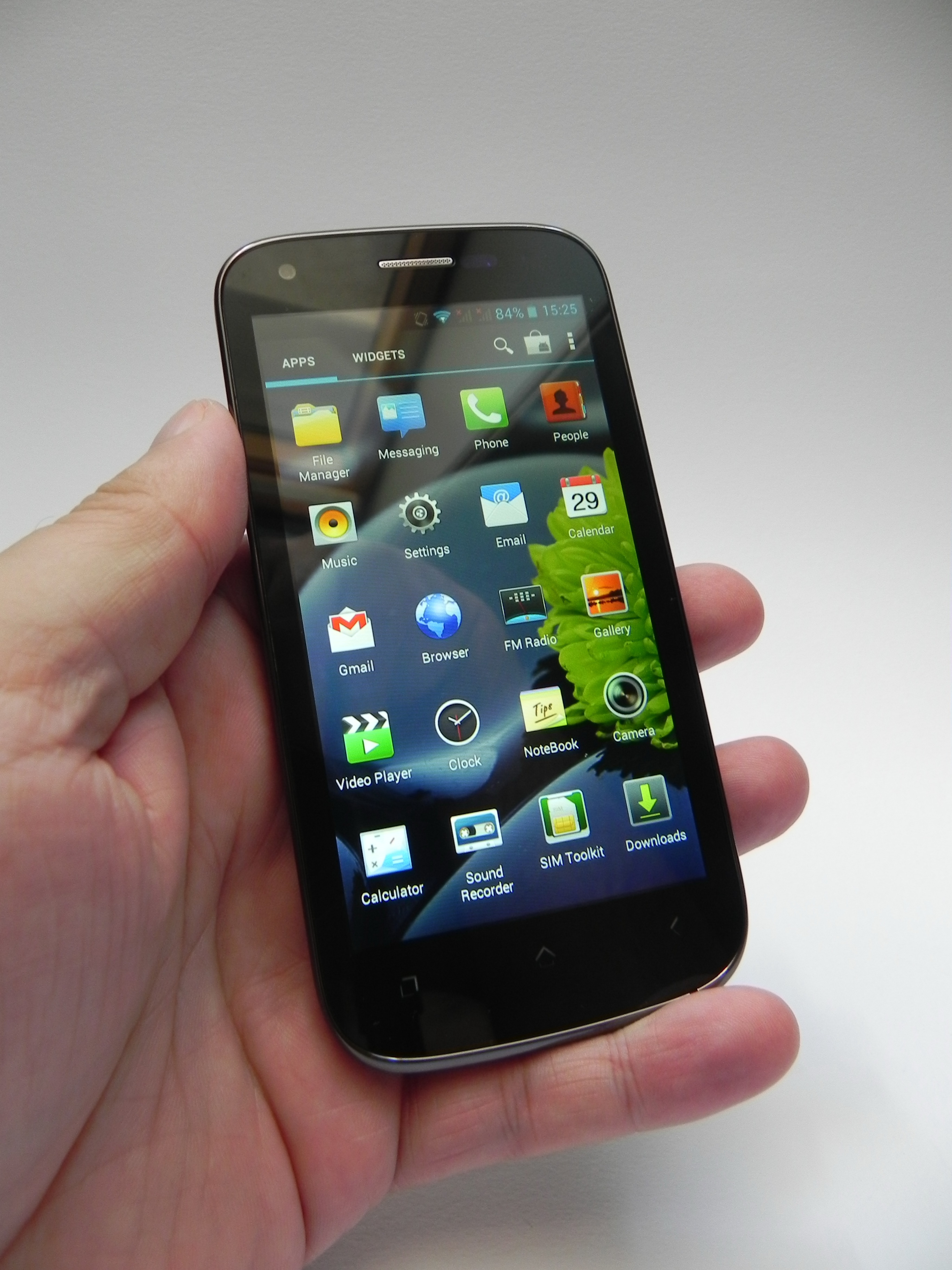 The speaker is easy to muffle by mistake and the audio is good overall, but it’s less impressive than the one of local rivals Allview. We’ve also got FM radio available here and moving further to the video side of things, the screen here is a 4.5 inch IPS with a resolution of 960 x 540 pixels and it outputs vivid colors and 307 lux of brightness, so it’s pretty bright.