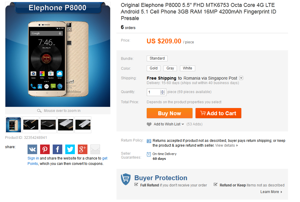 The product is up for preorder now, priced at $209 on Aliexpress.com. It comes in gold, gray or white, has very narrow bezels and a Home button that feels like the one of the Meizu devices. Free shipping is offered to some European nations, so you can rejoice about that. The device brings a 5.5 inch full HD display, an octa core MediaTek MT6753 processor and 4G LTE connectivity.