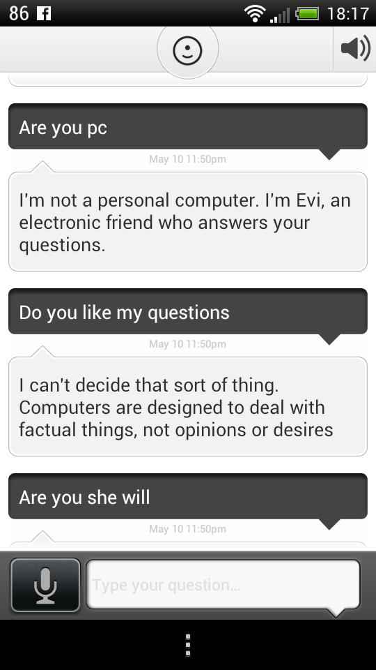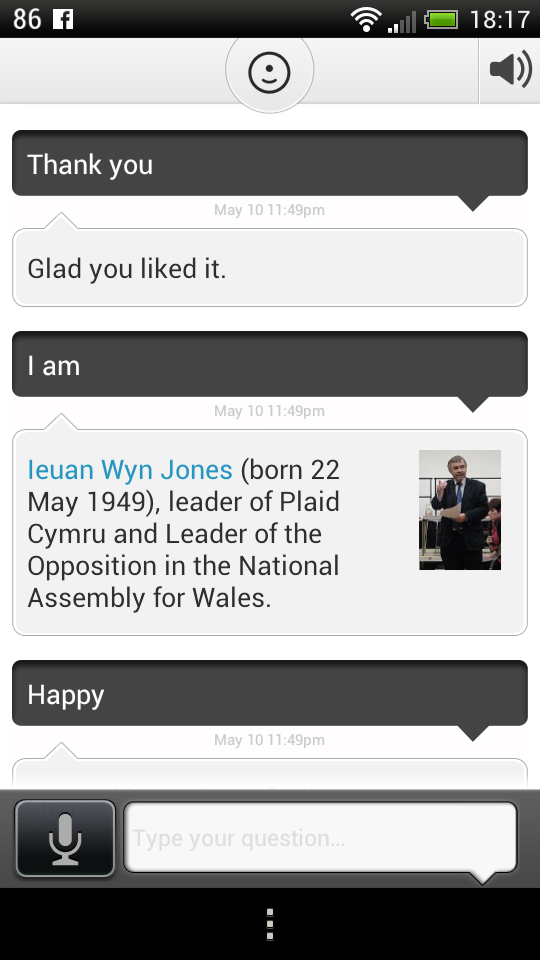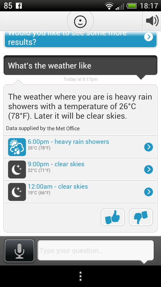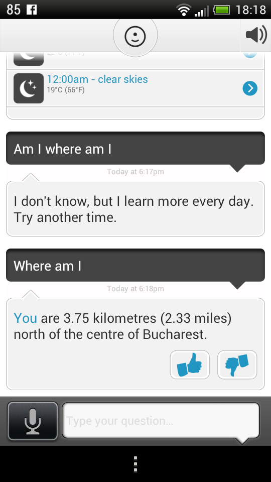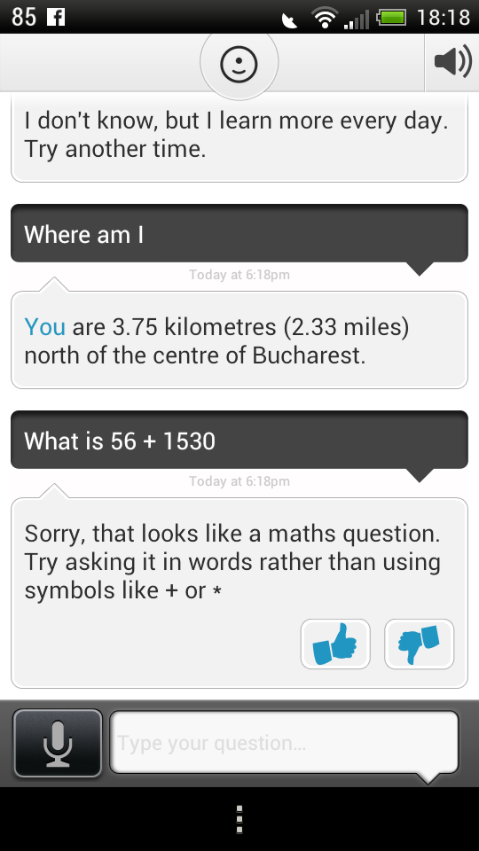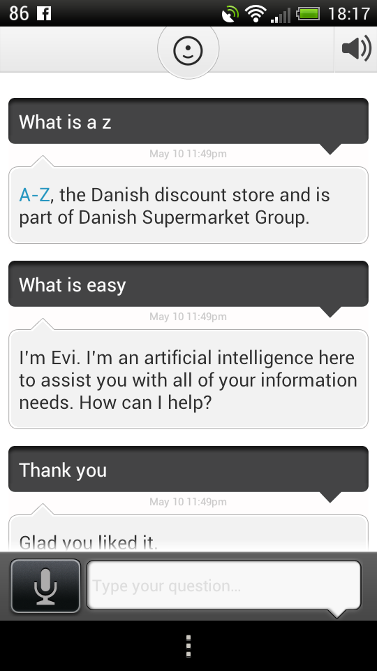 It supports voice and text input and it understands plain English, although occasionally it fails to deliver the desired results. It has local information for UK and USA, stuff like shopping, news, dining and more. There’s also a built in browser, that includes a web links within the Evi app. The nice thing is that there’s a learning system here, with Evi learning from your world and from its own answers.