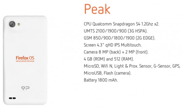 Mozilla has just revealed its first two developer phones for Firefox OS, Keon and Peak, pictured below. We’re dealing here with a handset from the midrange area and a lower end unit, affectionately called “Geeksphones”. Keon is the first Firefox OS developer phone and it comes with a 1 GHz Snapdragon S1 processor, 3.5 inch HVGA touchscreen and a 3 megapixel camera.