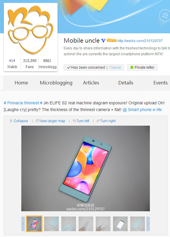 After a few moments ago we had the opportunity to take a look on several pictures with the Gionee Elife S5.1, a device that measures just 5.1 mm in thickness, now through the Mobile Uncle user from the Weibo Chinese social platform we have the chance to admire a couple of hands-on photos with the world’s new slimmest phone.