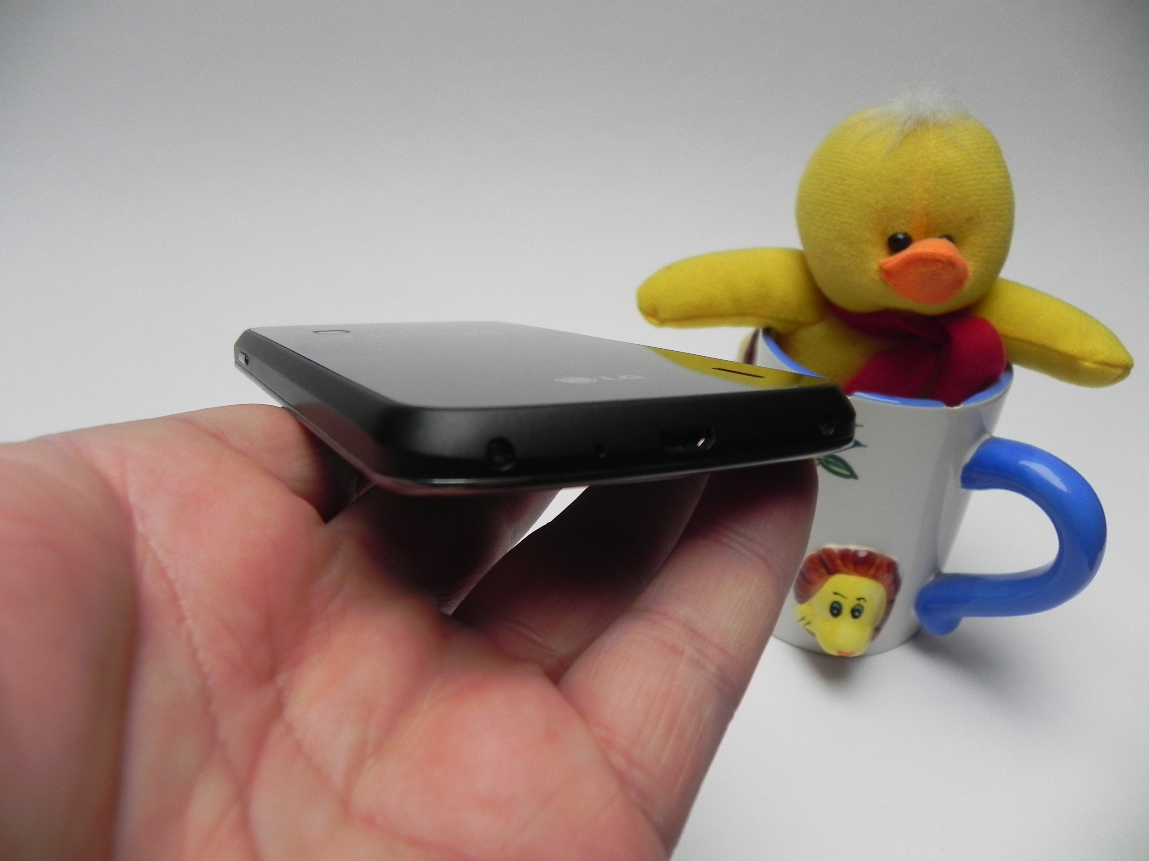 There’s very little space between the screen per se and the glass, thanks to a revolutionary LG technology, that increases image clarity. The glass back is a fingerprint magnet and it really highlights the overheating of the device, sadly. The cute thing about this design is that front notification light, that gently glows below the display, where a Home button would usually be. There’s no microSD card slot or removable battery on the device, or any trace of 4G LTE, just so you know.