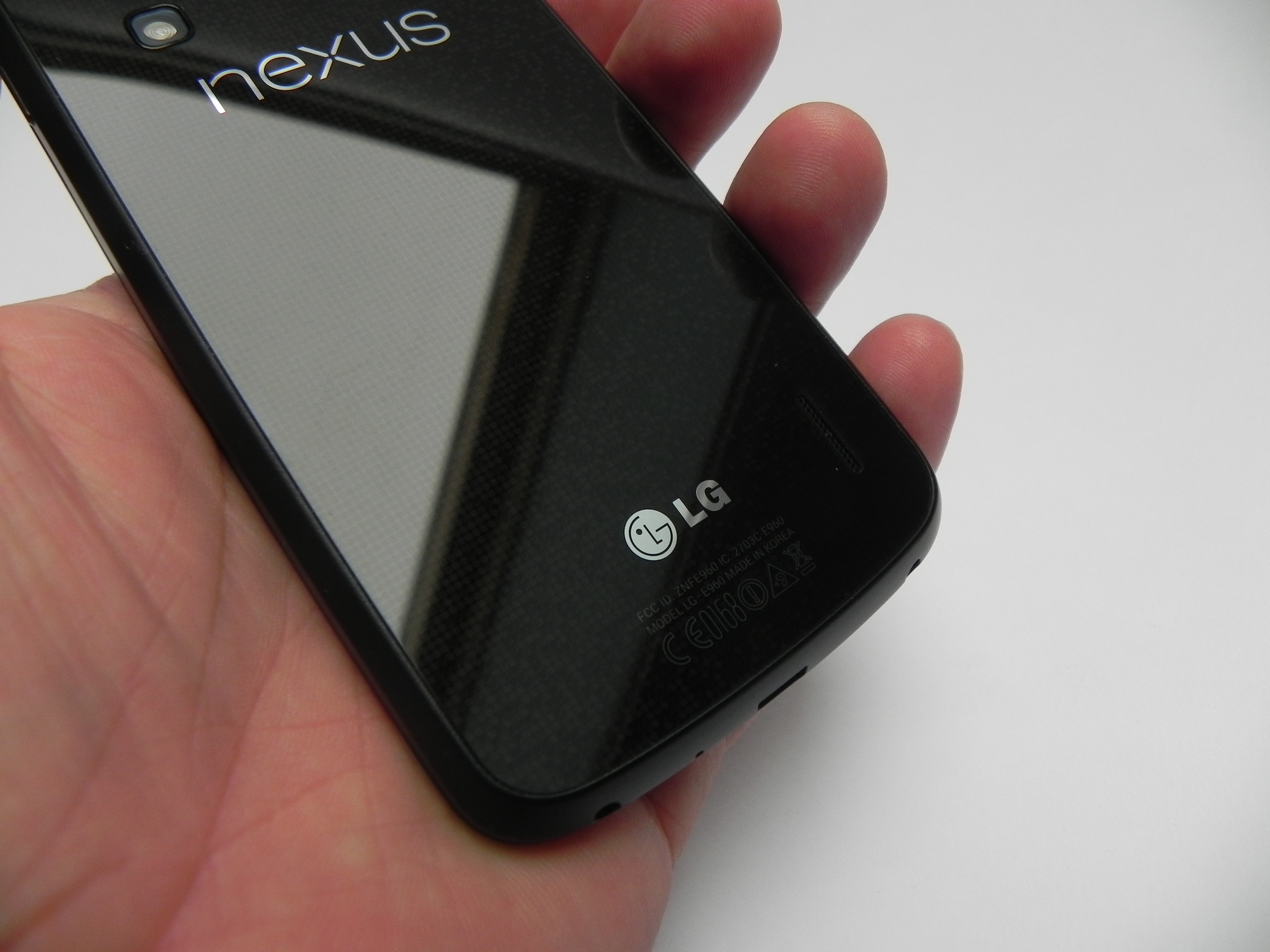 This is the first Nexus handset made by LG and it’s strongly related to the LG Optimus G, with which it shares quite a bunch of specs. It measures 9.1 mm in thickness, weighs 139 grams and it’s bulkier and heavier than I expected. The front side of the handset is all glass, as is the back, creating a premium, elegant look, but also a sense of frailty. The device has Corning Gorilla Glass 2 protection upfront and a chrome frame all around the device.