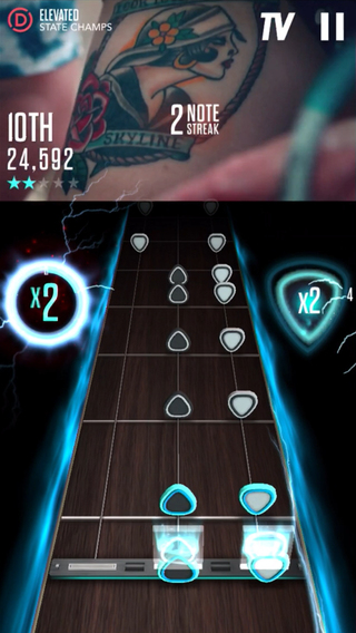 There’s single player and multiplayer modes and the GHTV mode brings channels with over 200 extra songs, randomly changed every hour or so. Guitar Hero live works on devices from the iPad Mini and iPhone 5 onwards and it displays a guitar griff with 4 lines on it, that have scrolling notes on them. You have to either tap the buttons of your joystick or the virtual buttons at the bottom of the screen to get the notes.