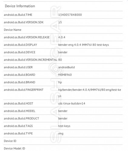 Now we can make sense of why HP was so cold when it came to Windows RT and rejected being a Microsoft partner on that. They may have been waiting out on Google and Android, as shown by an amazing recent leak, showing a HP Android smartphone called Bender in a benchmark. GLBenchmark test results show the handset hp bender with android 4.0 ICS on board.