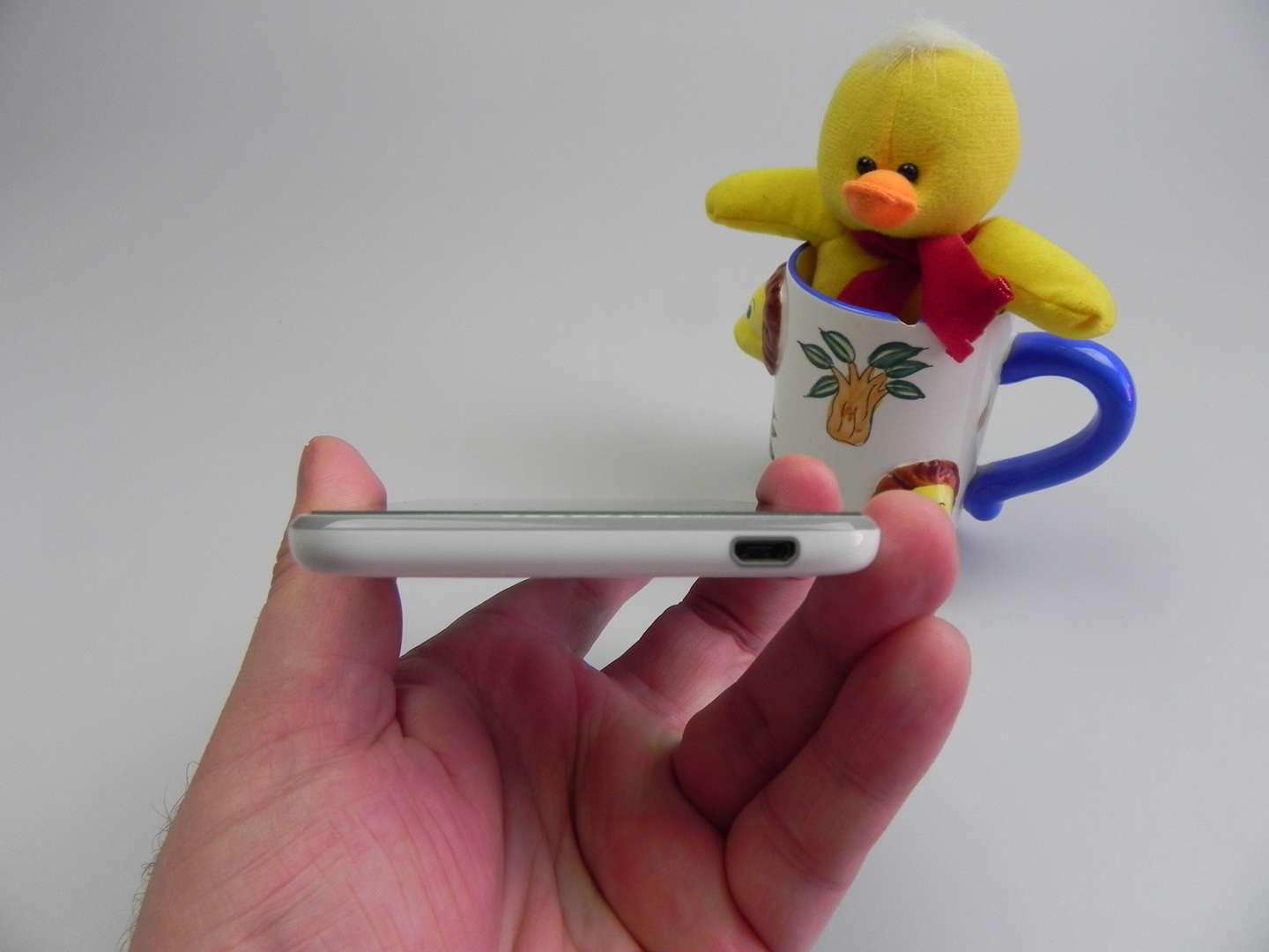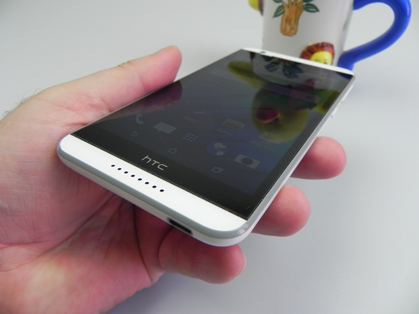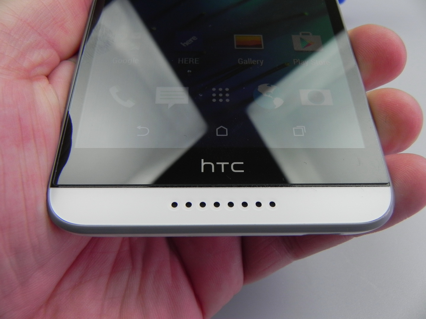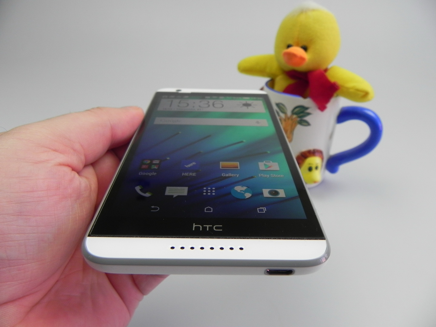 The front side hosts the camera and BoomSound speakers, as well as the sensors, while the notification LED is placed below the front camera. At the back there’s the main camera and flash, with the cam protruding a bit and being very easy coverable with the hand while taking pictures. At the top we find the audio jack and microphone, while at the bottom there’s the microUSB port.