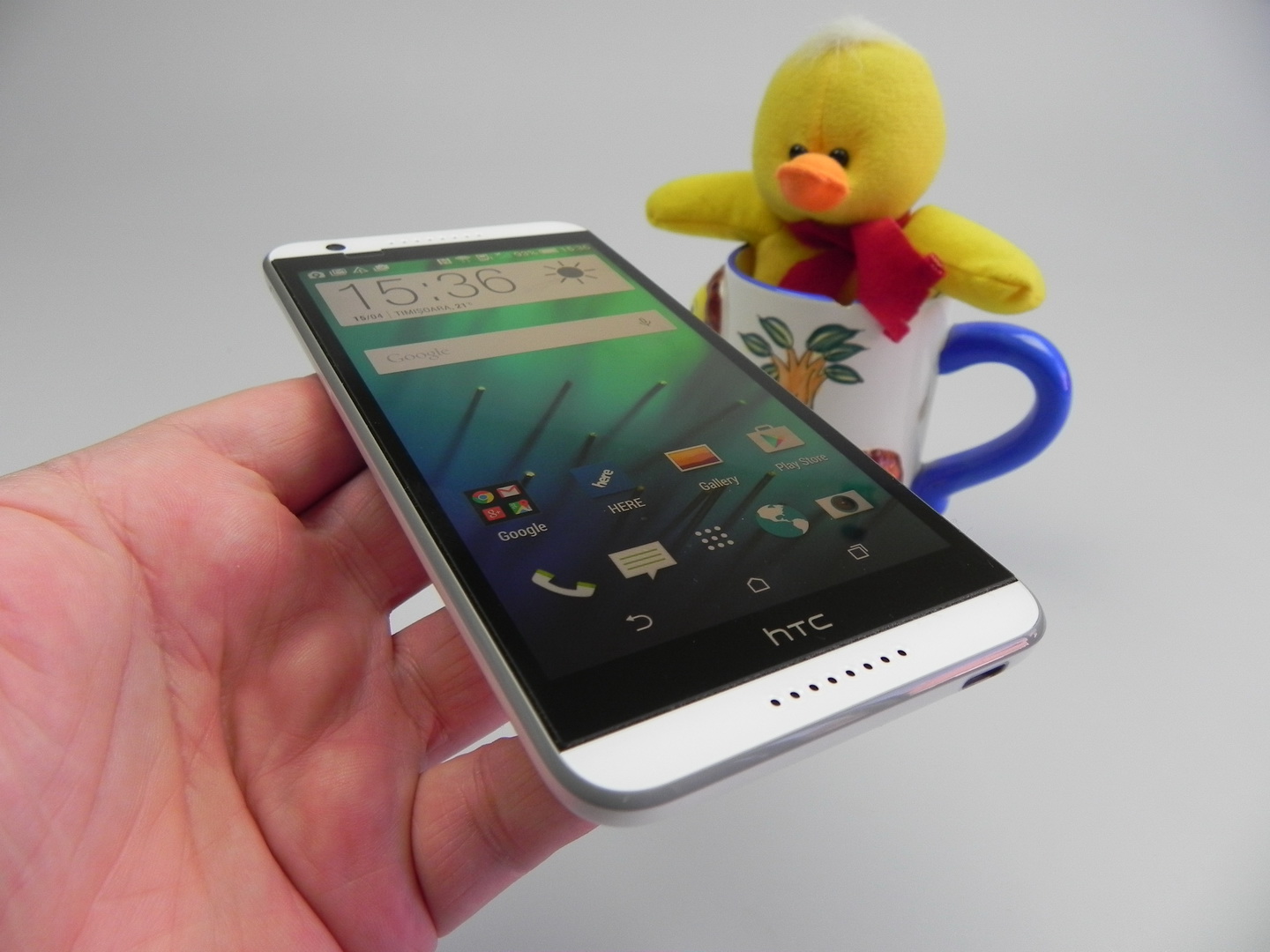 The weight is 155 grams, which is 10 grams lighter than the predecessor. We also get rounded corners and edges, big bezels and this device is a bit of a fingerprint magnet. Its frame feels solid and the Desire 820 is quite light, considering its width and even diagonal. Since it’s light and made of glossy plastic, it does tend to feel a bit like a toy and not a serious smartphone made of metal.