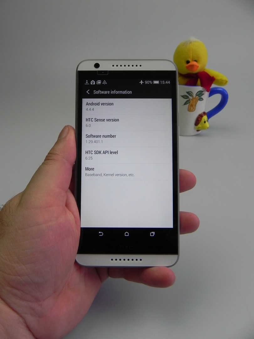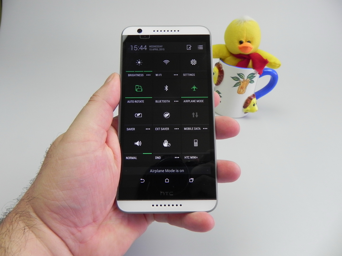 At the front we find an 8 MP selfie cam and connectivity options are the following: 4G LTE, WiFi dual band, WiFi Direct, DLNA, Bluetooth 4.0, GPS, Glonass, NFC, FM radio and microUSB 2.0. Desire 820 also offers an accelerometer, proximity sensor, ambient light sensor, stereo speakers and compass. Its battery is a Li-Po 2600 mAh unit, that on paper provides 424 hours of standby functioning, or 22 hours of talk time. In our test, that involves HD video playback with WiFi on and brightness at 50% we achieved a playback time of 7 hours and 13 minutes.