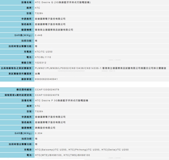 The Desire U was announced in Taiwan in January and now we get these two new smartphones approved by Taiwan’s National Communications Commission. The new models are called the HTC Desire P, with the model number being T326H and the Desire Q, dubbed model number T328H. There are no photos of the devices out there and we have no idea of what features they’re going to put on the table.