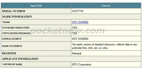 The trademark application for HTC Inspire was recently filed with the USPTO and we must say that HTC has a pretty good record with filed trademarks, as each of them was turned into a real product. This is unlike Samsung, who filed a lot of trademarks, but didn’t use all of them.