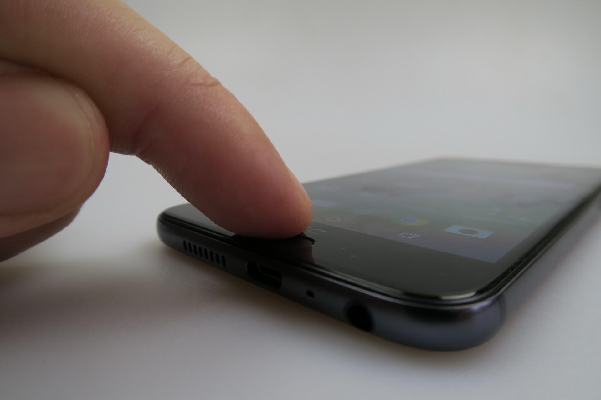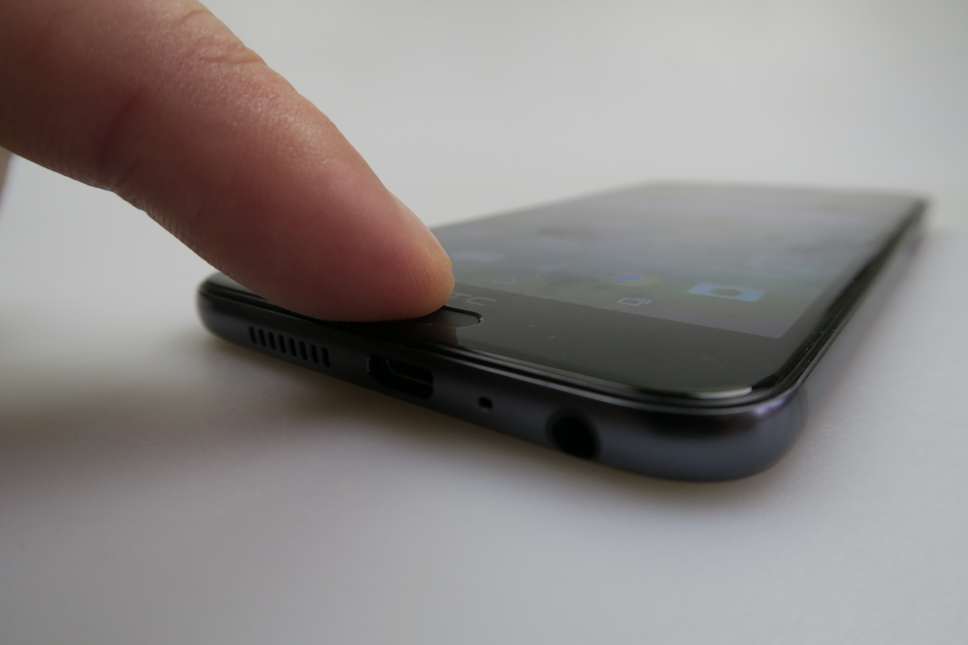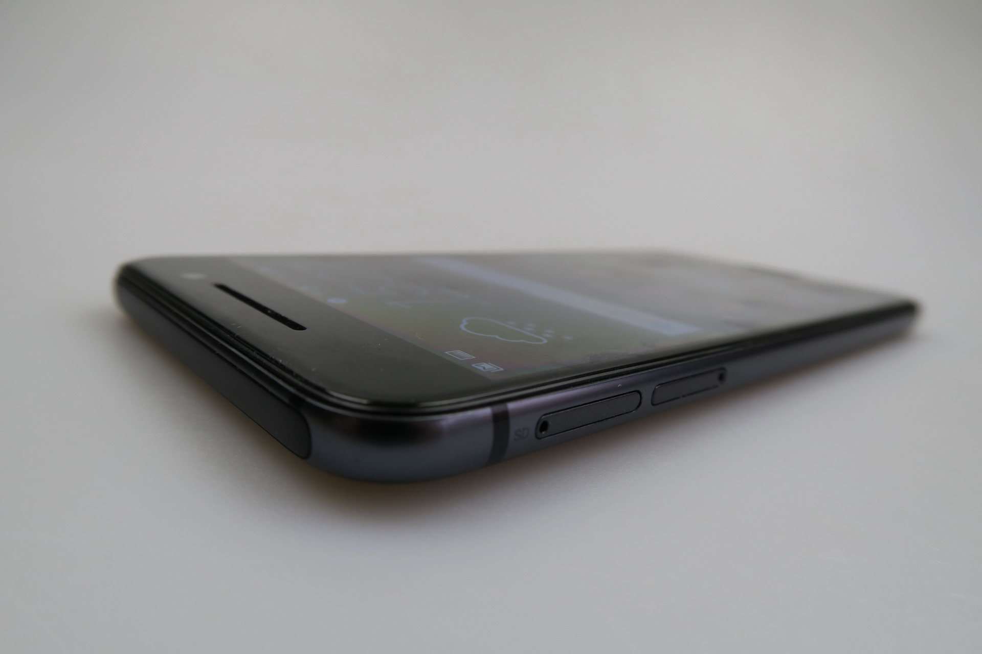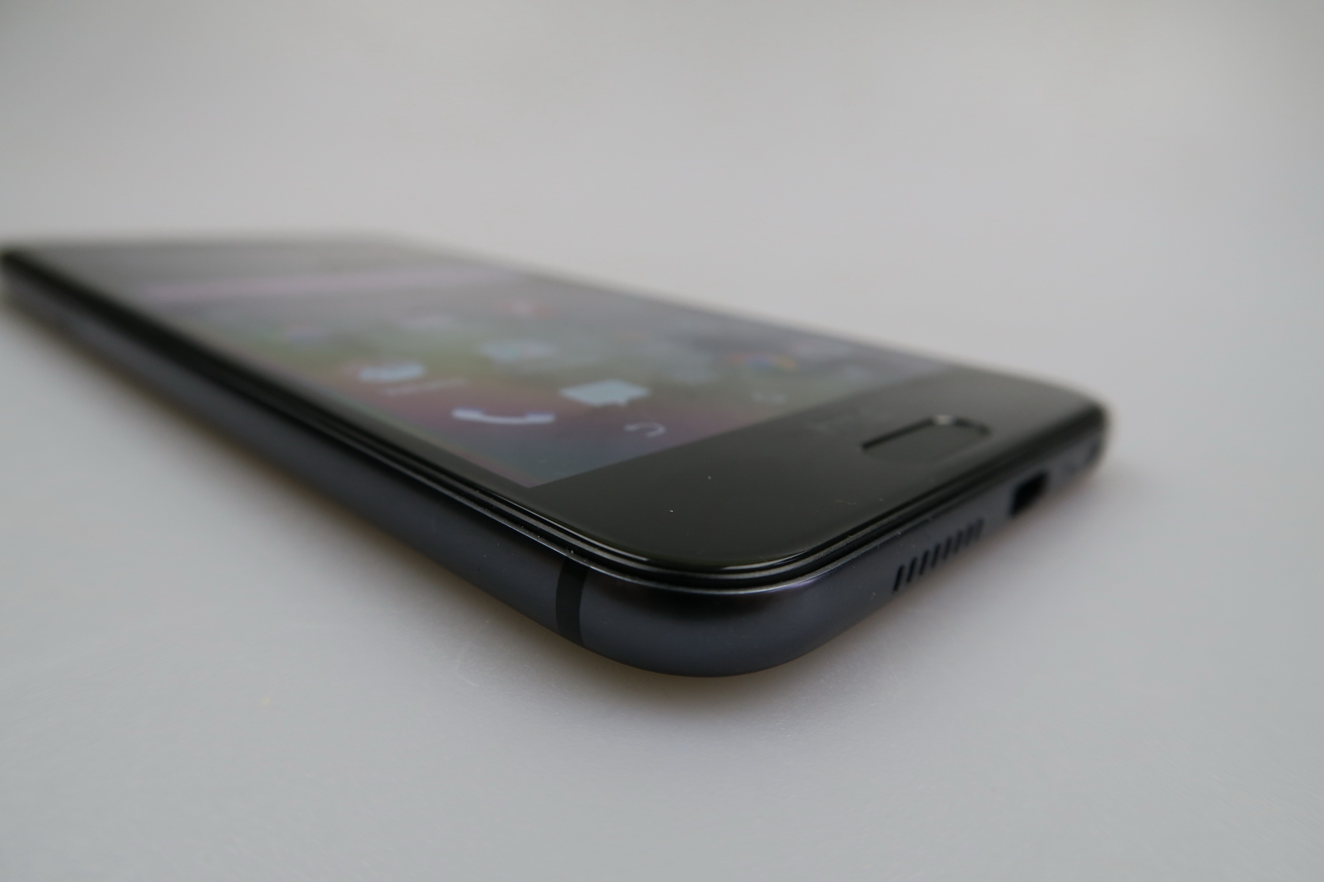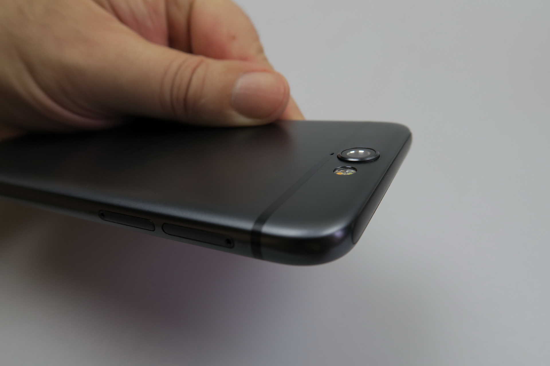To the left there are the slots, microSD and nano SIM, that require a metal key to open the trays, while on the right we can access the volume buttons and the Power button, that has small protrusions to make it easier to detect by feel. HTC One A9 is an elegant and comfy phone, that’s slightly slippery and resembles the iPhone 6, although the legacy of its design comes from HTC still.