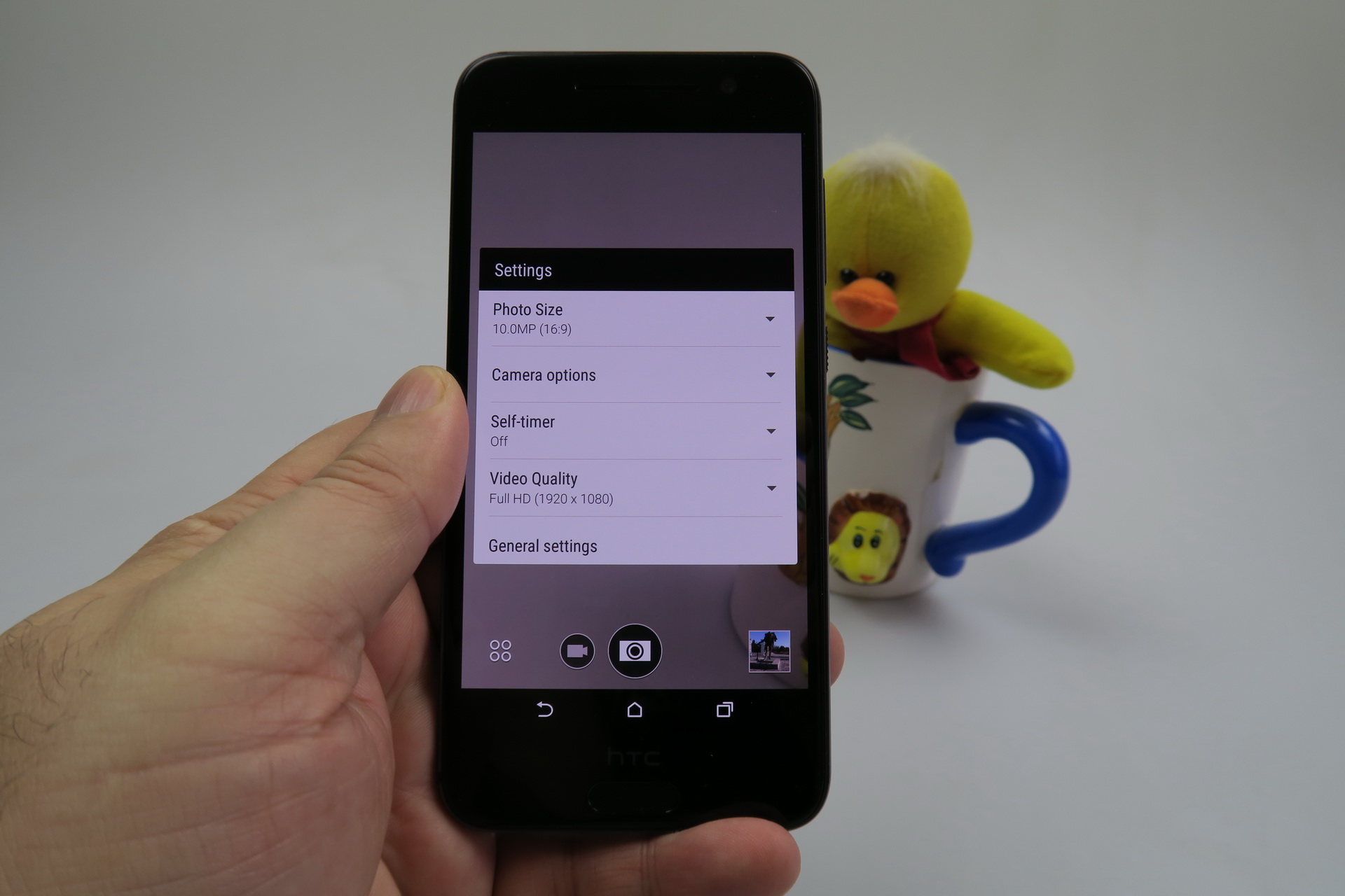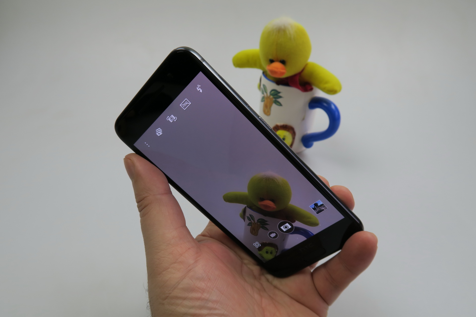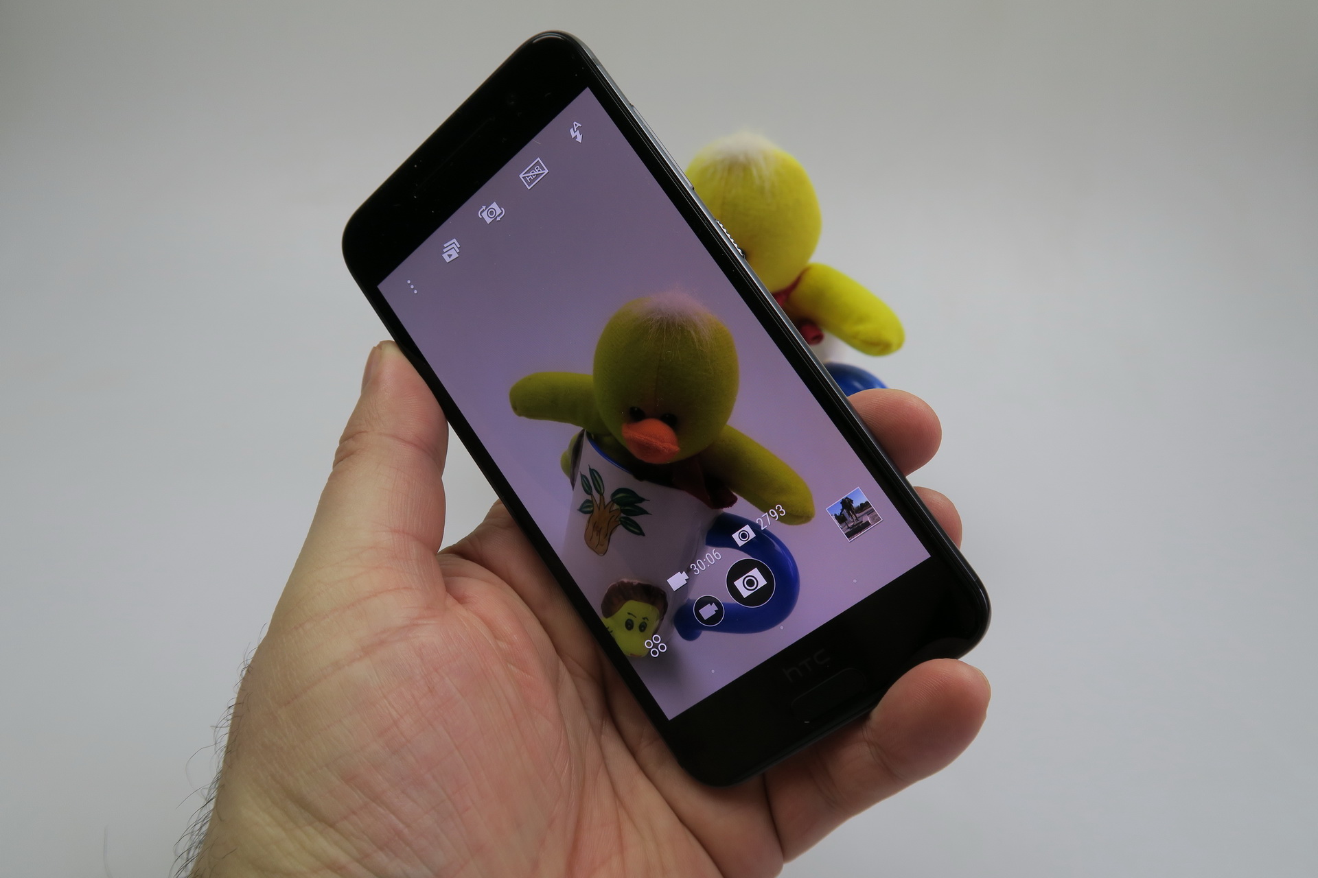 The camera app doesn’t open very fast and there’s no 4K video capture here. The UI is typical for HTC, with white icons, logos and text. On the left side we find the flash, HDR and front camera shortcut, as well as a multi frame capture option. Settings include resolution (13 MP in 4:3, 10 MP in 16:9 and 8.9 MP in 1:1). Then there’s Auto Smile Capture, Voice Capture, Touch to Capture and Self Timer.
