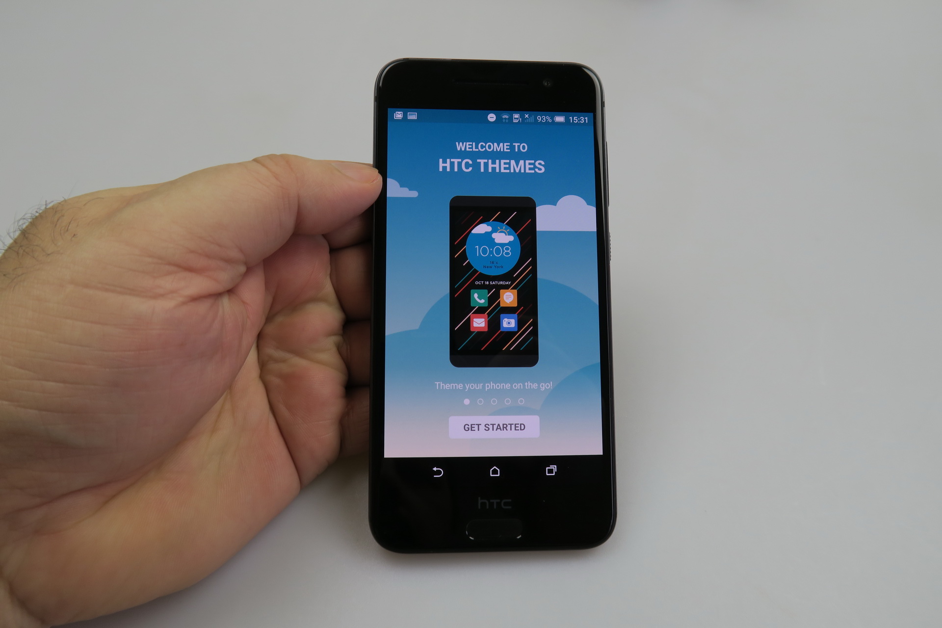 The app drawer is not the stock one, so there’s no Google search bar at the top, but rather a standard search icon. Multitasking is now available as a carousel, not the series of thumbnails that HTC usually had. The dropdown area is basically the same as we left it on Lollipop and includes notifications, Google Now cards, Quick Settings and brightness slider.